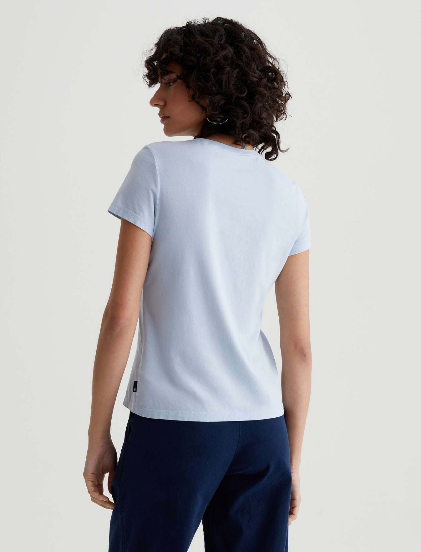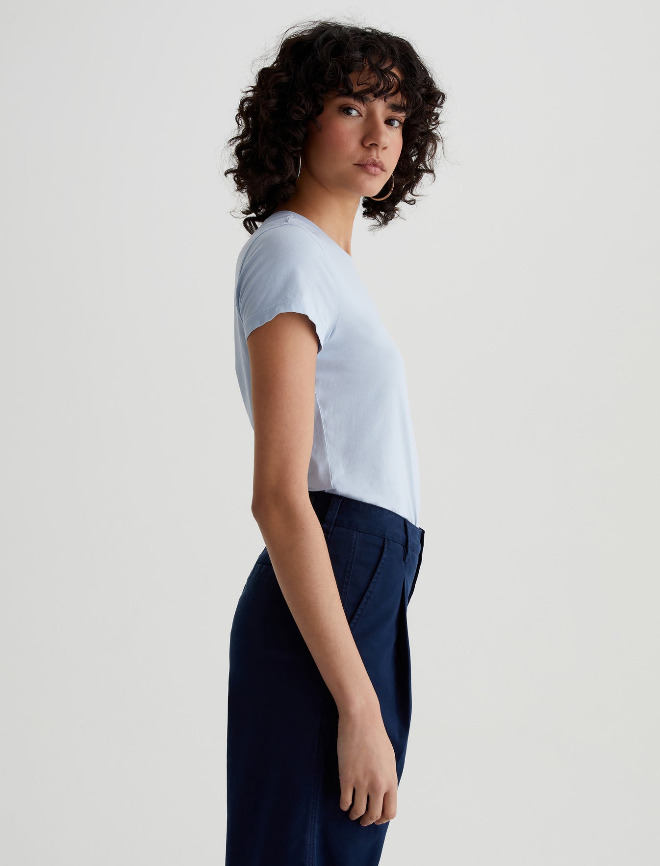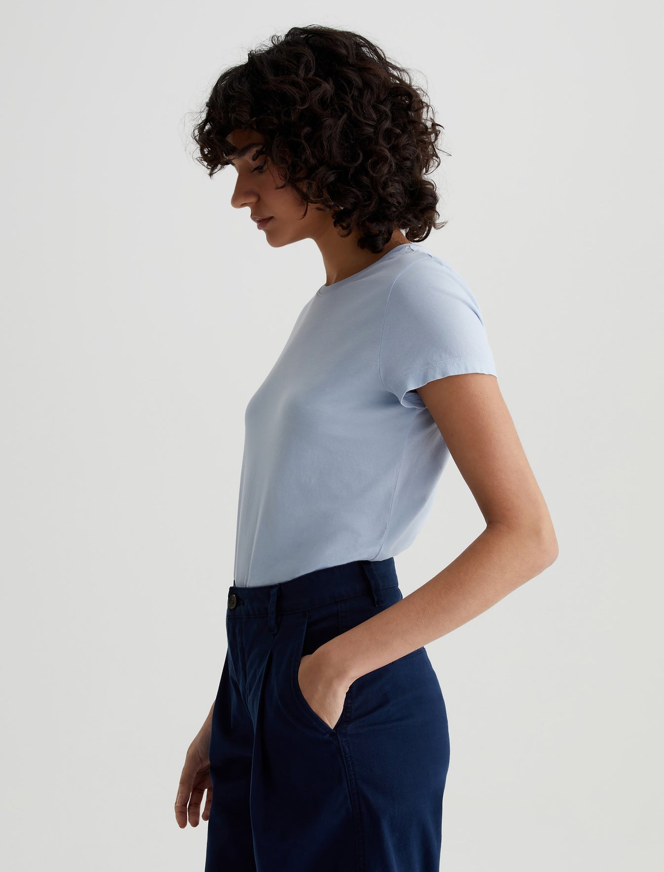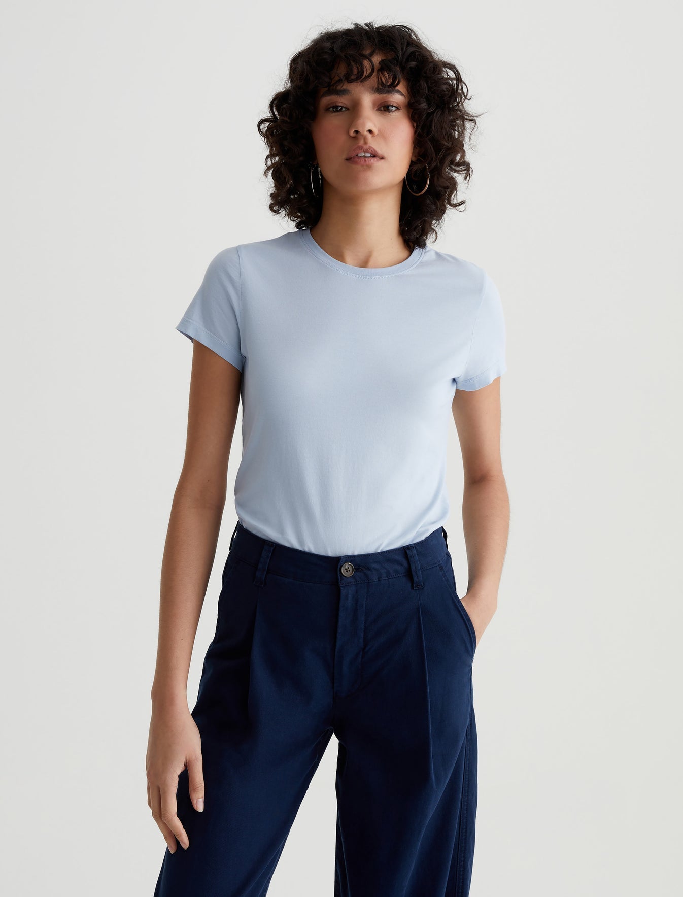 The perfect little tee to pair with everything. Our Ena classic crewneck T-shirt has a slim, straight fit that skims the body and looks just right tucked into your favorite jeans. Made from lightweight stretch jersey in pale blue, this short-sleeve style is an absolute essential.