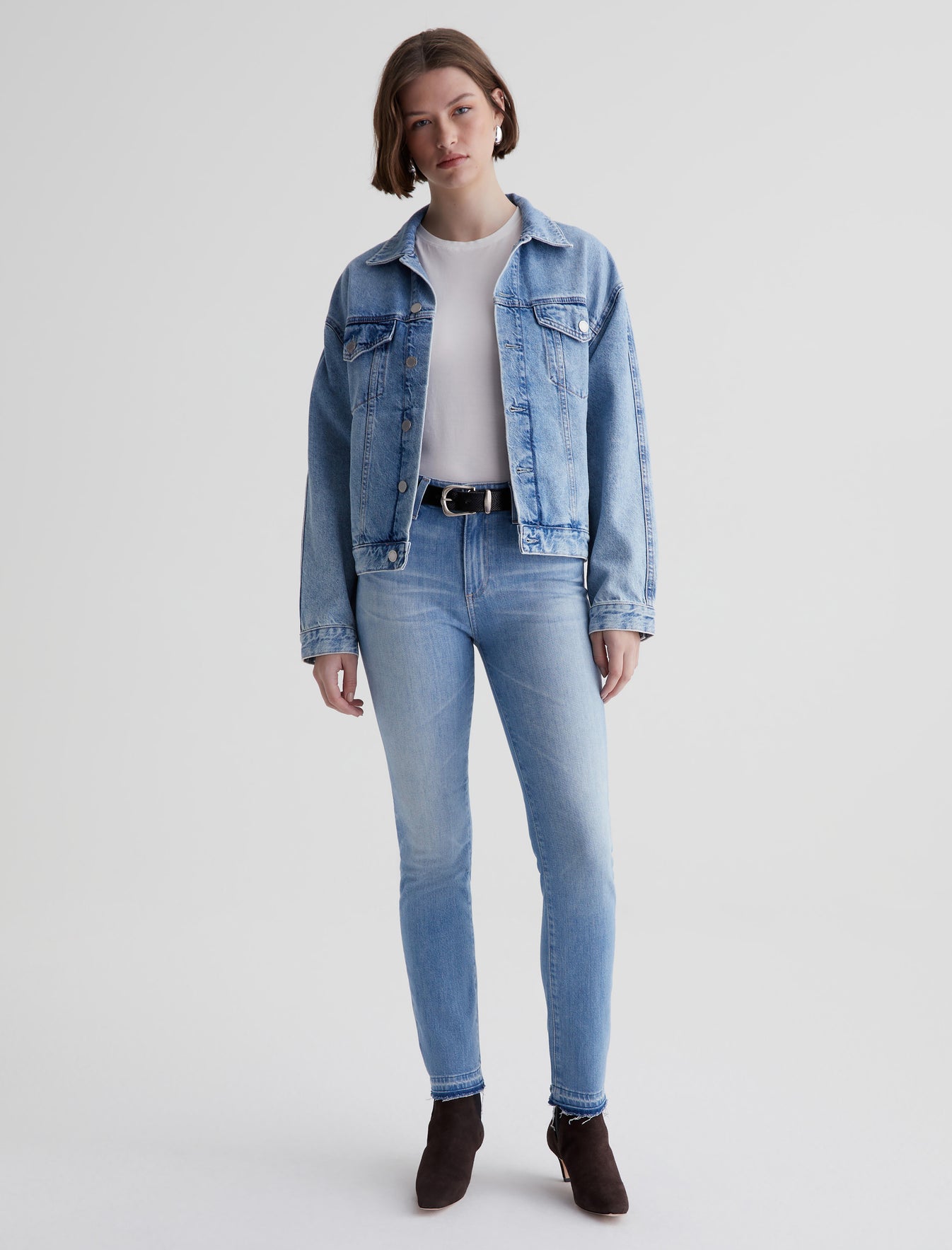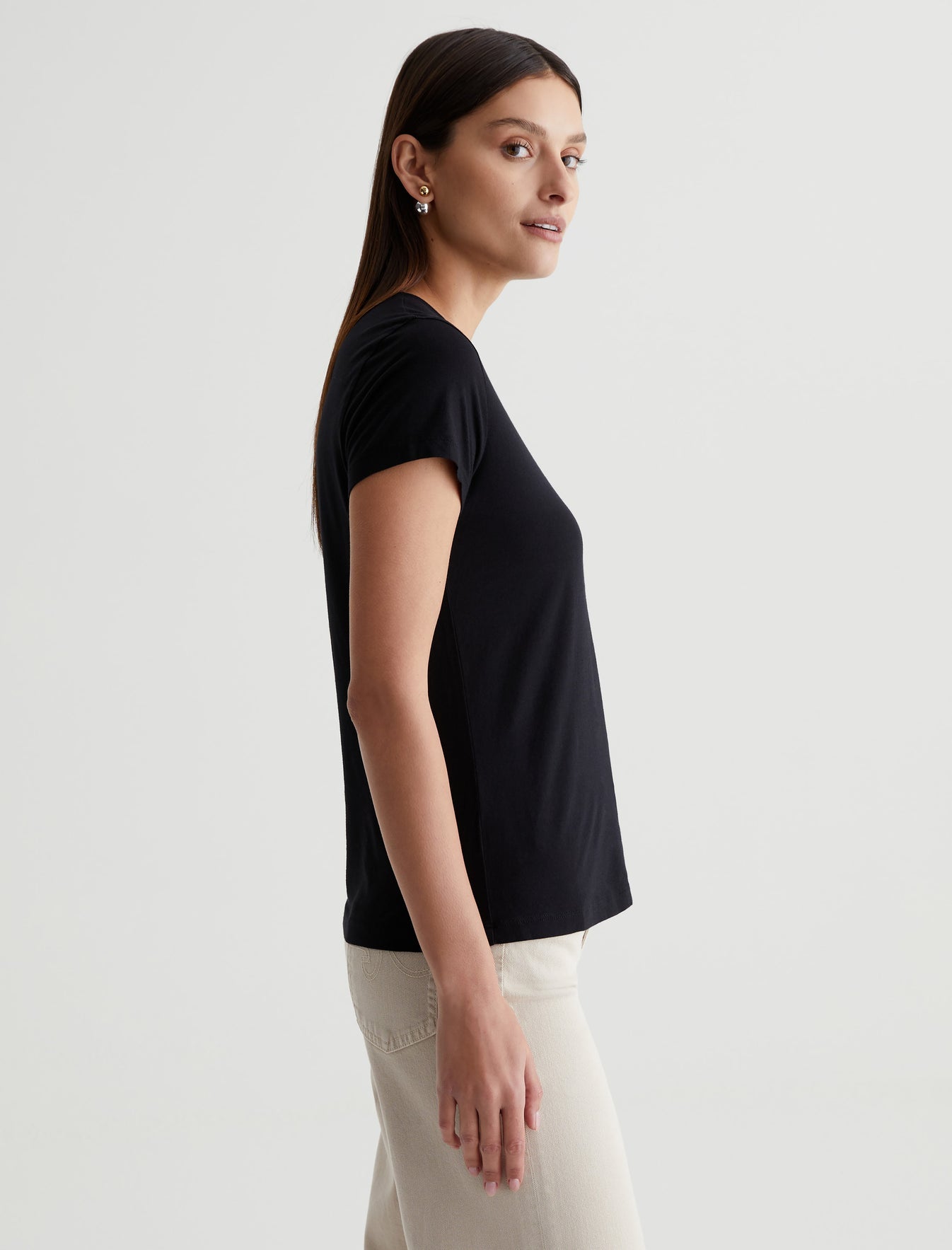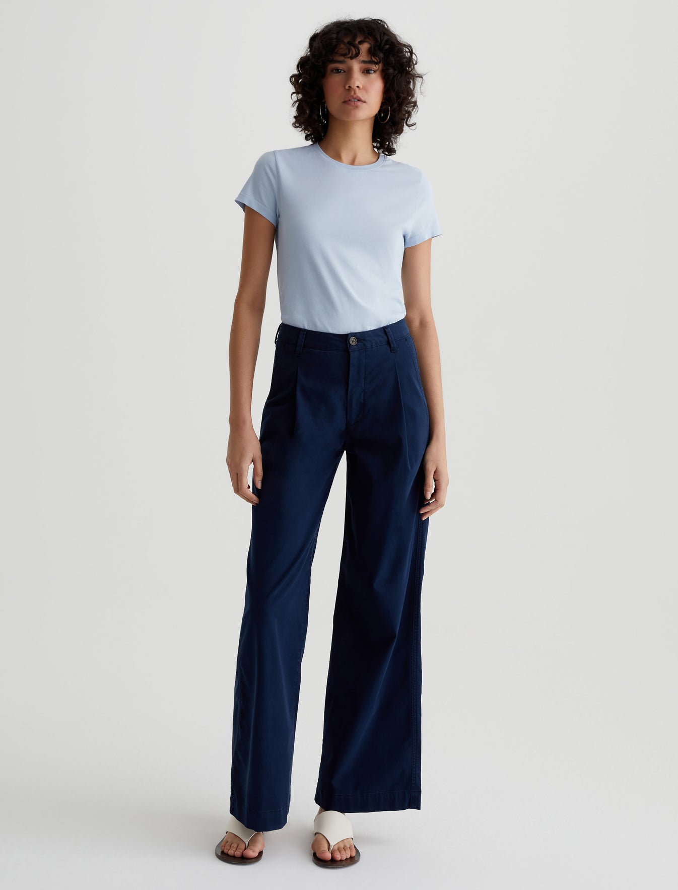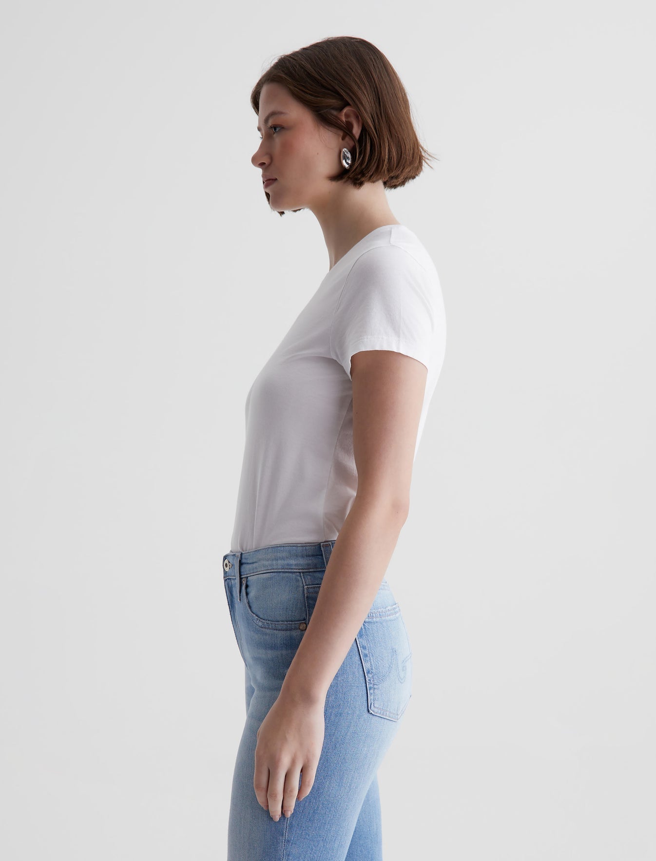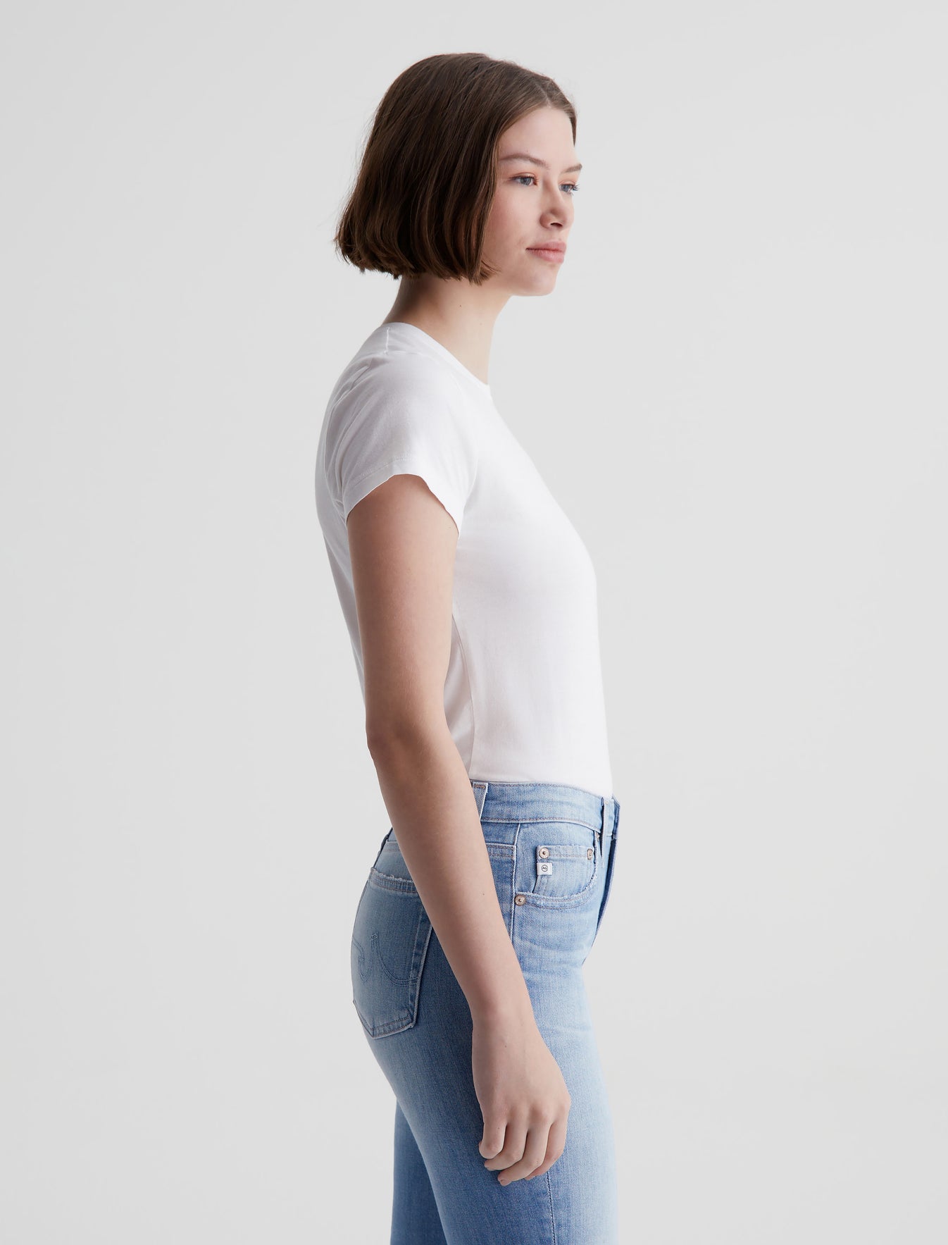 The perfect little tee to pair with everything. Our Ena classic crewneck T-shirt has a slim, straight fit that skims the body and looks just right tucked into your favorite jeans. Made from lightweight stretch jersey in pale blue, this short-sleeve style is an absolute essential.