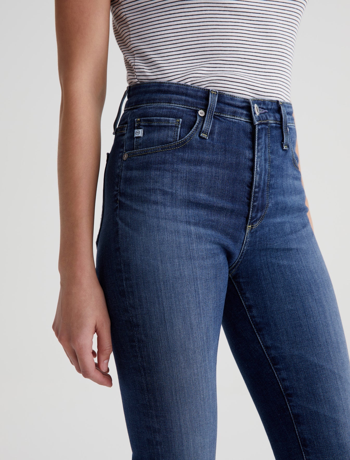 The Farrah Boot is a high-rise bootcut jean with a skinny fit through the legs before opening into subtly flared hems. Crafted from 9.5 oz. Premiere Stretch Indigo Denim, these five-pocket jeans have a dark blue wash with fading and whiskering for an authentic broken-in look.