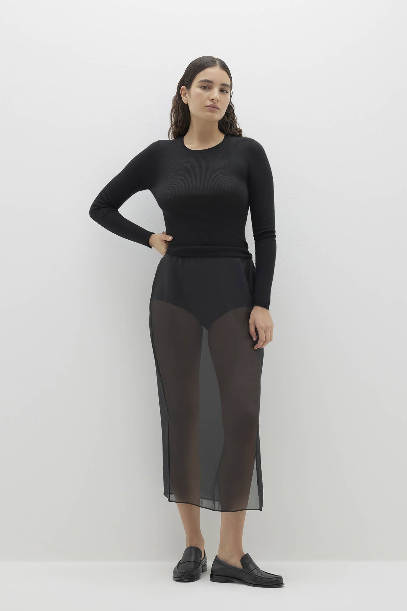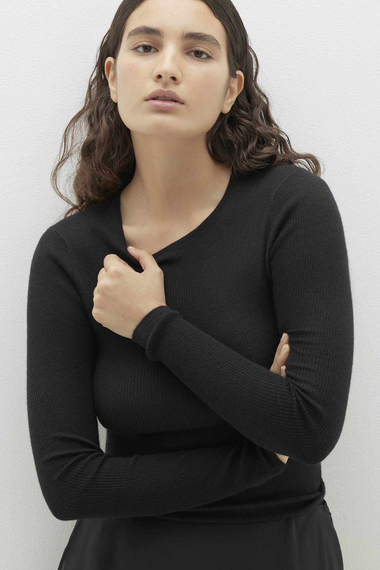 This fitted cashmere crewneck top combines luxurious comfort with a timeless silhouette. The fine rib detail throughout, long sleeves and classic crewneck design make it a versatile piece for any wardrobe.
