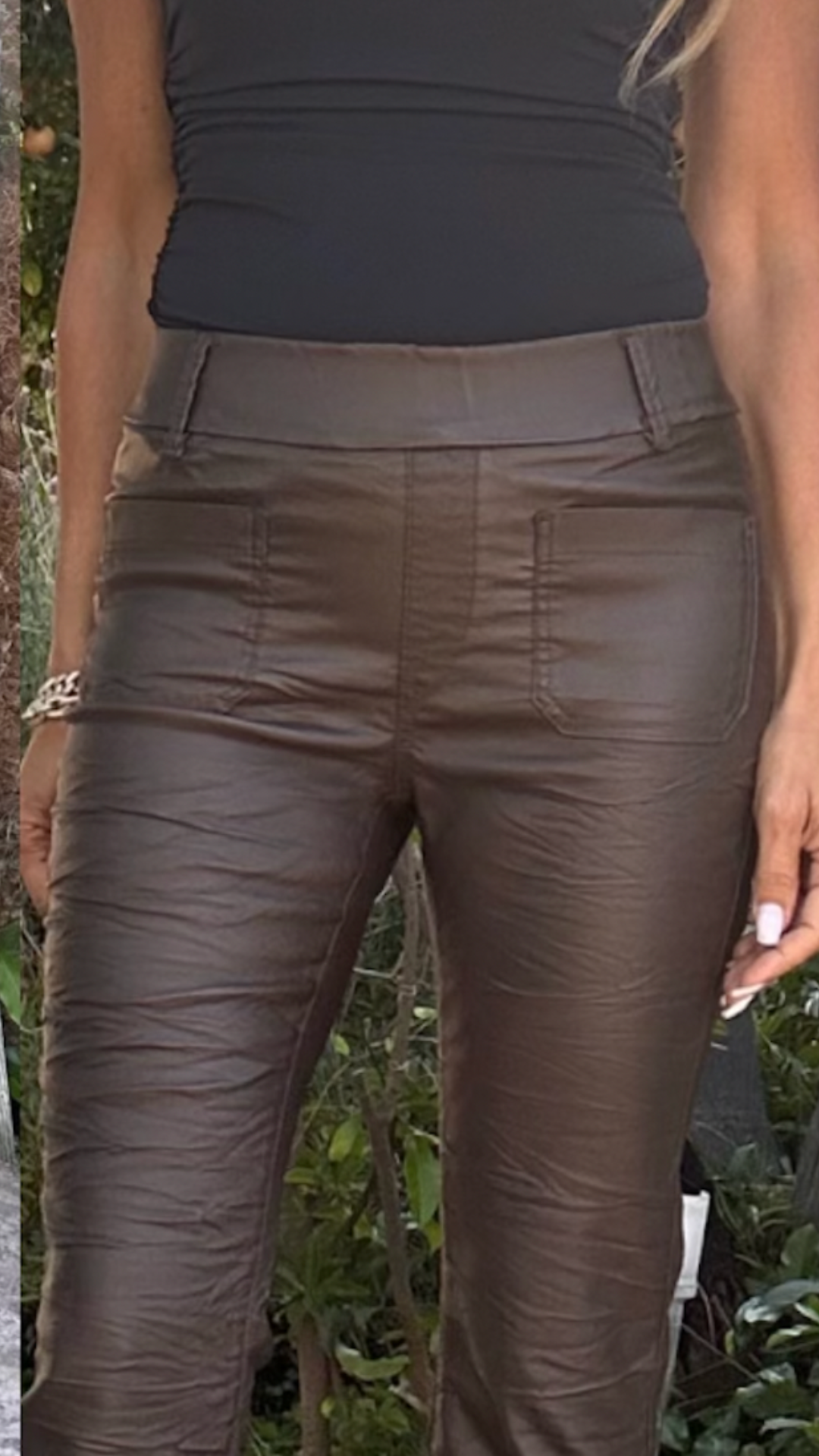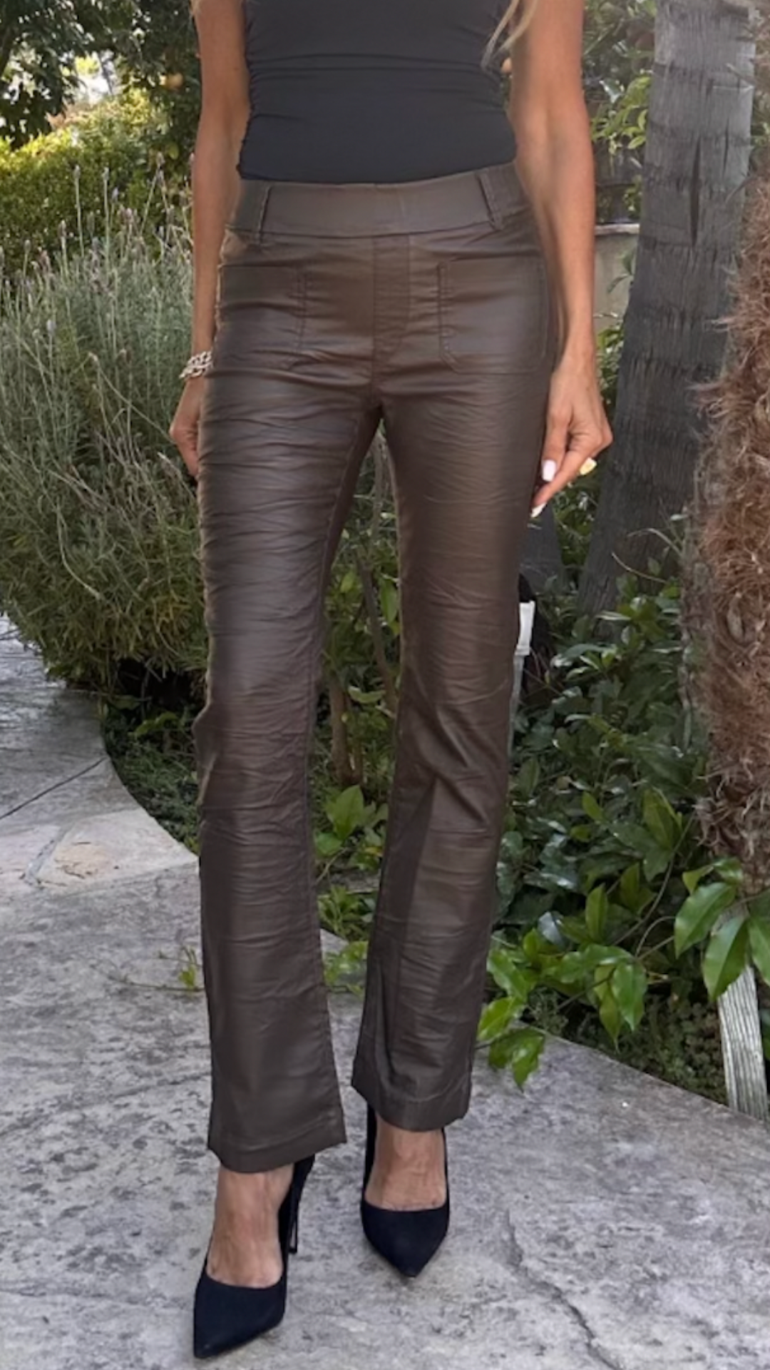 This Bevy Flog has the look of a soft pant and the feel of a legging. This fabulous vegan leather pant can take you from day to night with effortless style.