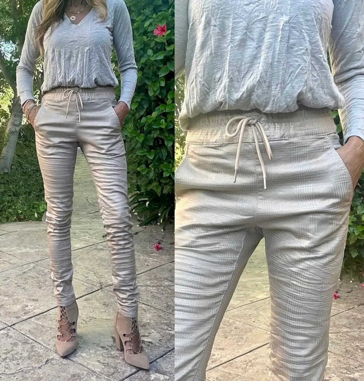 These Bevy Flog leggings have the look of a soft pant and the feel of a legging. These comfy pants can take you from day to night with effortless style. Wear them higher on the hip for a more fitted look or keep them scrunched low for a jogger feel.
