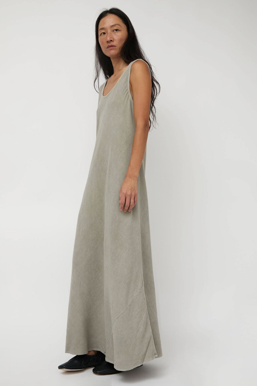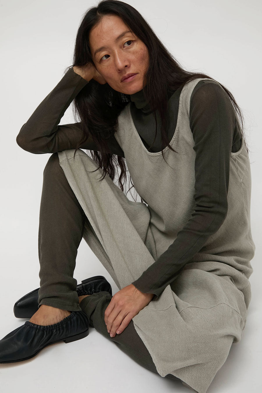 Mid length dress cut in an easy to wear cotton blend. Tunic style sleeve, wide neckline, and gathered, partially elasticated waistband. Modern dressing with ancient flavor.