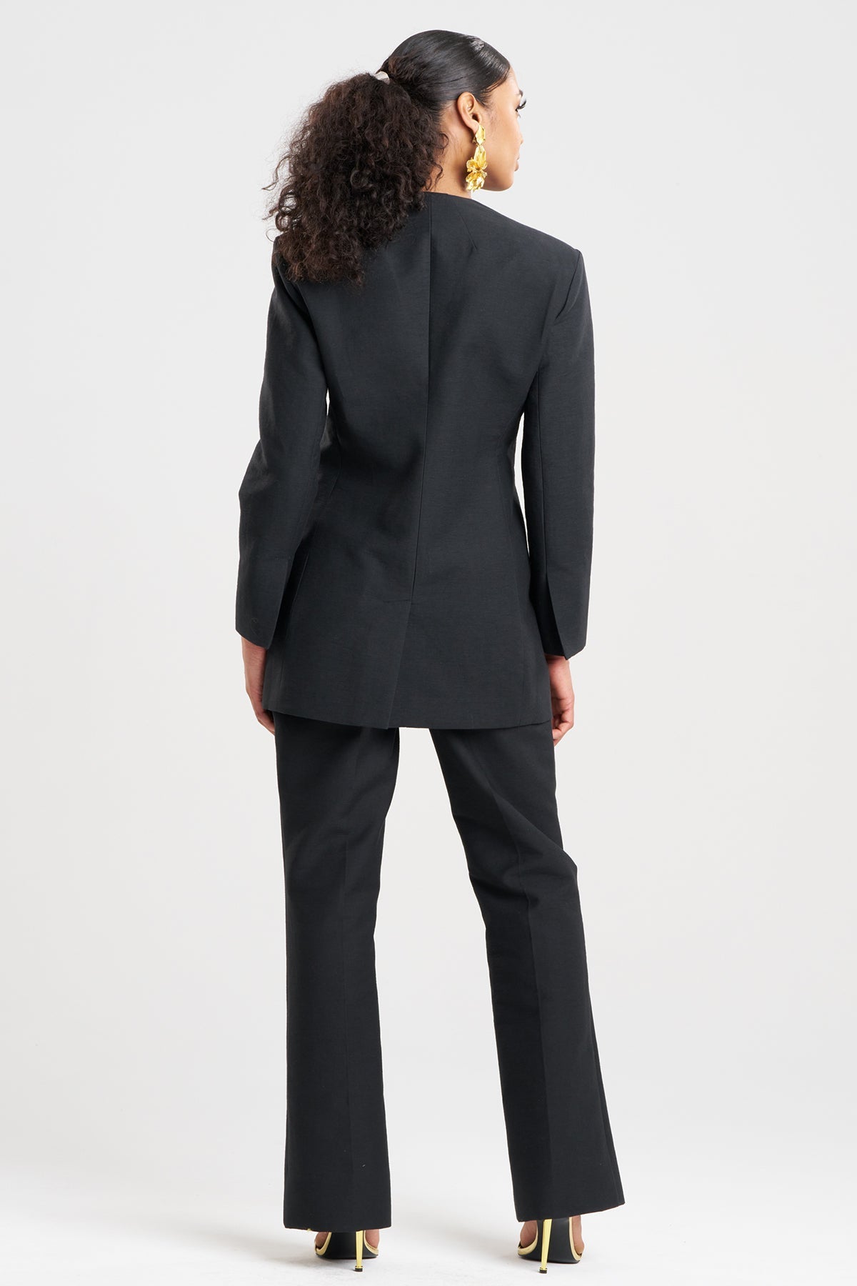Italian textured fabric crafted for structured, feminine silhouettes.Length: 31" V-neckline Hidden button closure Side entry pockets Crisp and structured fabric that holds shape Embroidery time: 90 minutes 94% cotton 6% nylon Dry clean only Made at our own factories in the Philippines