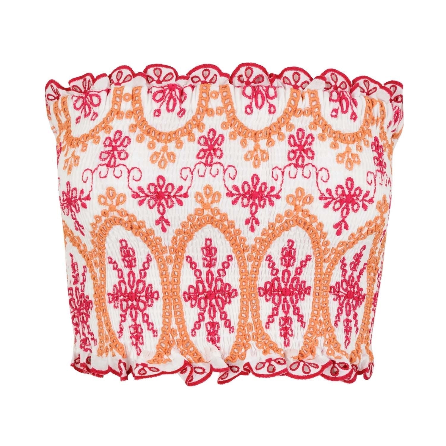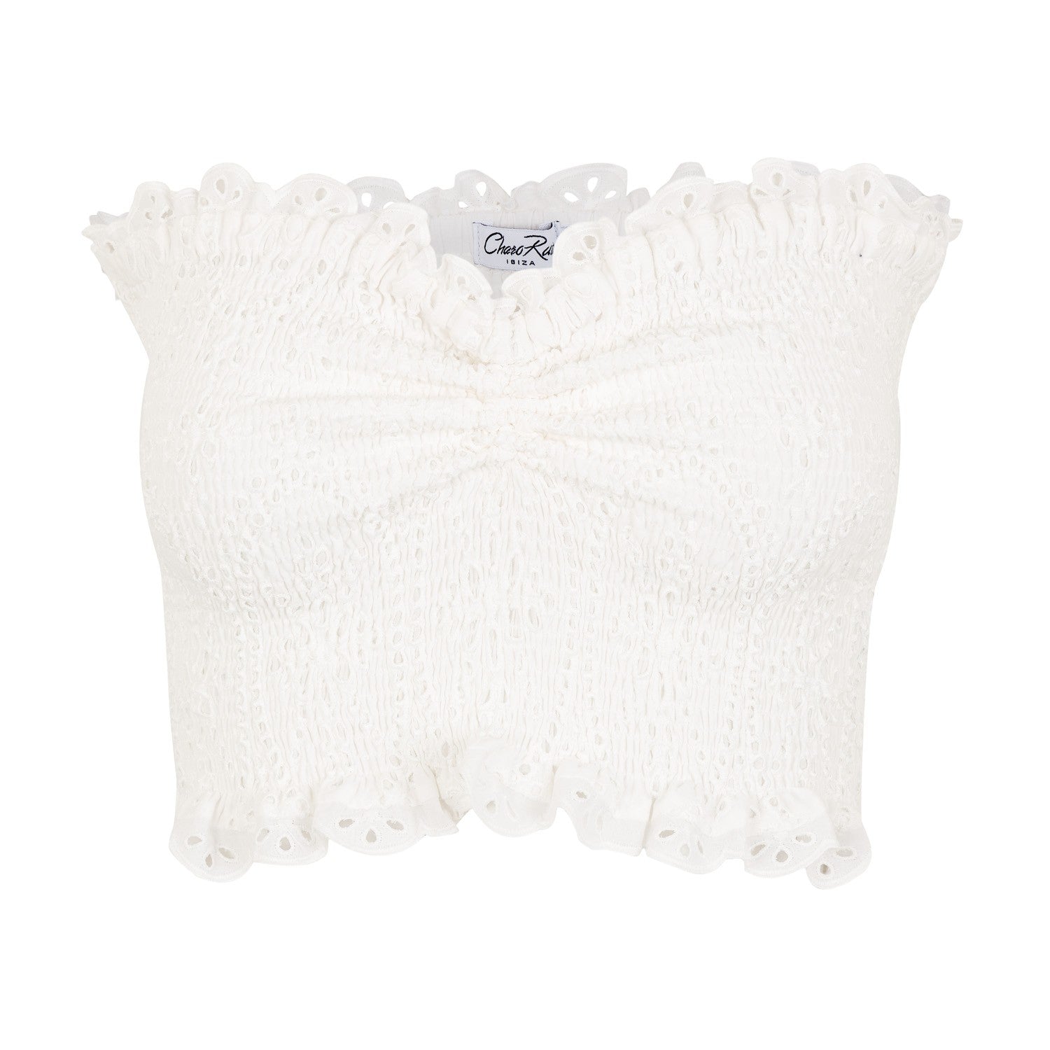 Our Areth bandeau made of 100% embroidered cotton batiste, fits all silhouettes perfectly without the need for zips. An easy-to-wear piece thanks to its elasticated body. Areth will quickly become the key piece in your wardrobe this summer that can be combined infinitely. Pair with a structured blazer and long trousers for a cooler look or with a floaty skirt for a girly vibe.