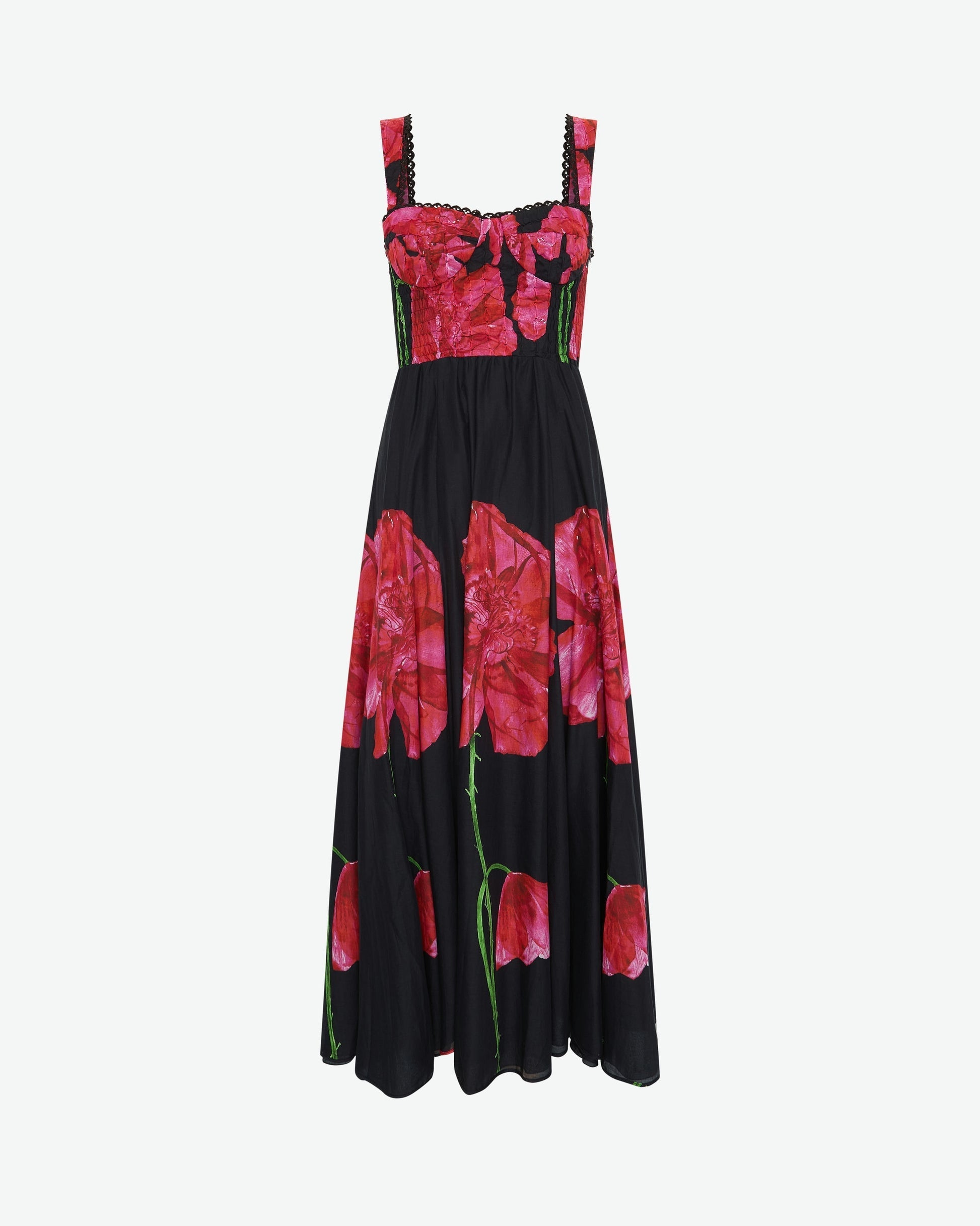 CRISSY dress, in cotton voile, is the epitome of beauty. Its floral maxi-print combines with the light 3D embroidery to create a feminine and summery piece. The exquisite sweetheart neckline is supported by two wide straps and the slit skirt gives the creation that classic island carefree spirit.