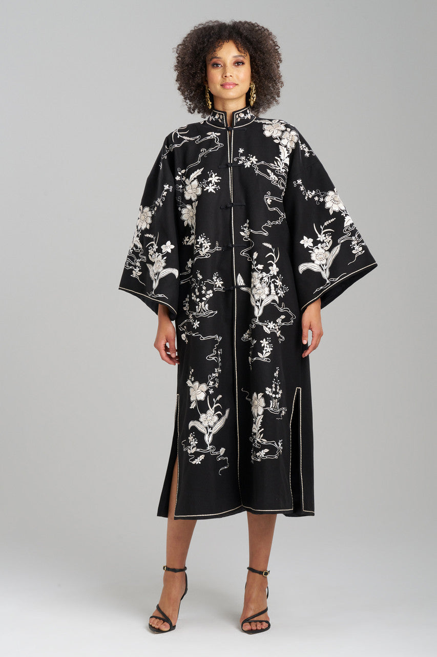 The Josie Natori Fall 2023 Couture collection focuses on curating a wardrobe of collectables, with an emphasis on kimono jackets, coats, and layering pieces. Inspired by the opulence of the Orient Express and Josie’s craftmanship meets comfort mentality.