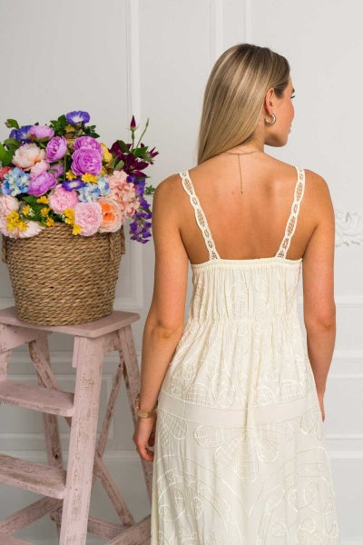Incredibly romantic and feminine, our Day Dream Maxi is a piece of art on its own, crafted in the most delicate rayon and embroidered with the highest quality threads. To fit you comfortably, this maxi comes with an elasticated band at the back and handmade fabric covered button up silhouette to give you endless styling options. Wear it buttoned up as a dreamy dress for an elevated look or button to the chest with boots for more relaxed vibes.