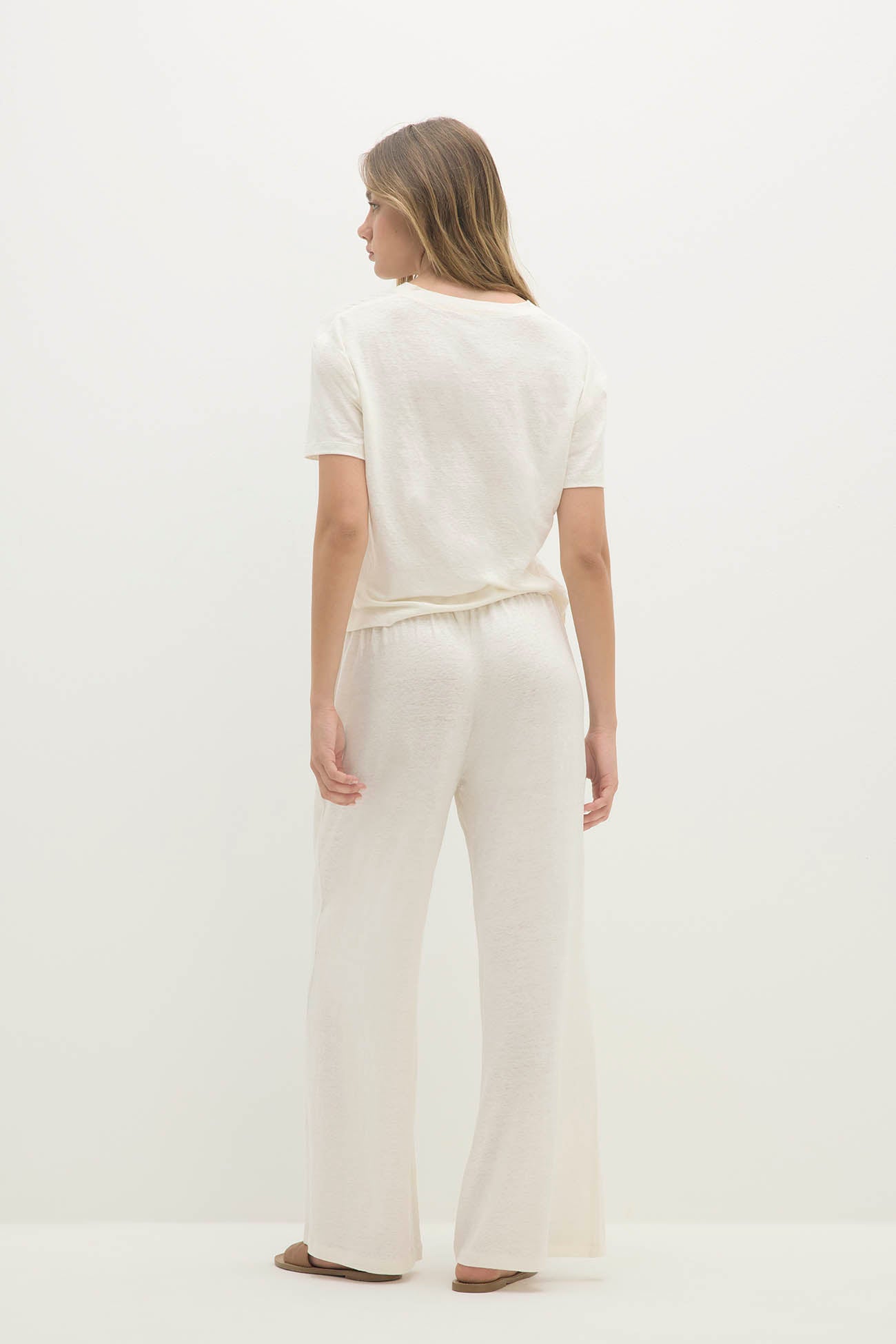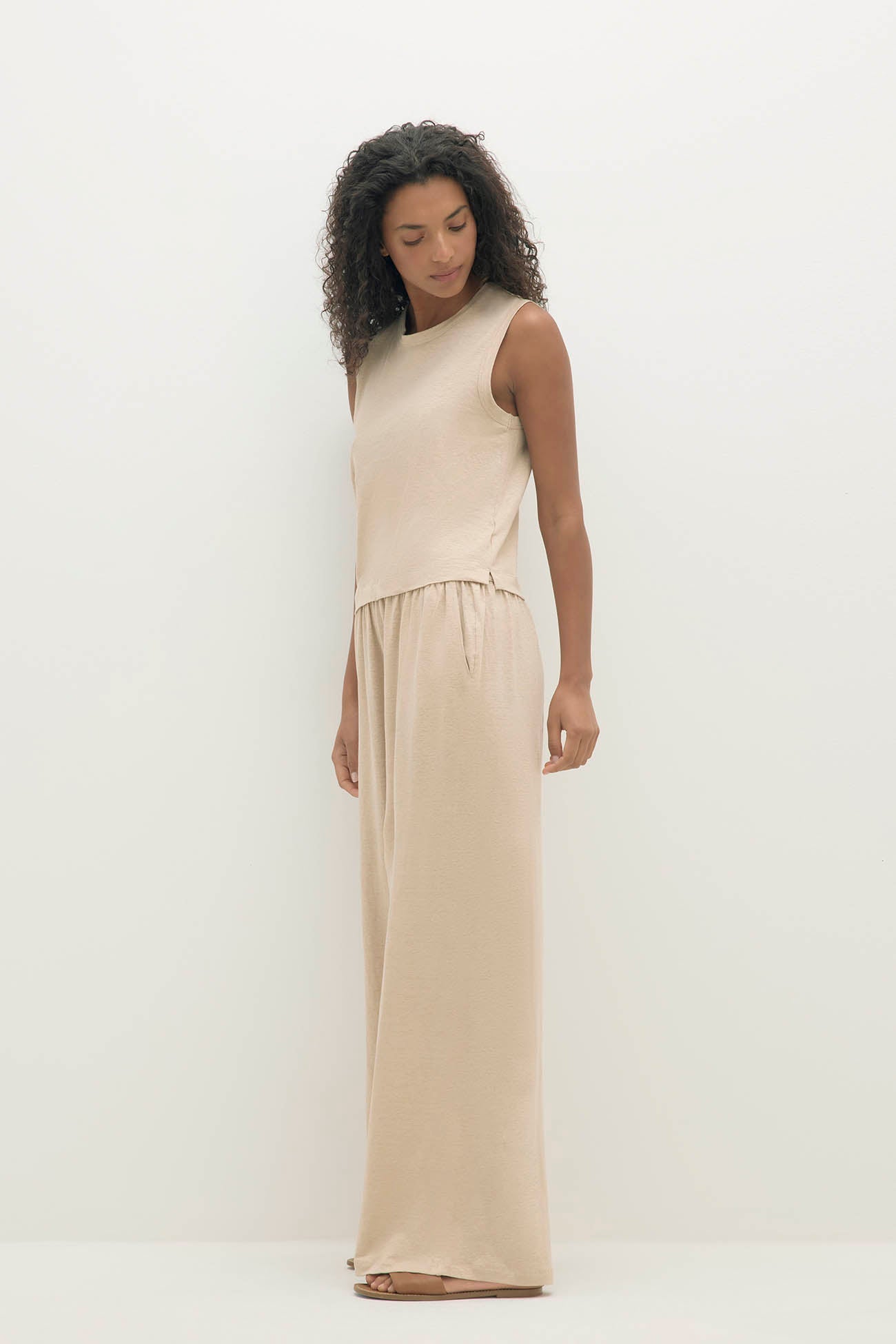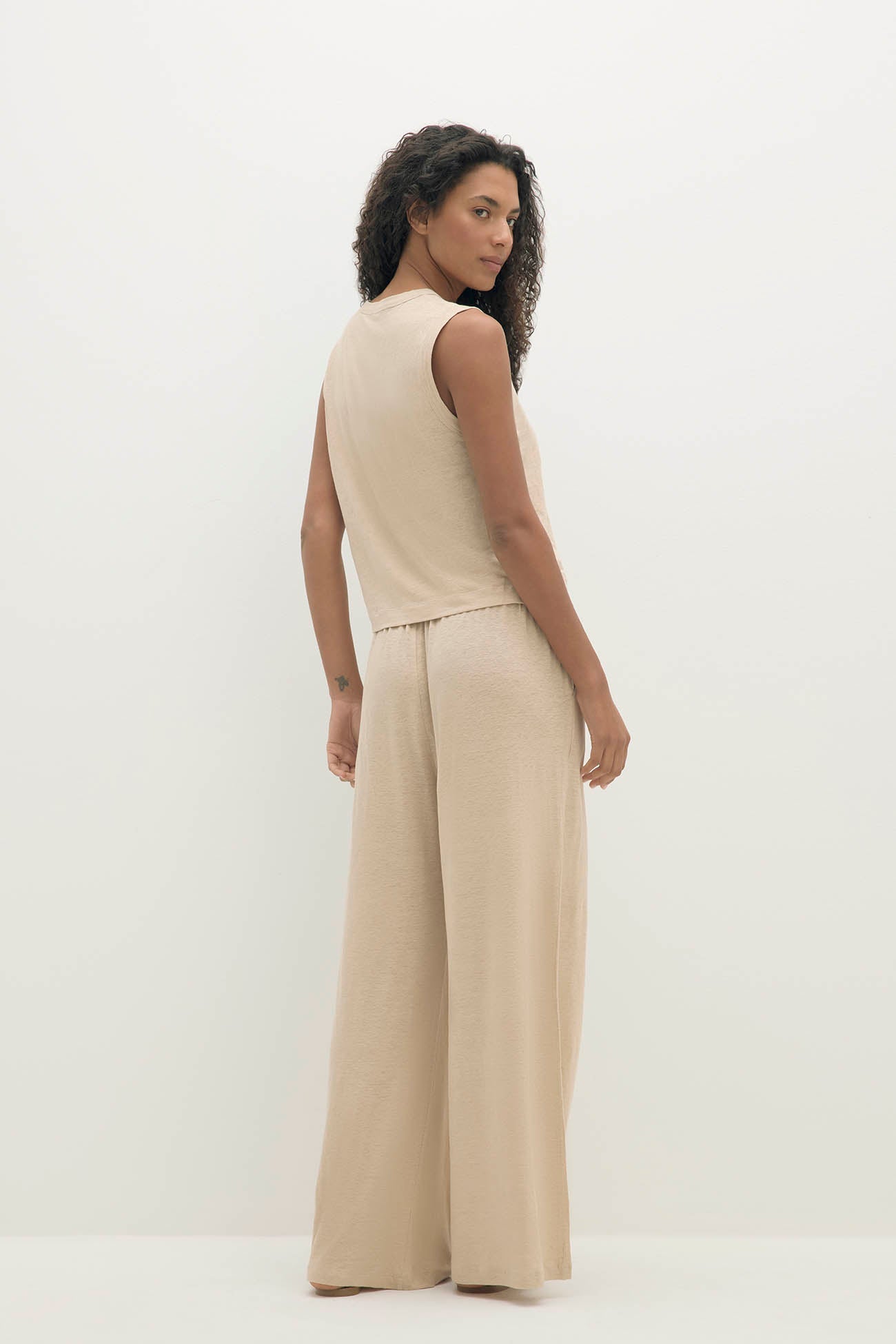 Our comfortable yet elevated linen blend Devin pants are a must-have addition to any wardrobe. Chic wide-leg silhouette complete with a mid-rise elasticized waistband and slit pockets.