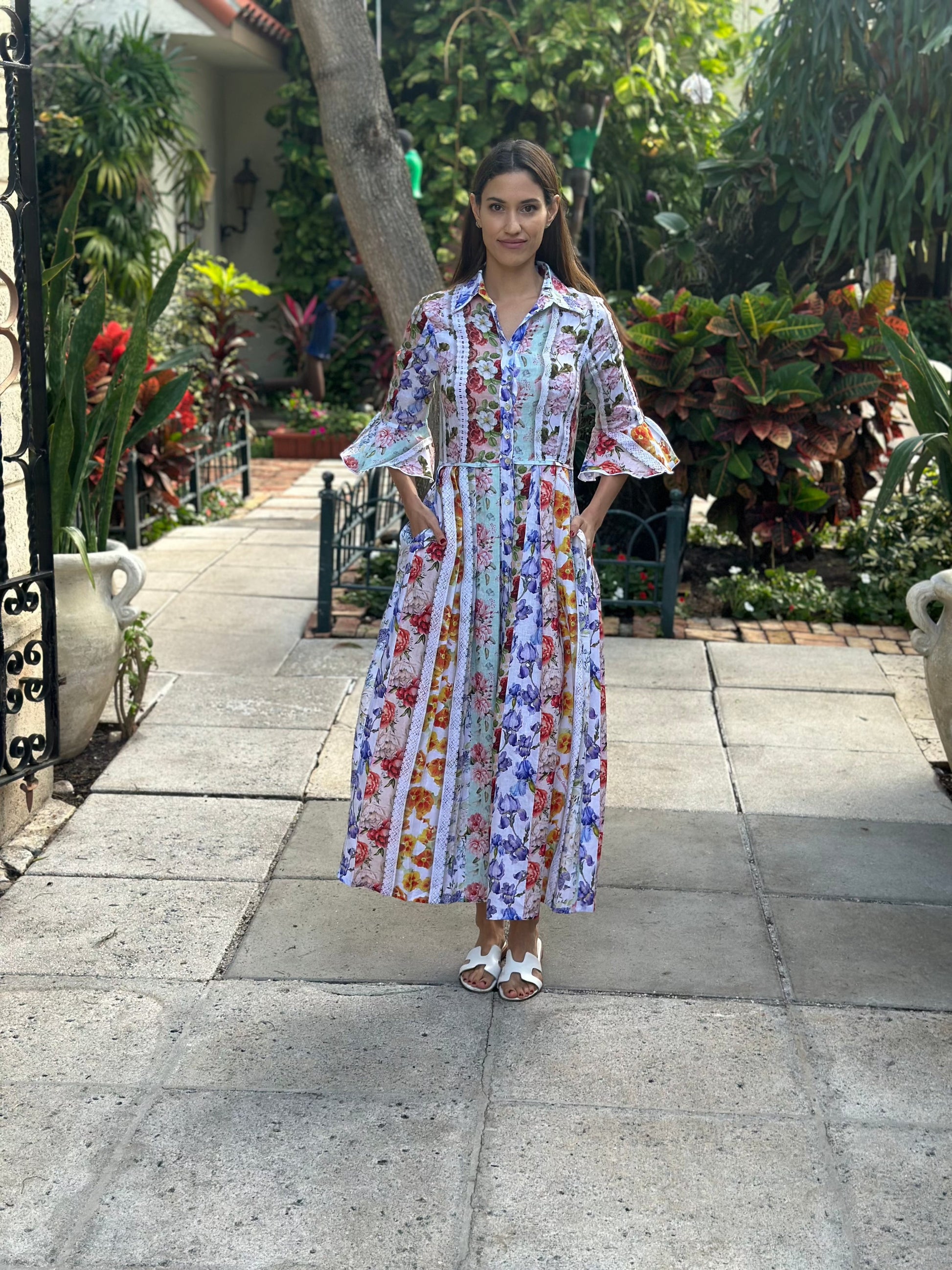 The Alimini Dress is a masterpiece of elegance, entirely made of fine linen, with 3/4 sleeves printed in the same fabric. This shirtdress embodies the essence of sophisticated fashion, offering a fresh and refined look. The precise cut at the waist accentuates the silhouette, while the delicate pleat flows gracefully from the waist to the ankle length. Made in Italy clothing packaged with craftsmanship and passion in Italy.