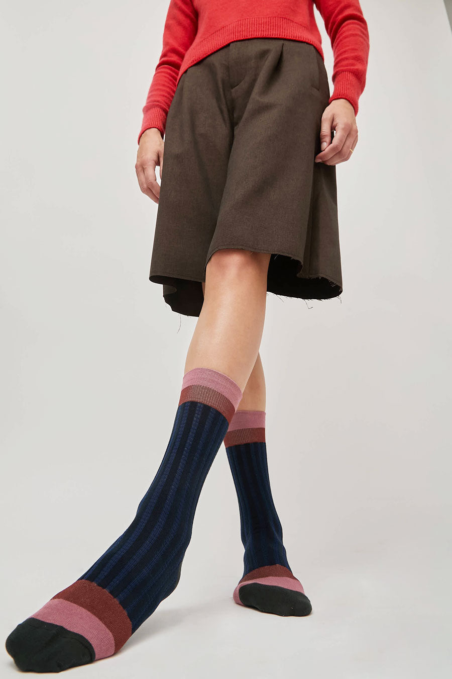 Exquisite J Colorblock Socks in Navy