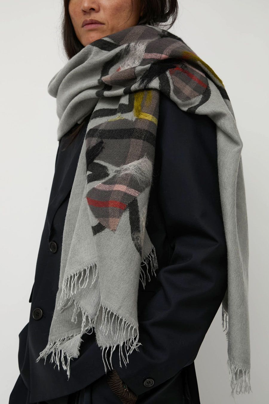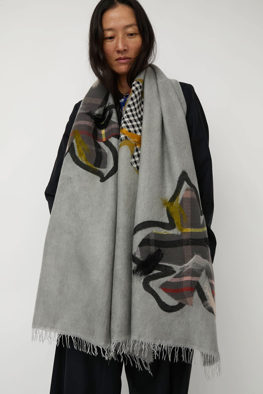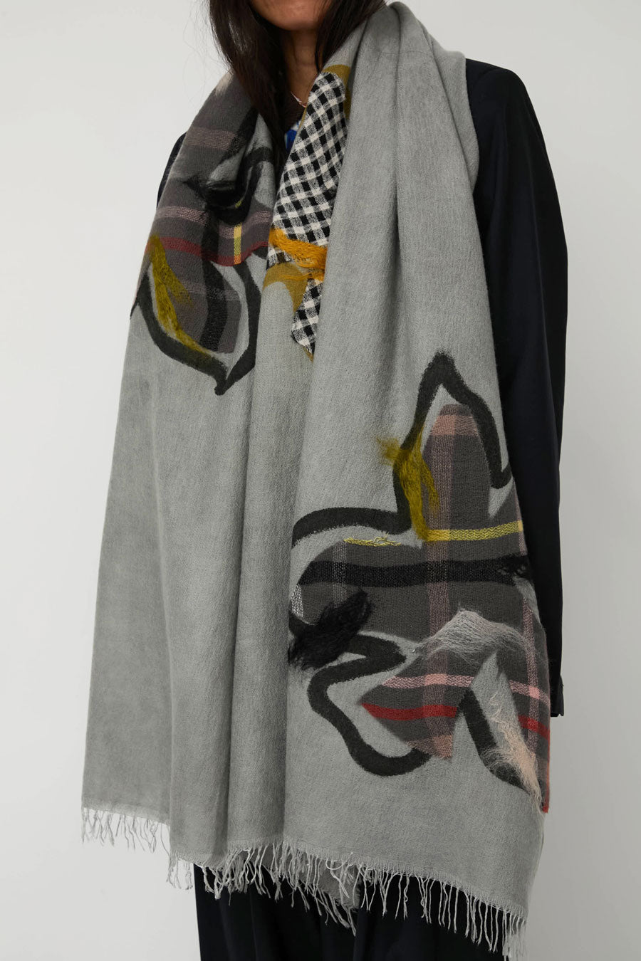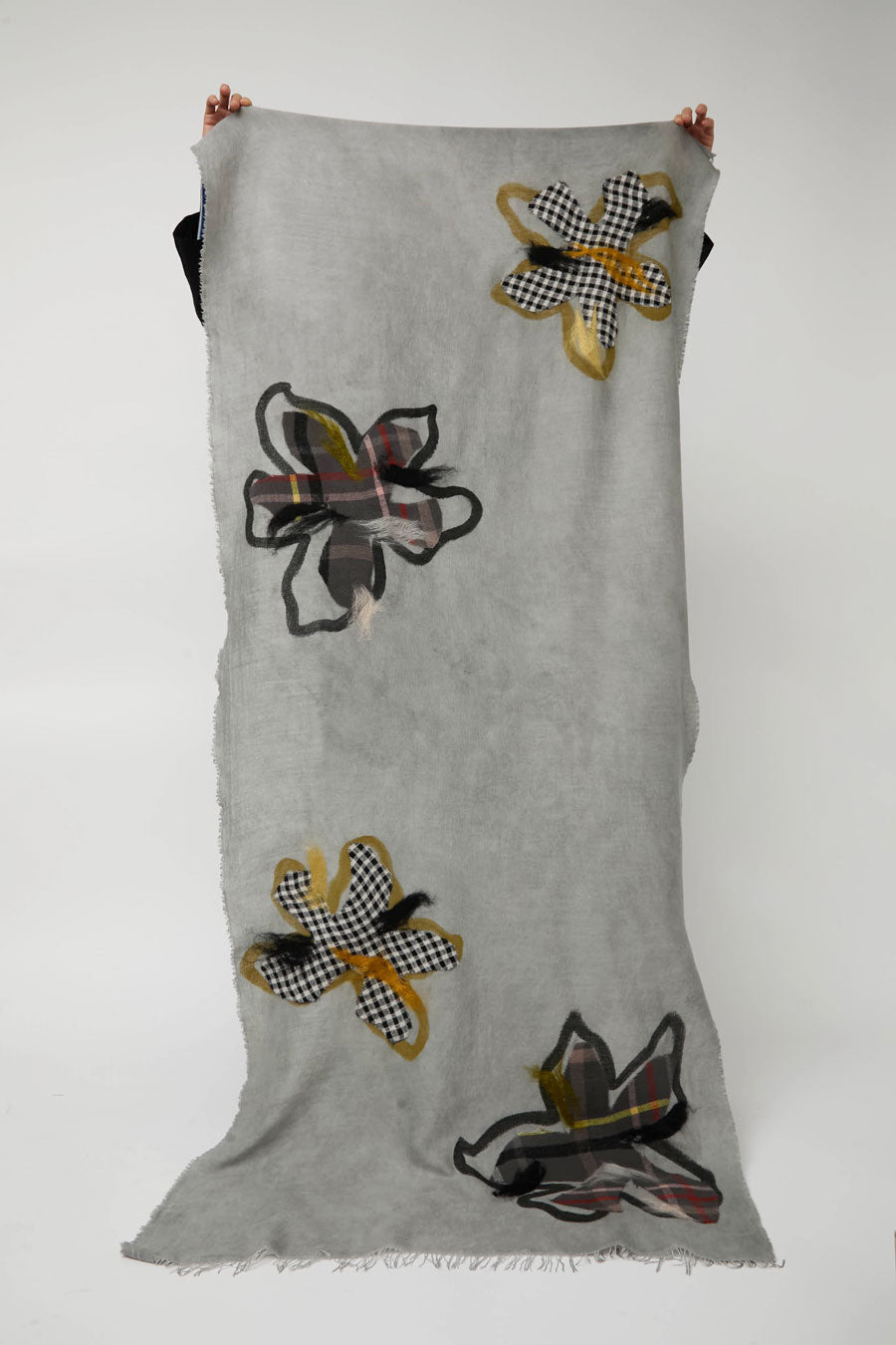 Exquisite J Hand Dyed Scarf with Flowers in Grey