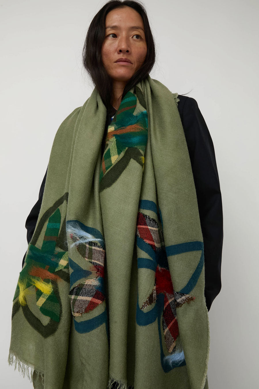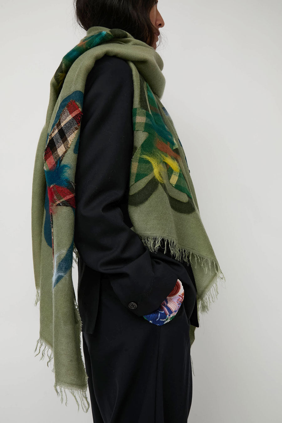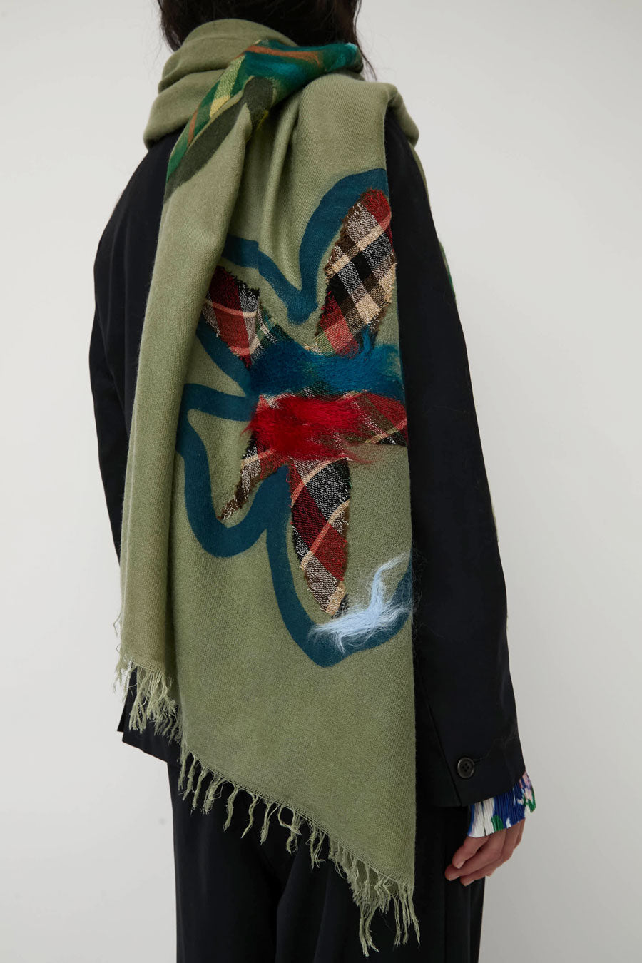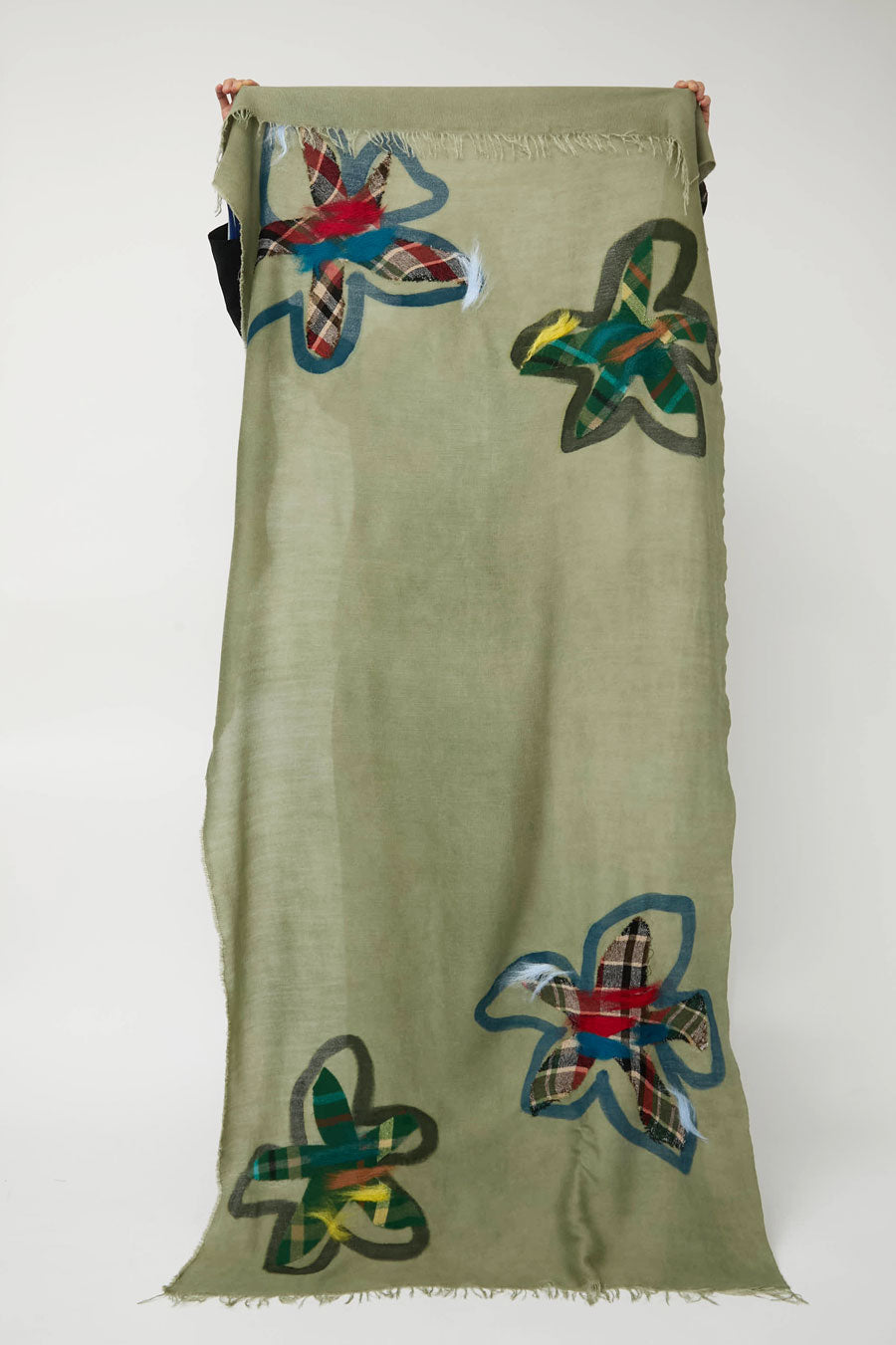 Exquisite J Hand Dyed Scarf with Flowers in Sage