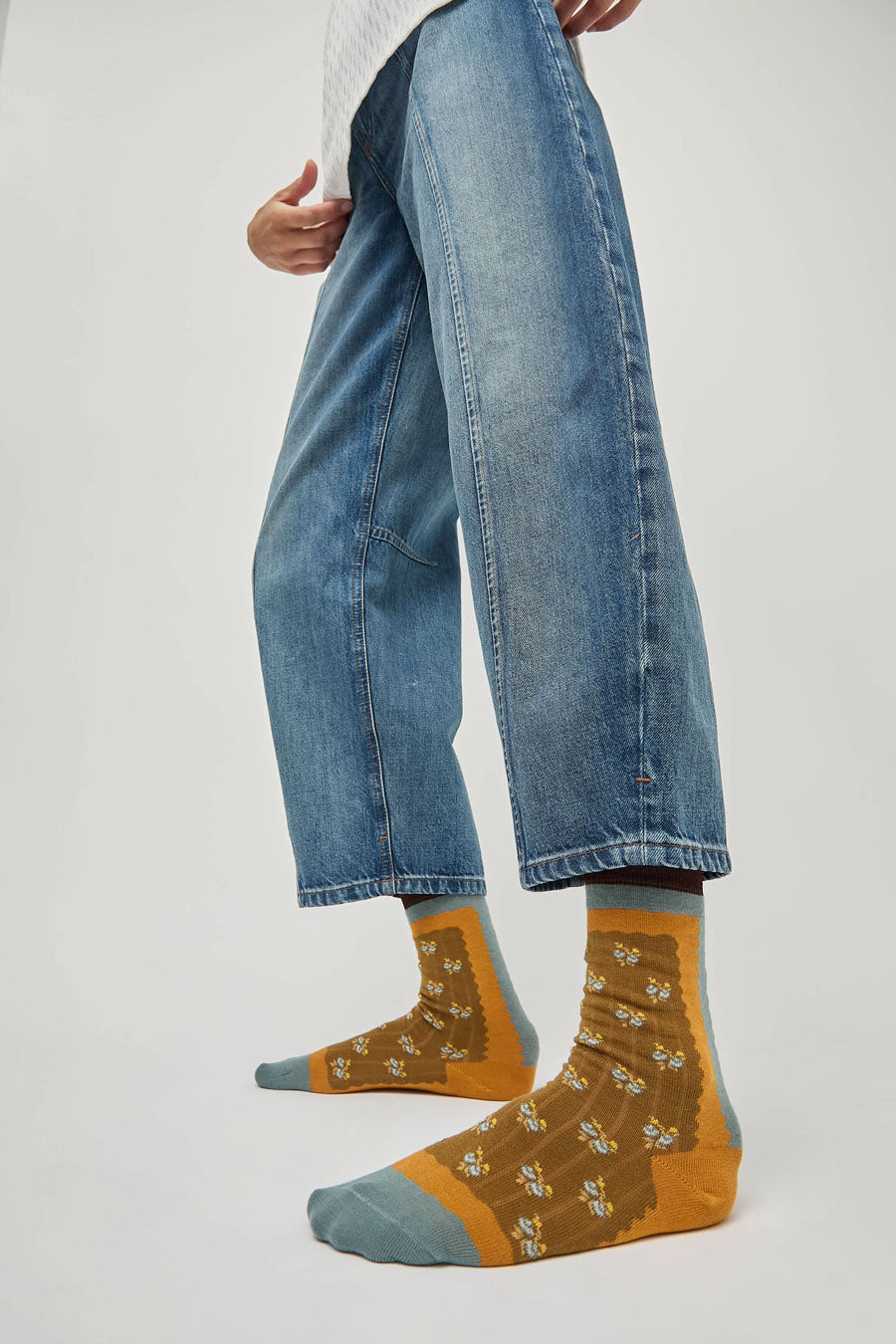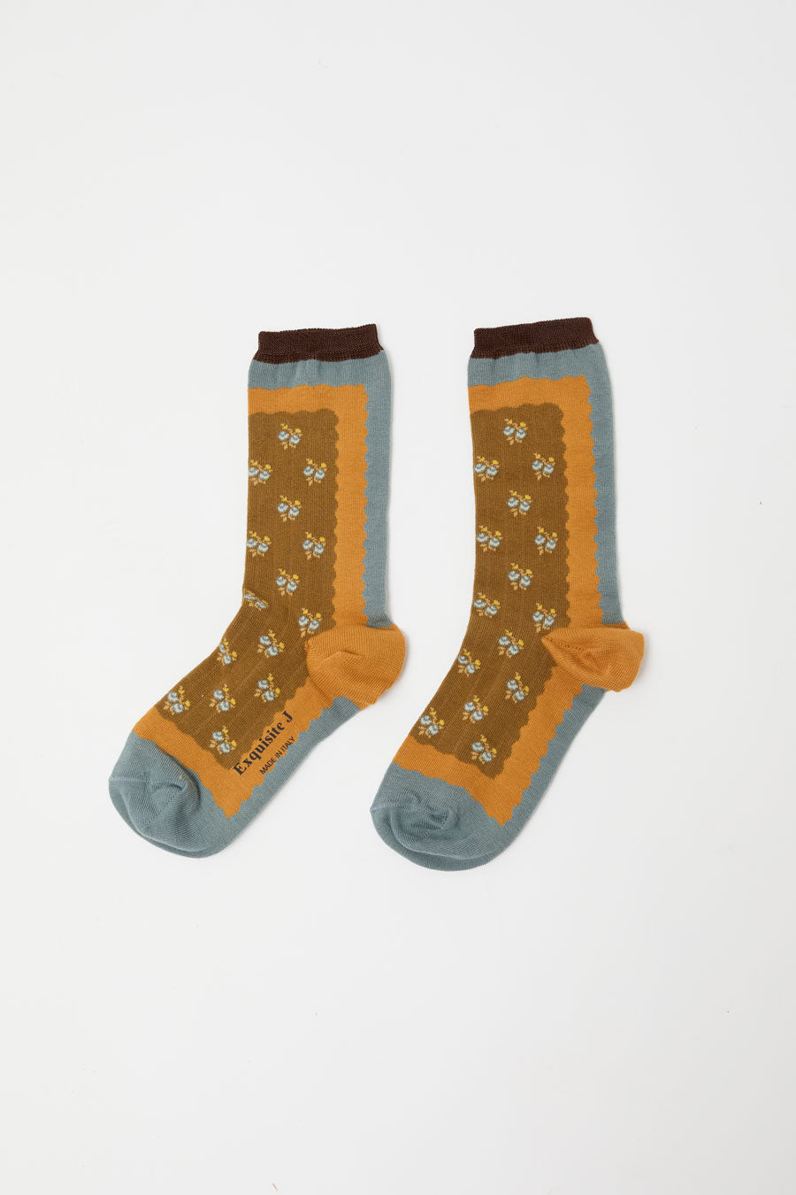 Exquisite J Short Cotton Micro Roses Socks in Mustard