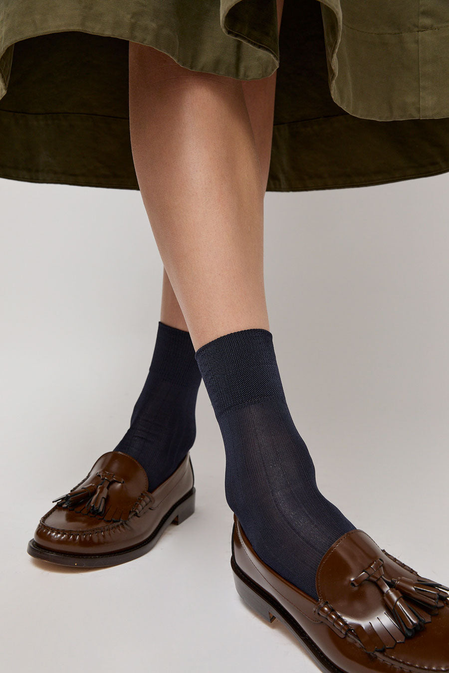 Fun, cozy, mid-calf cotton blend socks. Elasticated top for a perfect fit. Logo at arch of foot.