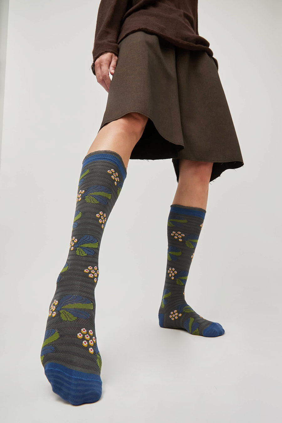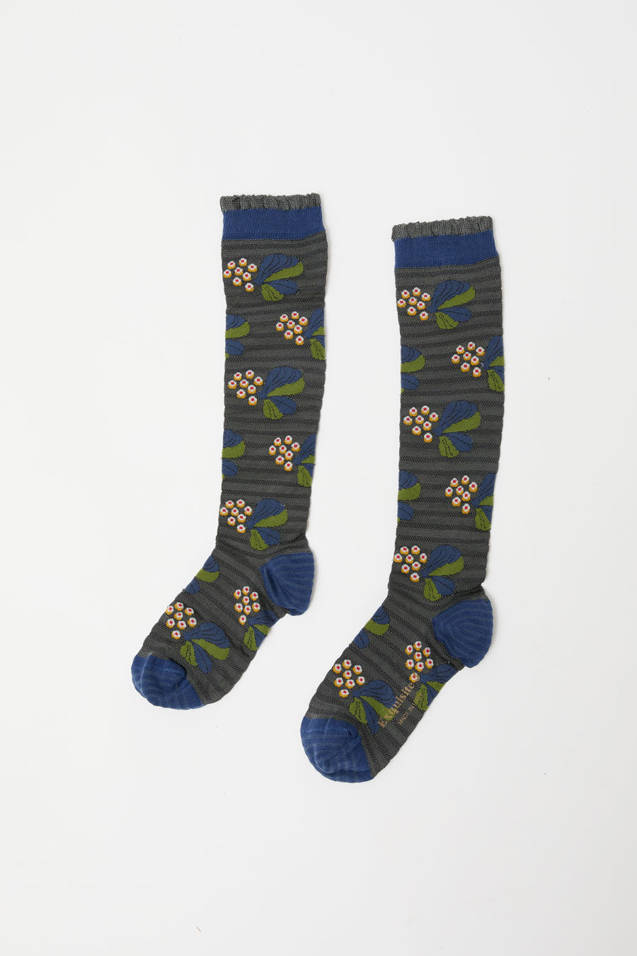 Exquisite J Tall Berries and Flower Socks in Midnight