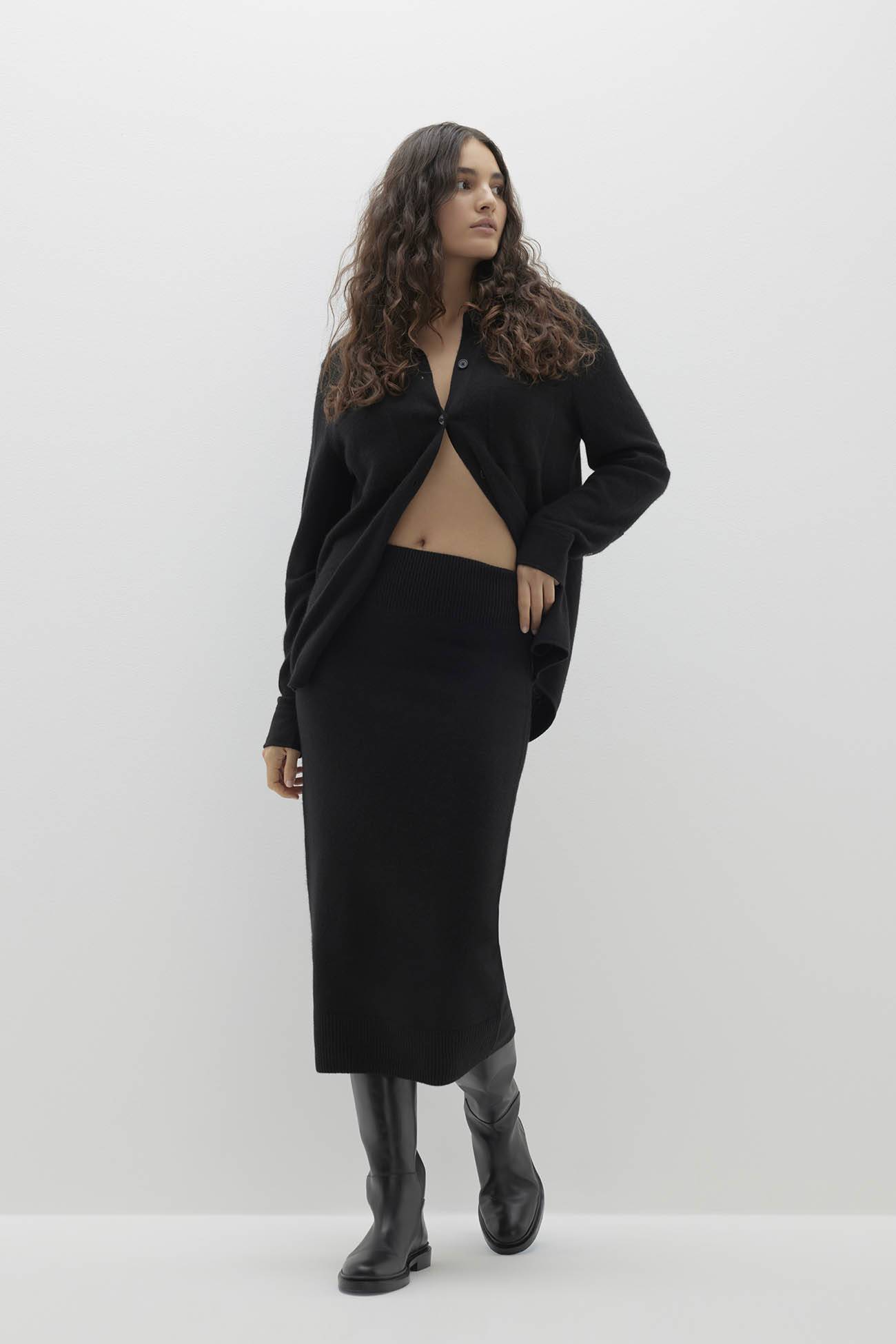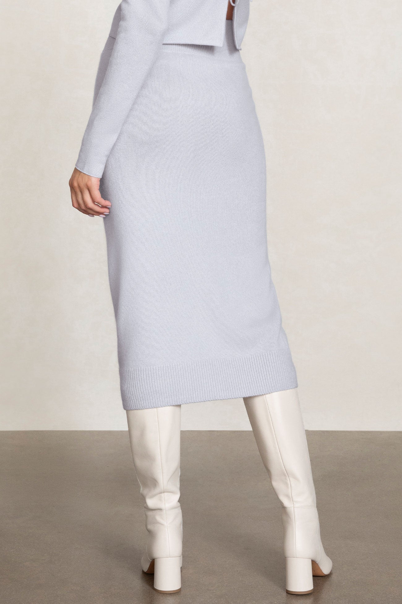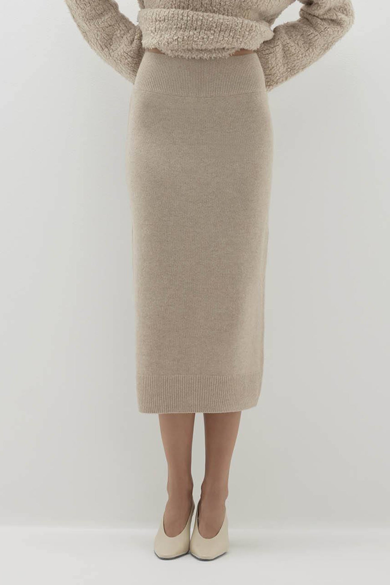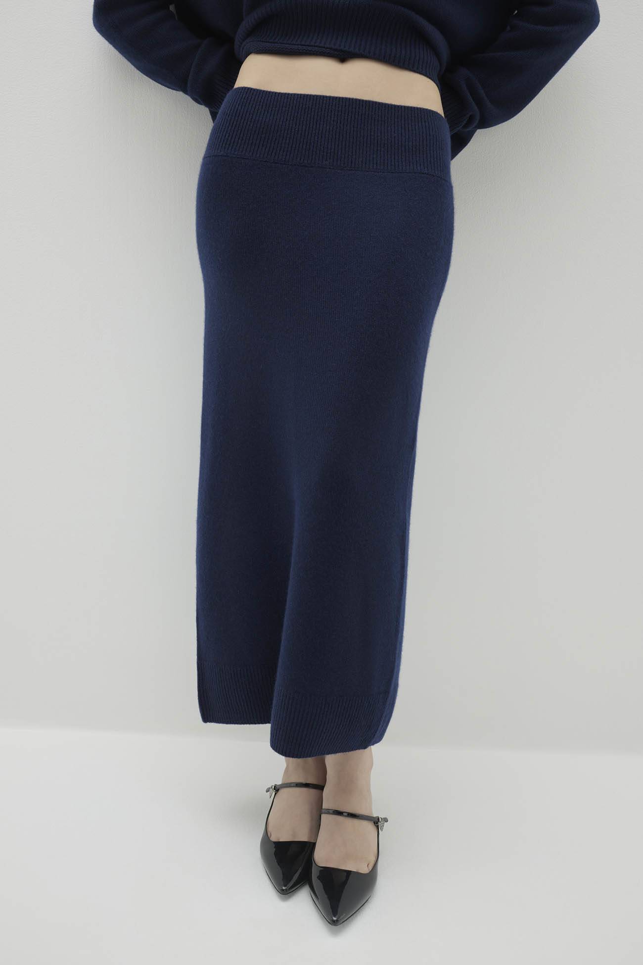 Chic knit pencil skirt that will take you from day to night. Sleek long-line silhouette and thick ribbed waist band for the perfect fit.