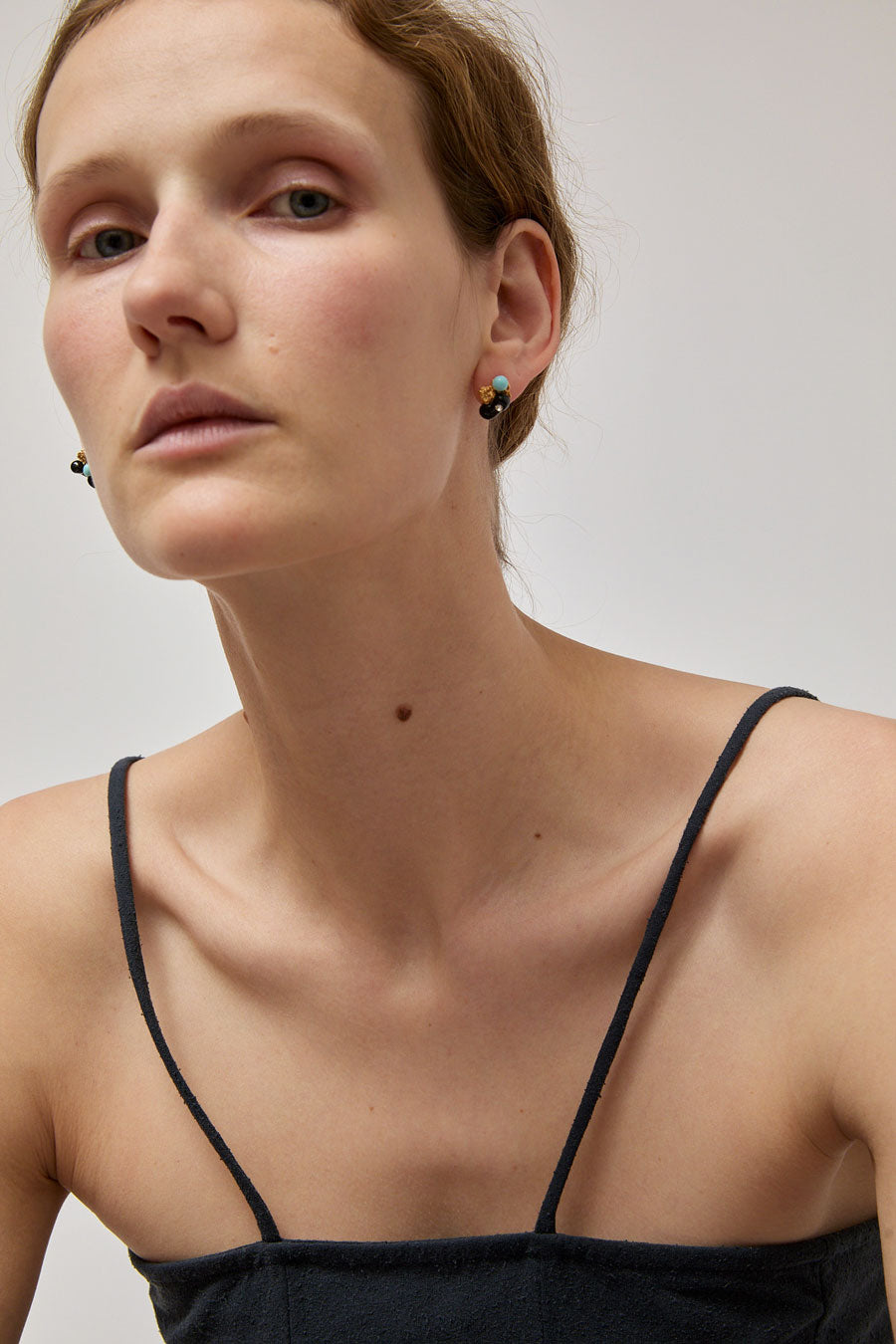 Pair of stud earrings clustered with an array of resin and gold plated brass beads. Amorphous, organic, and one of a kind.