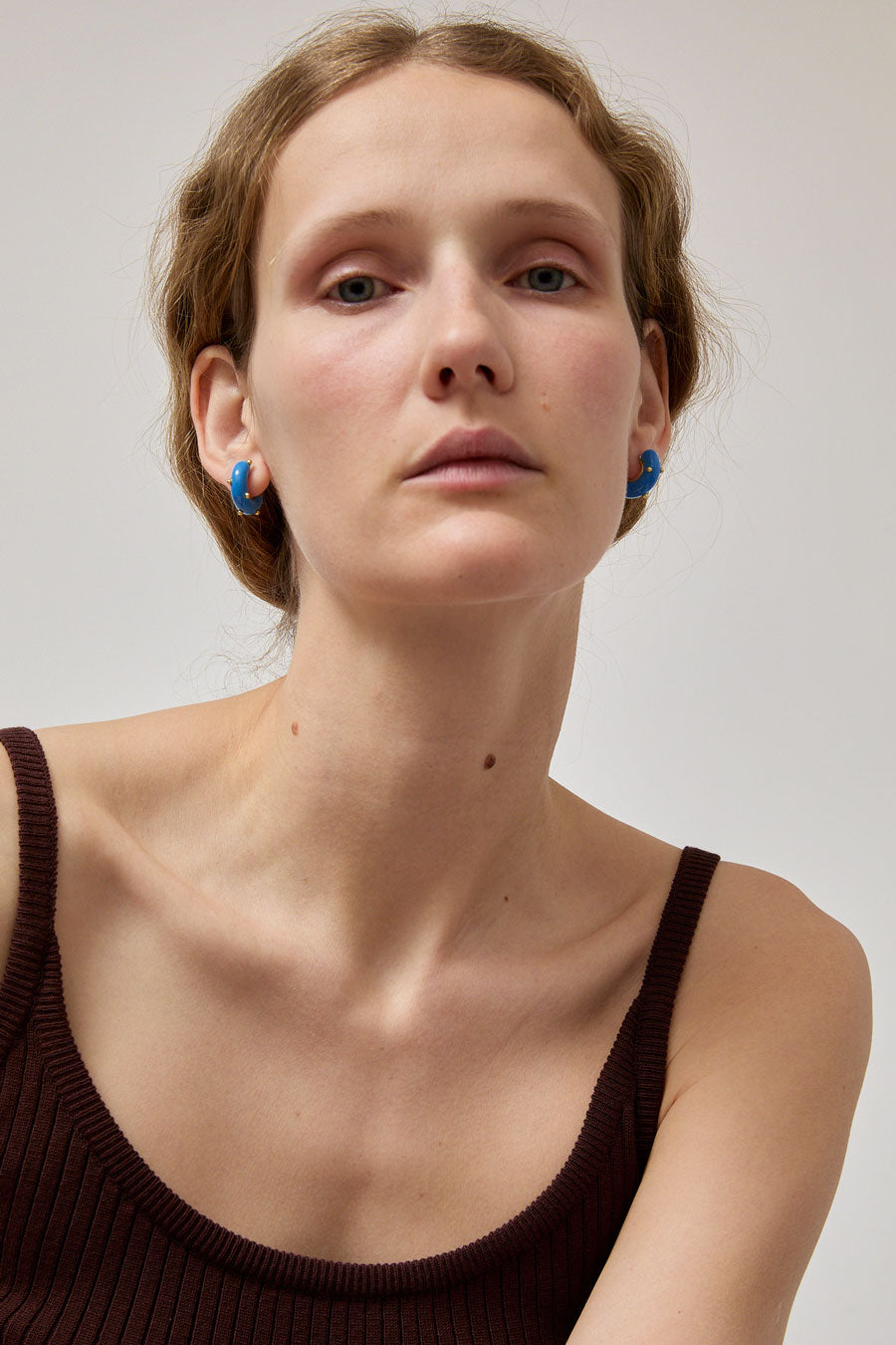 Hannayoo Works Mini Moons Earrings in Bright Blue