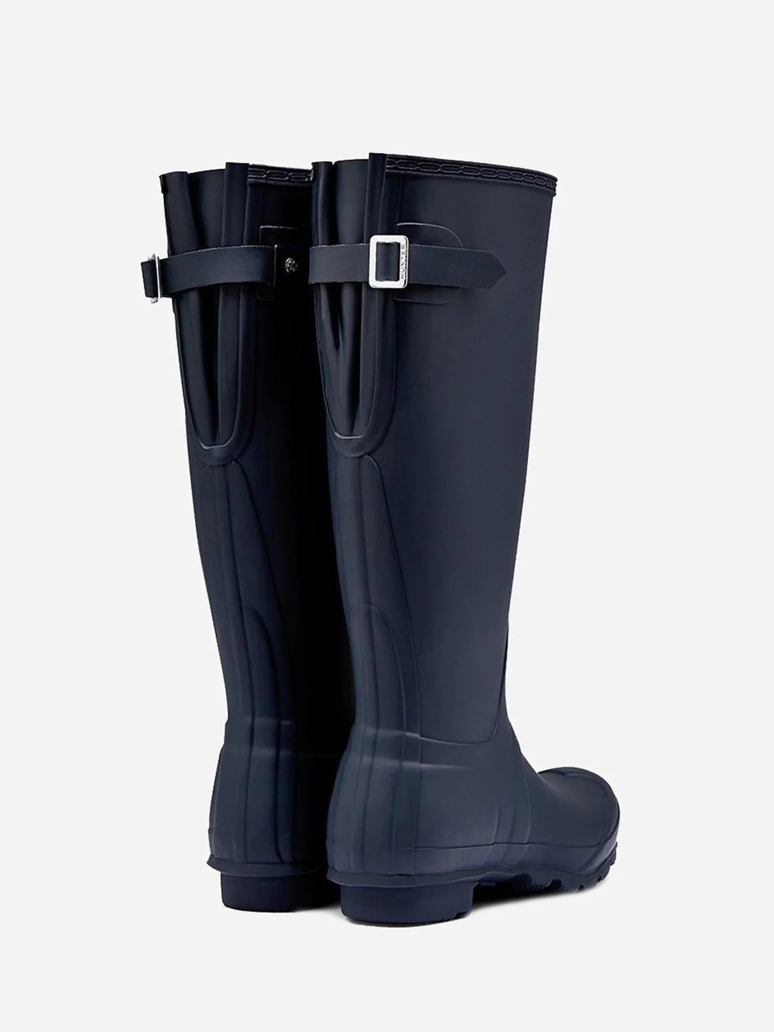 This rain boot is an adjustable design. The boot is waterproof with an expandable gusset and strap at the back to tighten the fit. A handcrafted style, it includes many of the signatures of Hunter's Original boot from 1956, including the moustache detail at the toe.