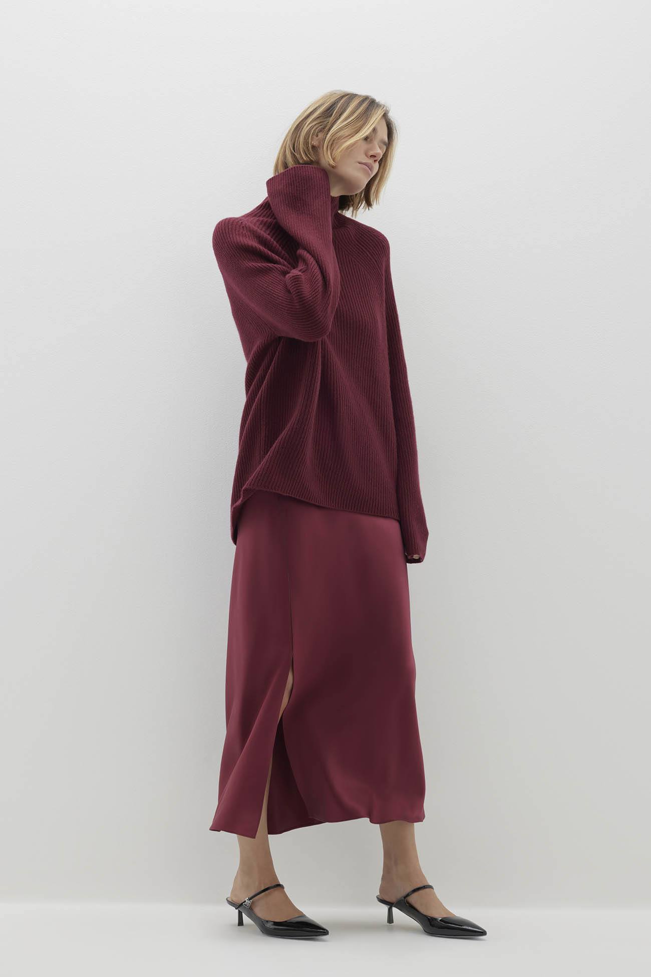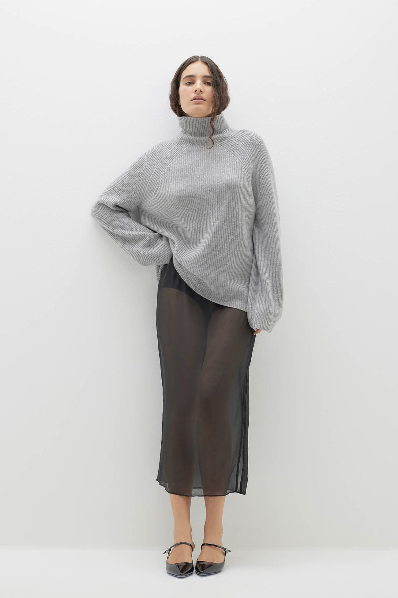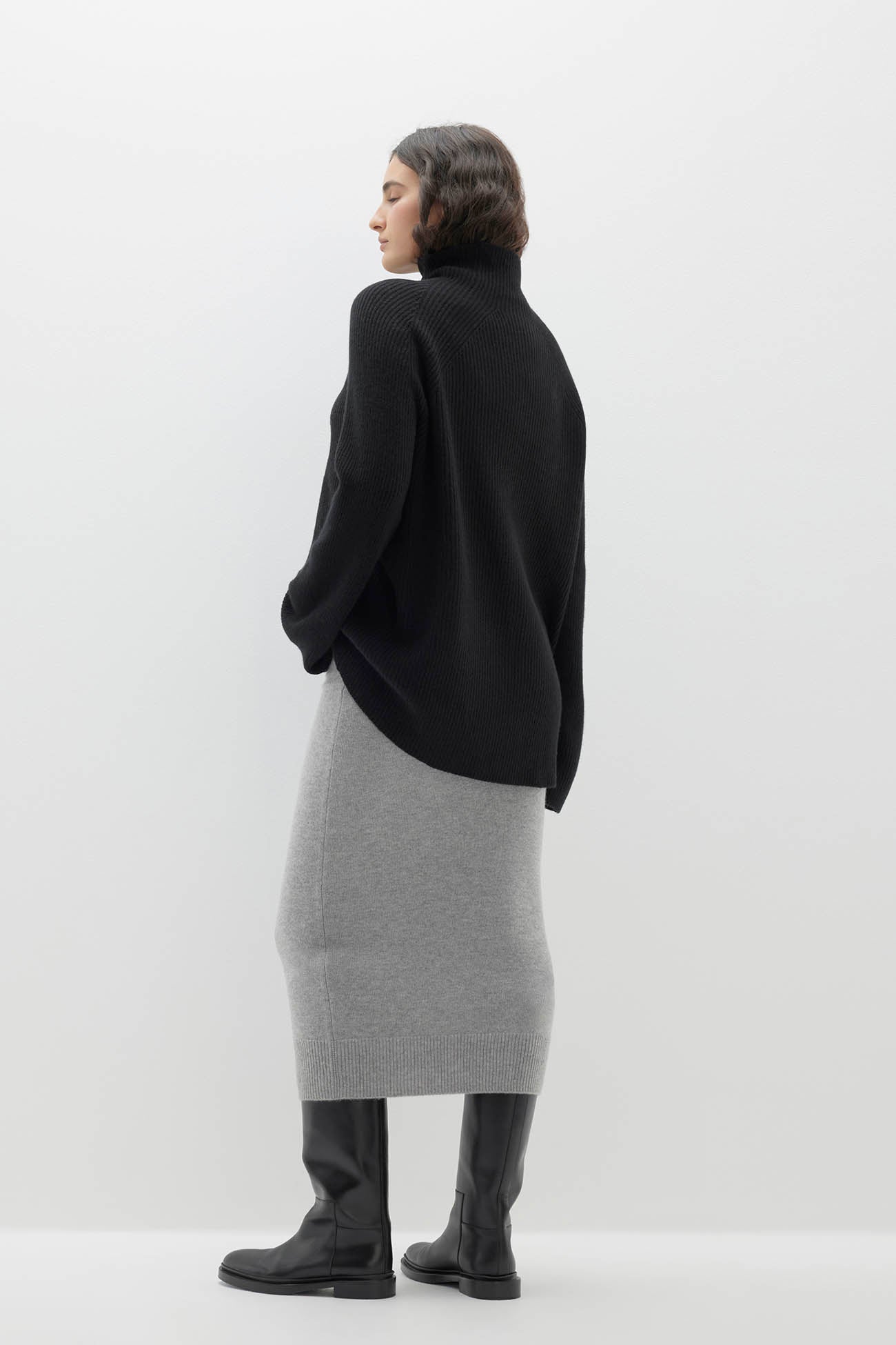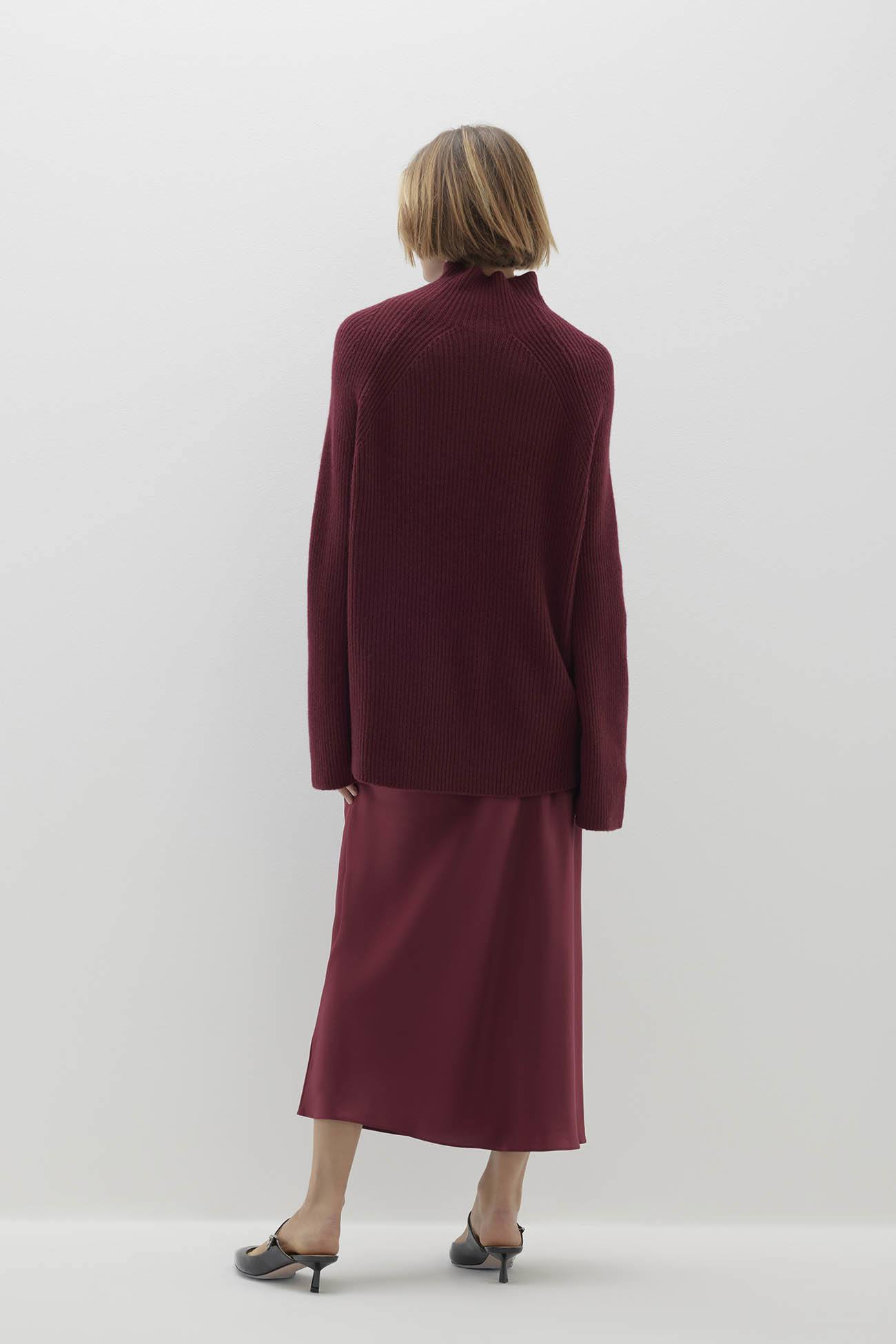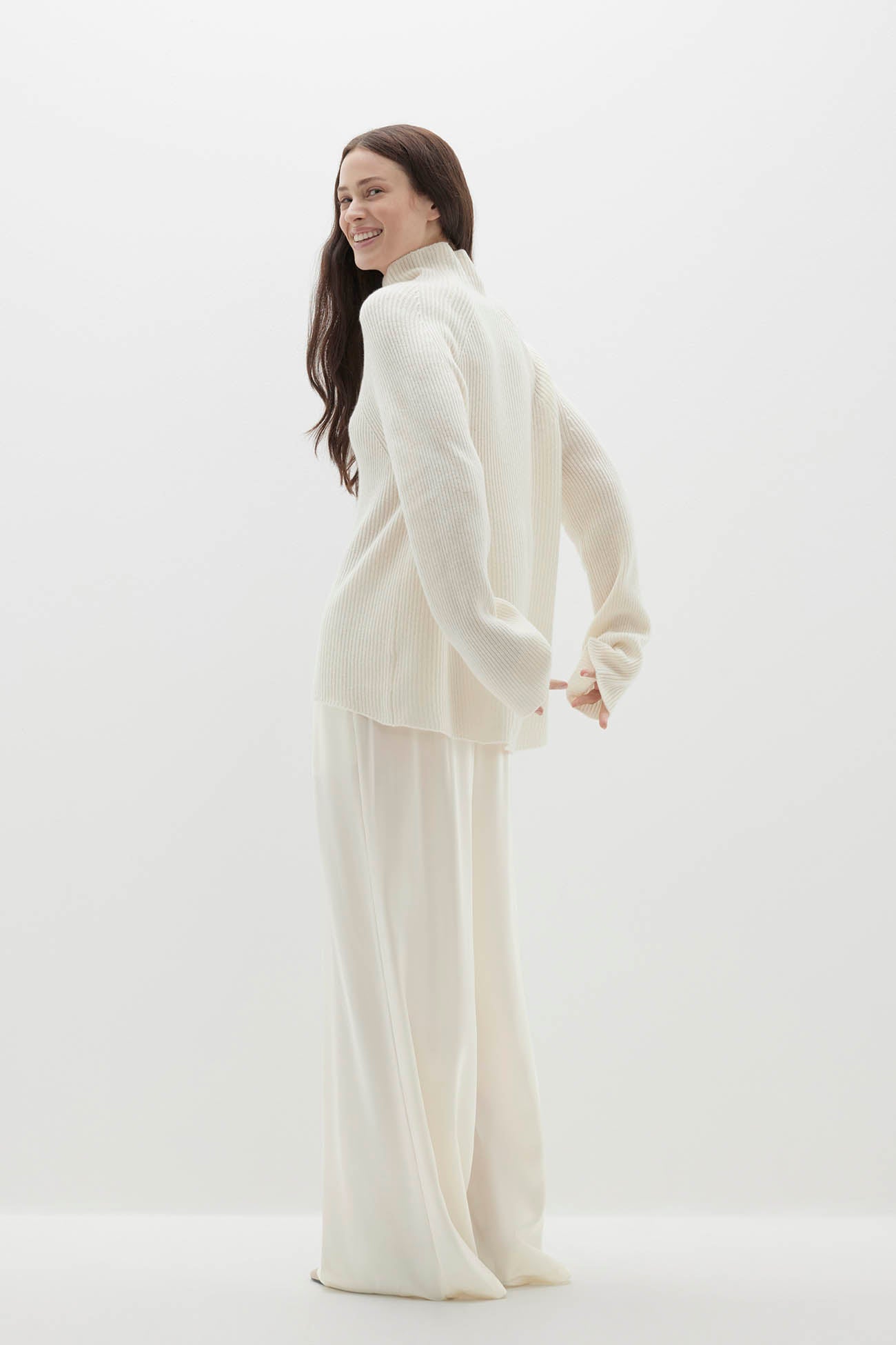 Relax in style with the Kora mock neck sweater, crafted from soft cashmere with ribbed detailing throughout. The relaxed fit makes it perfect for layering or wearing on its own for a laid-back, chic look.