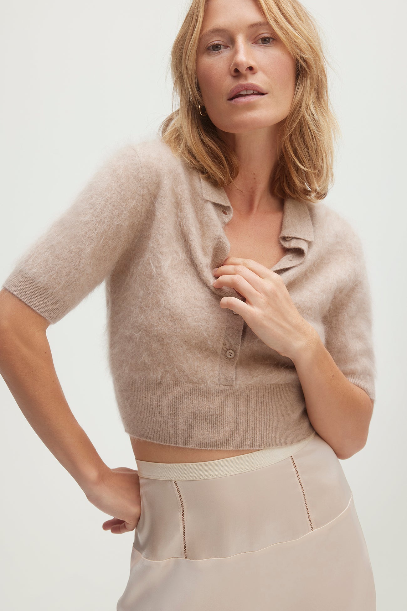 Elevate your style with our Maisie collared sweater. Crafted from premium brushed cashmere, this sweater is both beautiful and soft. Button detail at the front creates a sophisticated look.
