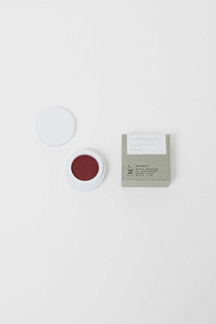 The All over color is an award-winning versatile organic, natural and wild harvested lip and cheek colour, as well as a contour cream and eye shadow in one product. It can be worn in limitless ways, built up from a subtle shade to a statement look, or layered with other colors to create stunning new shades.