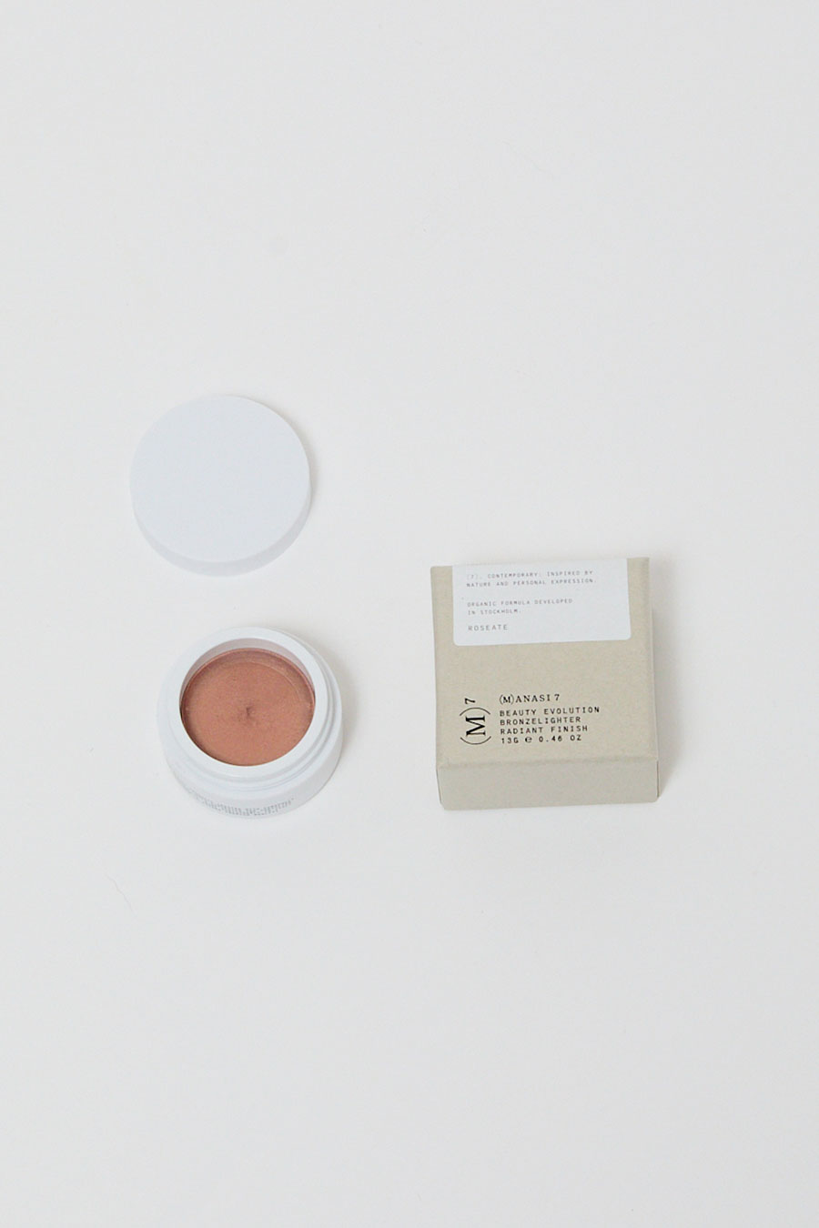 Made with natural, wild-harvested and certified organic ingredients, this award-winning non-oily cream bronzer formula with the perfect golden rose non-orange hue, adds depth and dimension to the face. It creates a universal radiant glow that flatters all skin tones. Roseate can double as a highlighter for deeper skin tones and features a sophisticated effect that adjusts in any light to impart a soft focus and healthy-looking glow. It’s infused with ultrafine, light reflecting pearls that melt into your skin for a radiant finish.