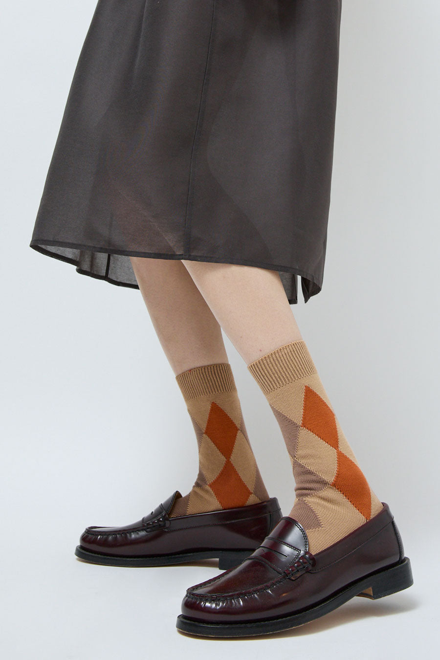 Mid-calf cotton sock in a classic argyle. Elasticated cuff for a perfect fit.