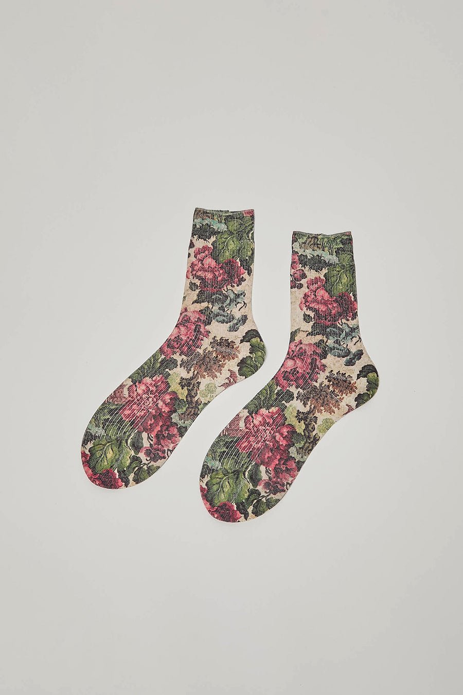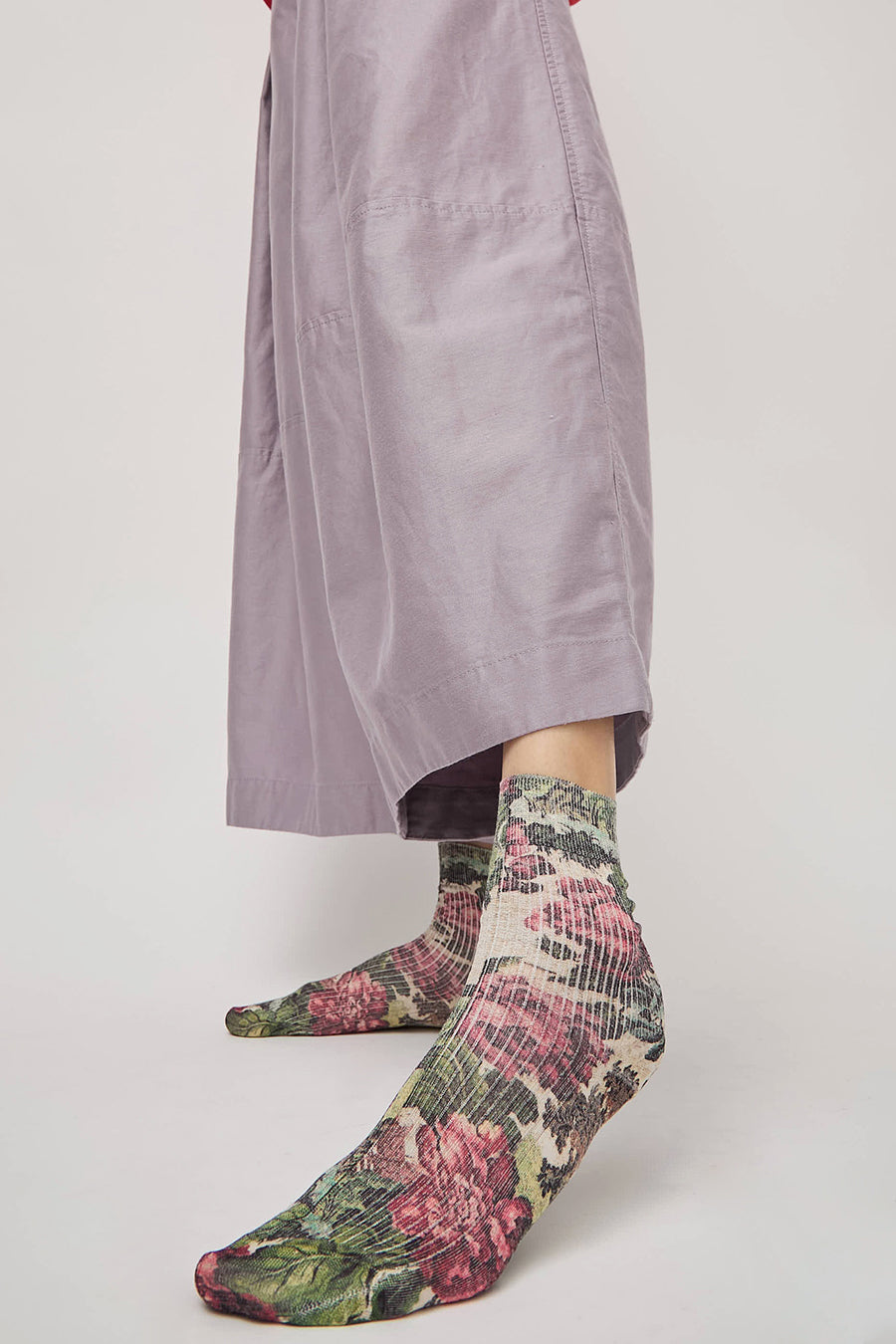 Maria La Rosa Spring Silk Ankle Socks in Mixed Flowers Dark