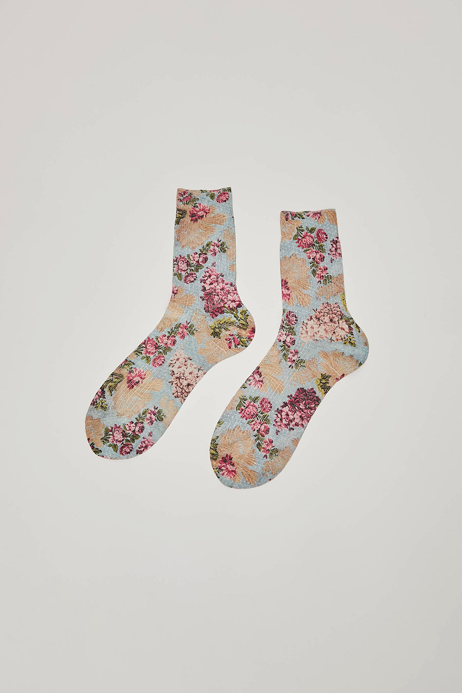 Maria La Rosa Spring Silk Ankle Socks in Mixed Flowers Light