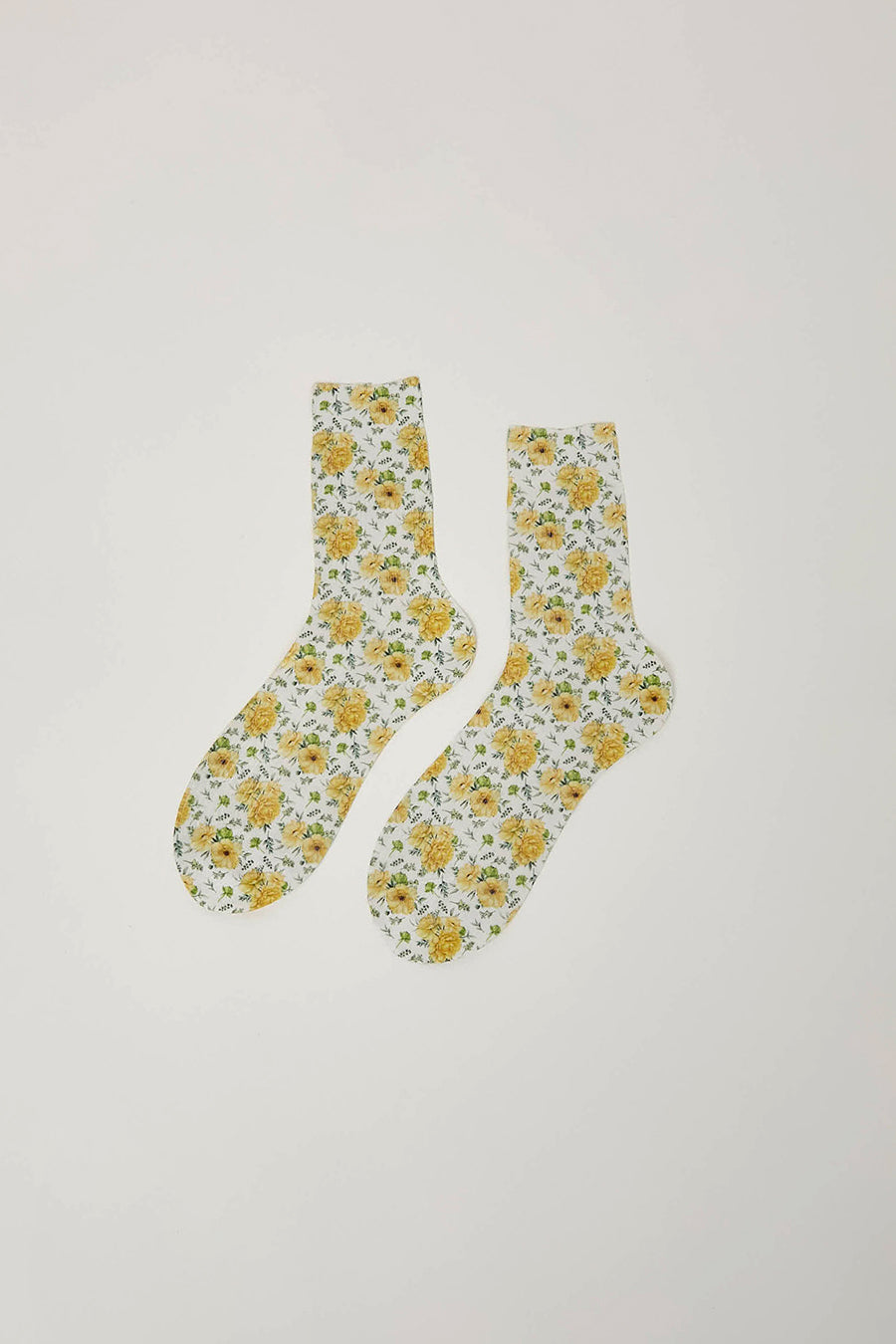 Maria La Rosa Spring Silk Ankle Socks in Yellow Flowers