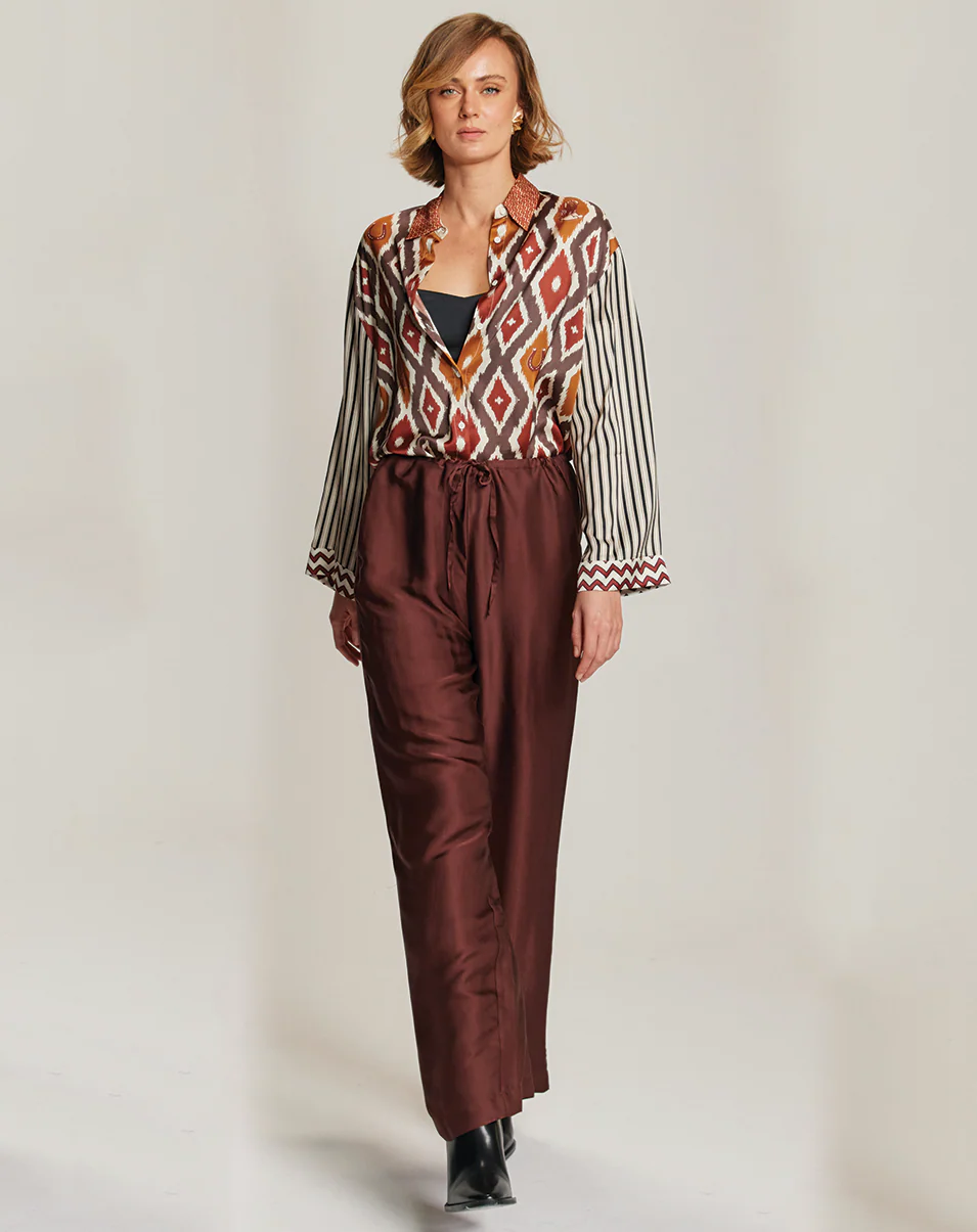 Button down collar shirt in our Rodeo patterns with long sleeves that are wide along the wrist. Shirt has a rounded hemline. Pair with our matching savannah pants for a complete, fun look.