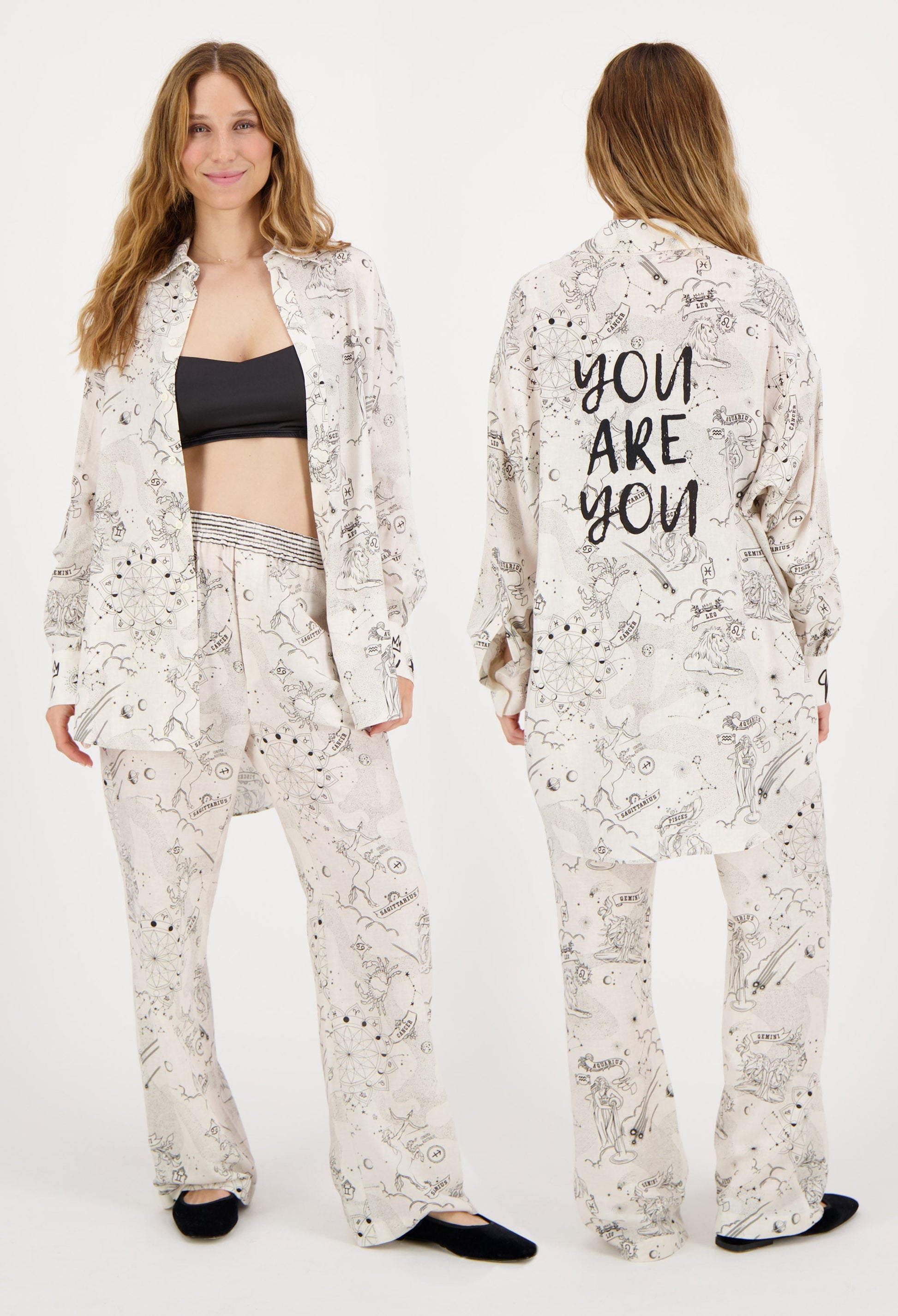 Linen Viscose mix straight leg pants in our Zodiak print. Pair with our matching top for a vivid, eye catching look.290