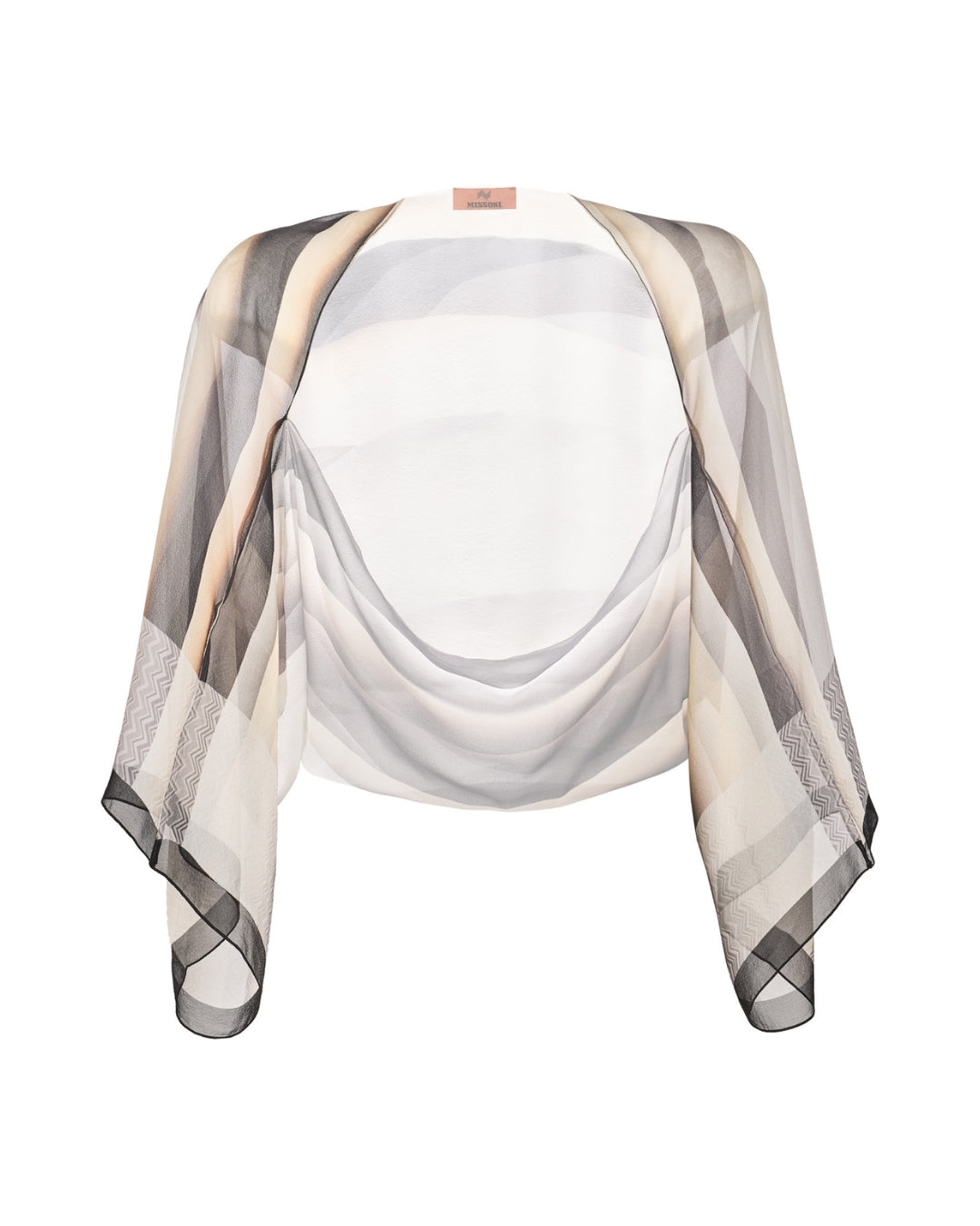 Introducing the Missoni Poncho Woven Shoulder Coat. Made of 100% luxurious silk, this coat measures 113x132cm and features a versatile 70x140cm shoulder coat for added warmth and style. Perfect for any occasion, stay chic and cozy with this timeless piece.