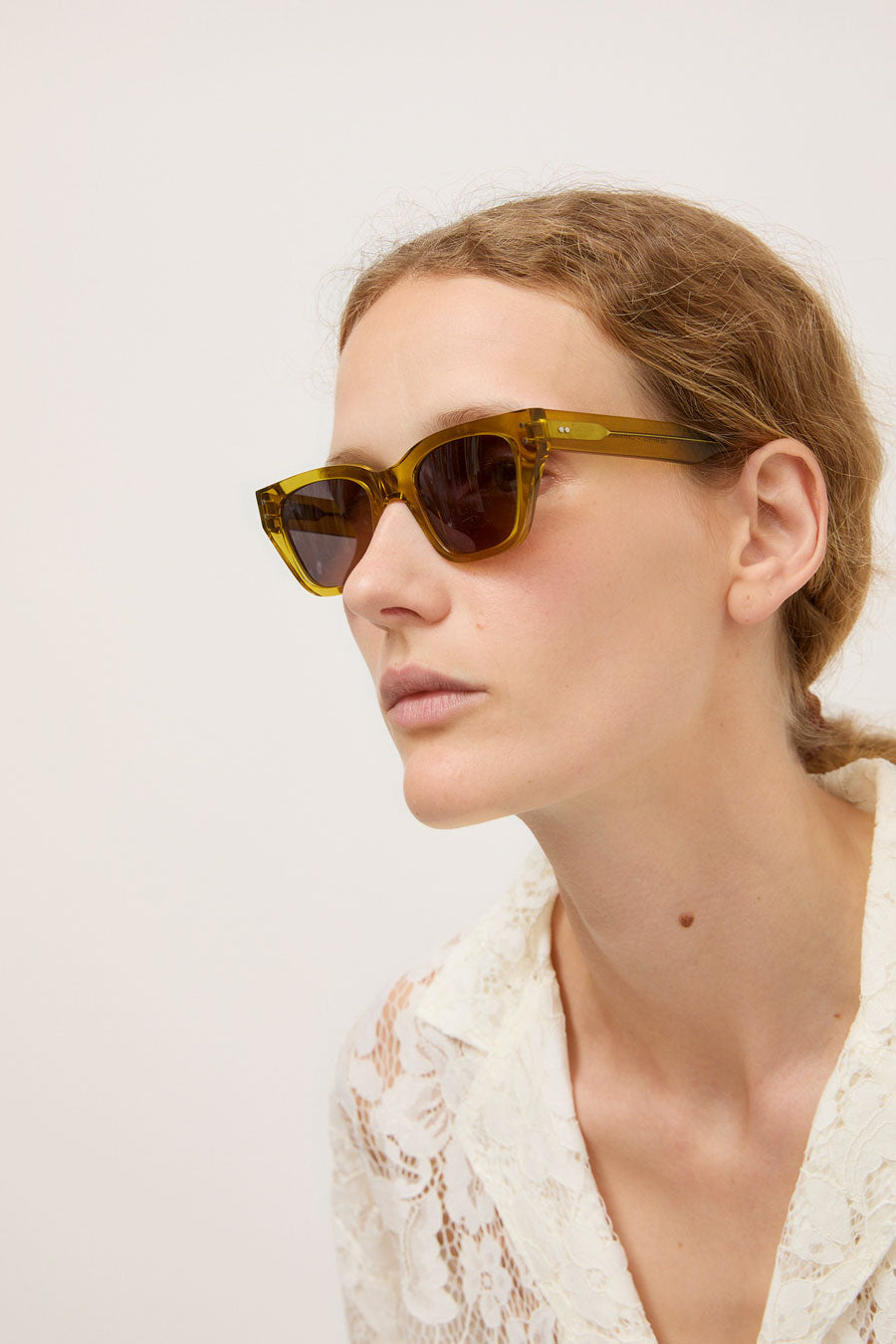 Bold, dark grey tinted sunglasses set in a chocolate brown acetate frame. Classic shape with a touch of drama. Hand-crafted with anti-scratch and anti-reflective lenses.