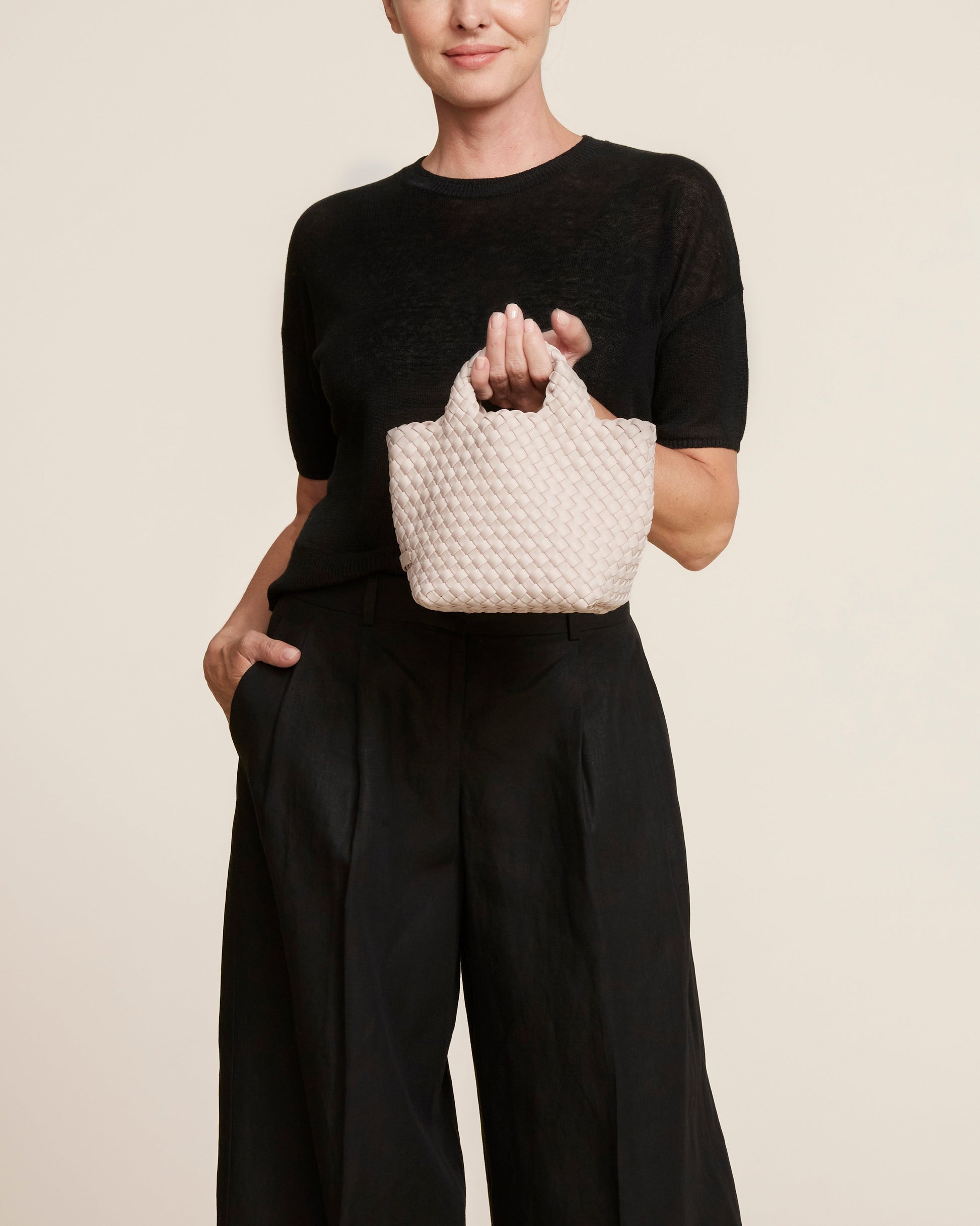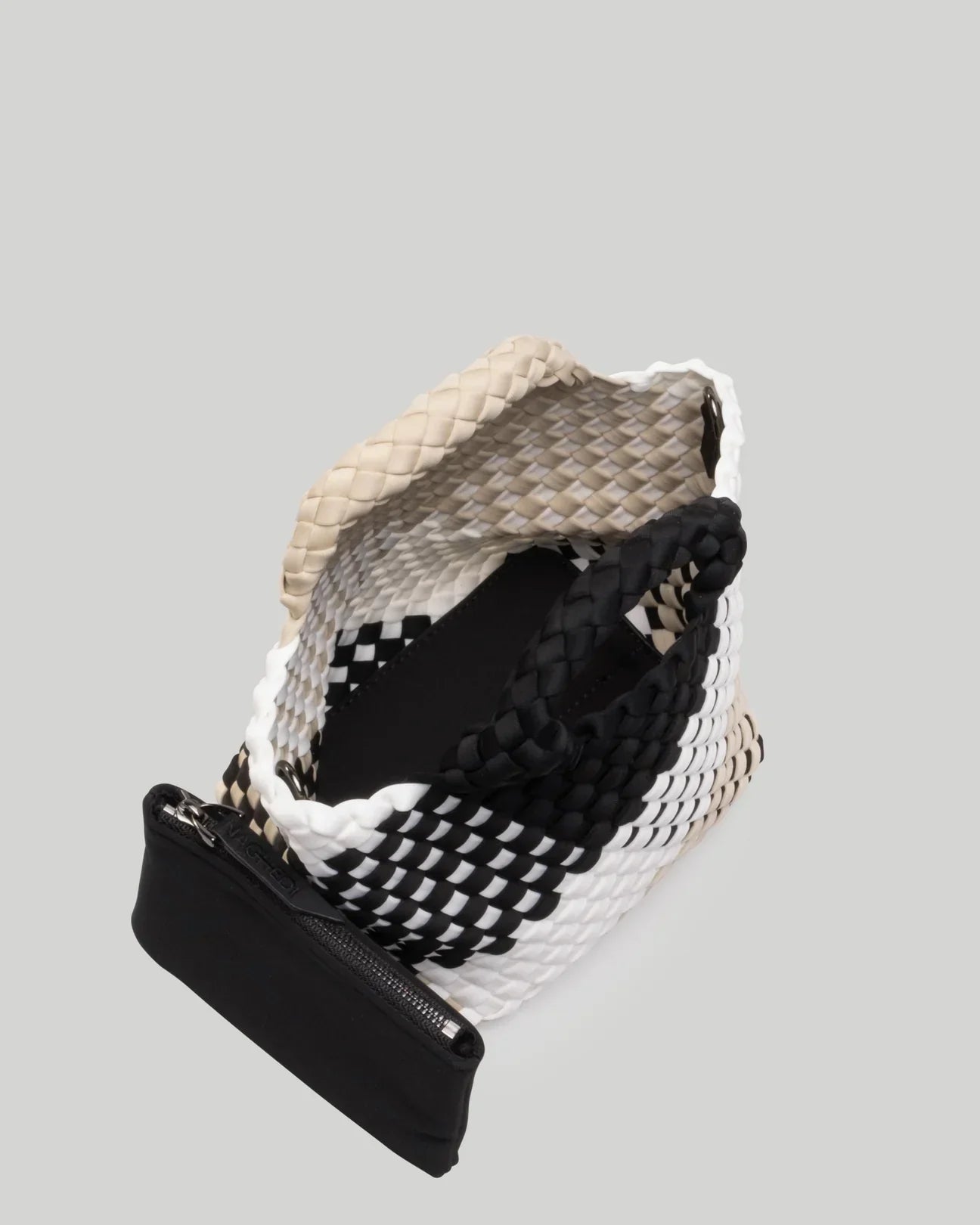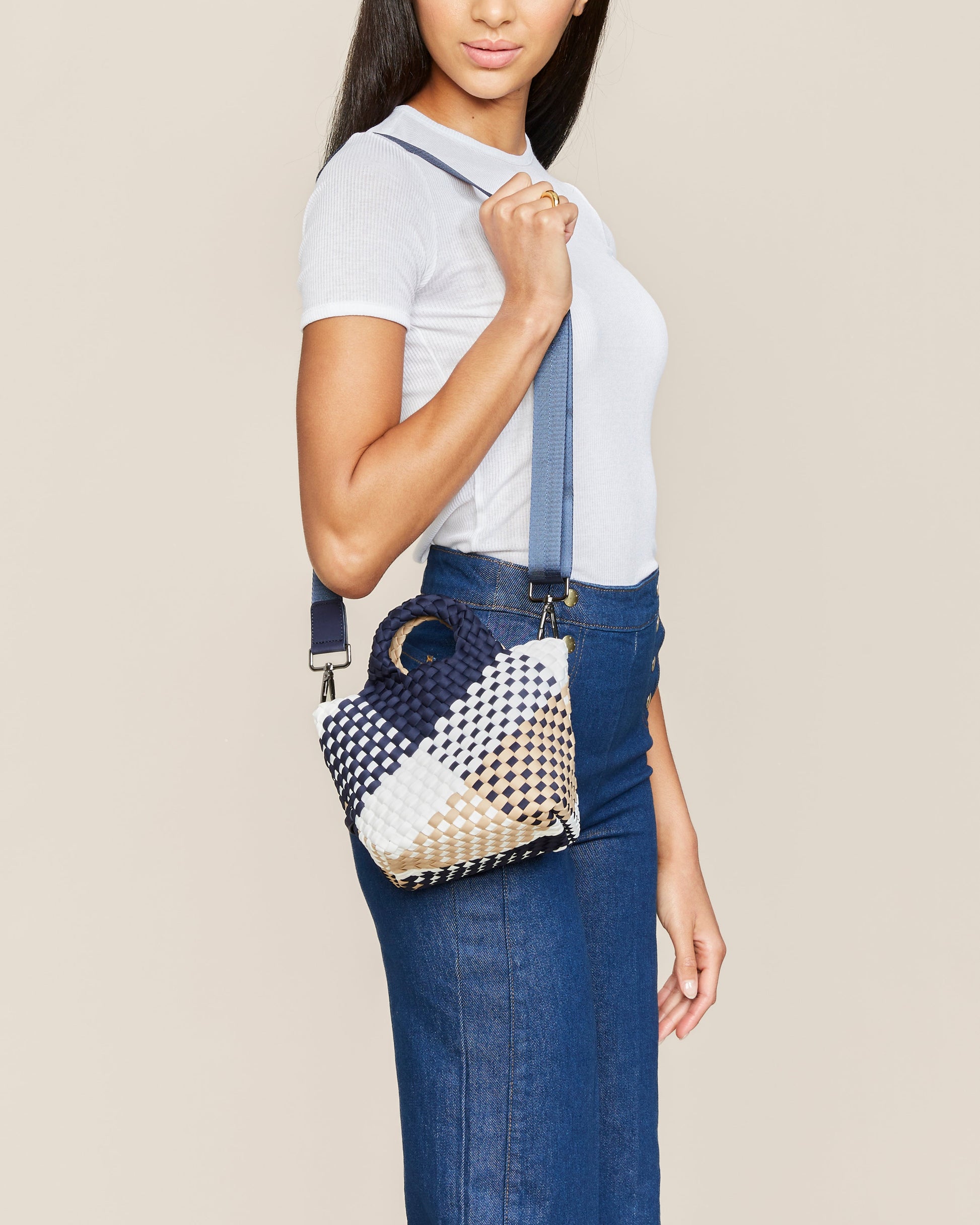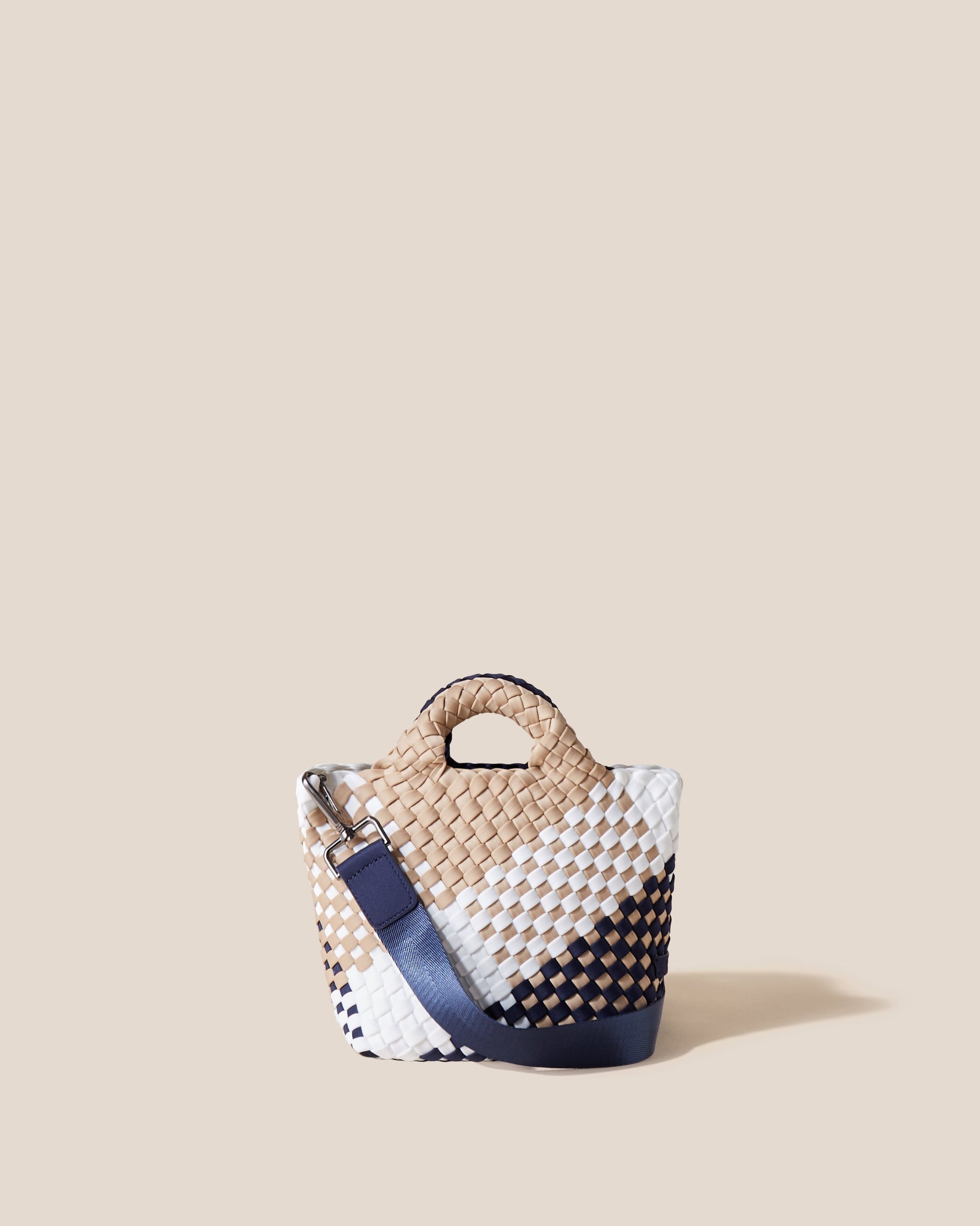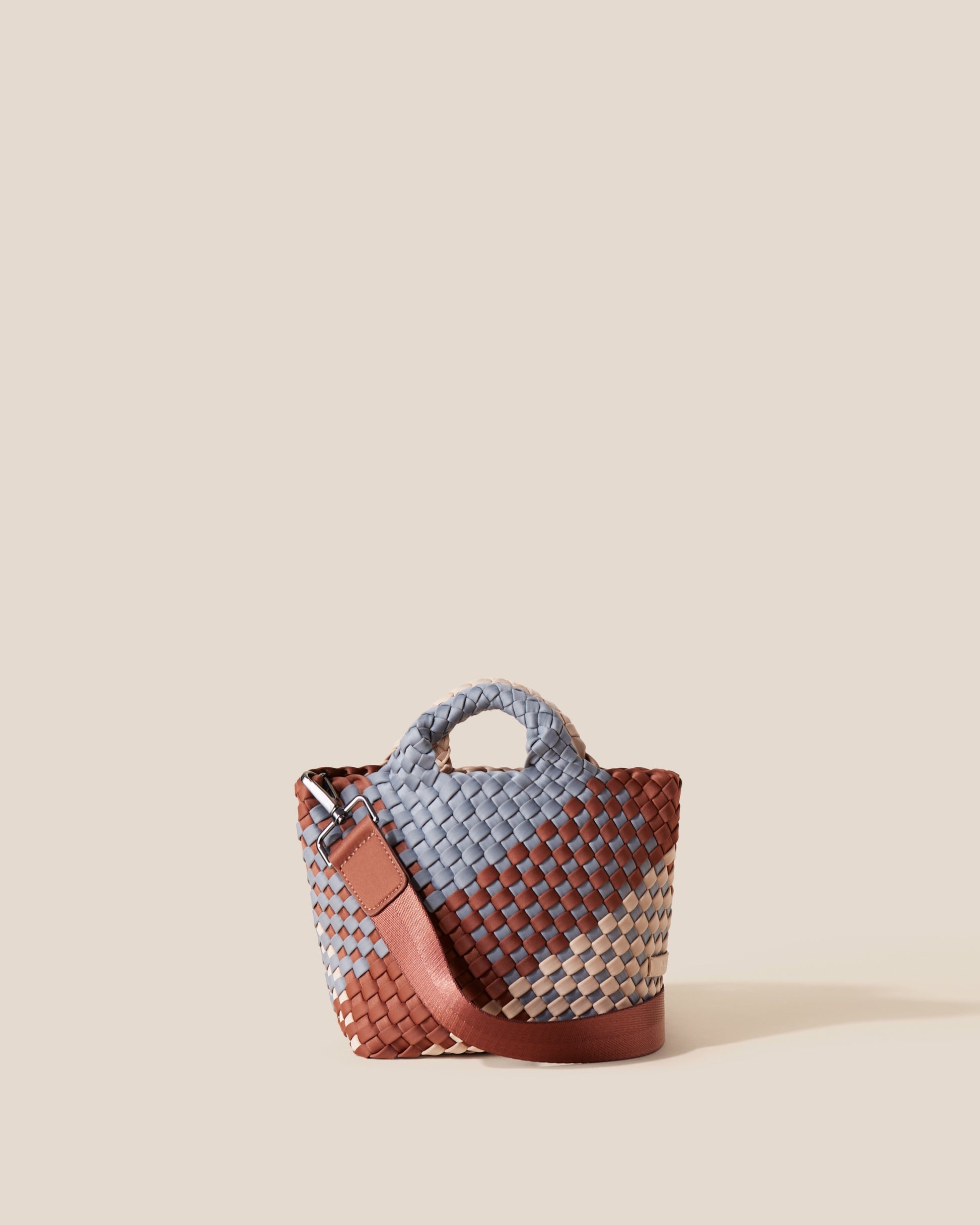 The signature St. Barths Tote has been reimagined again and this time; by a 6 year old. The latest "Petit" size has all the proportions of the classic shape and is perfect for traveling light, evenings out or as a matching tote for your mini-me. But don't be fooled, this bite-size bag can still fit plenty of your essentials comfortably! Crossbody strap and matching interior pouch included.