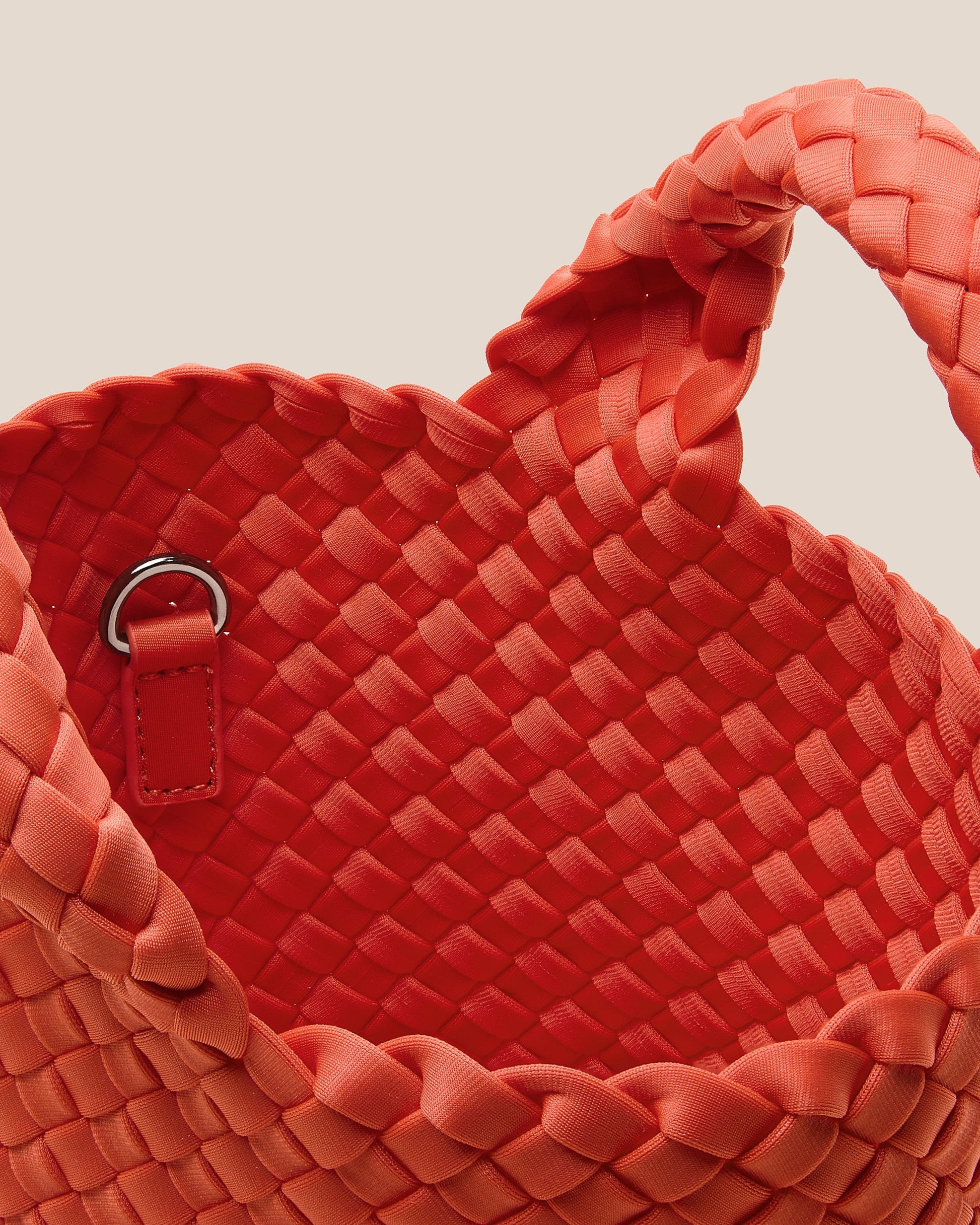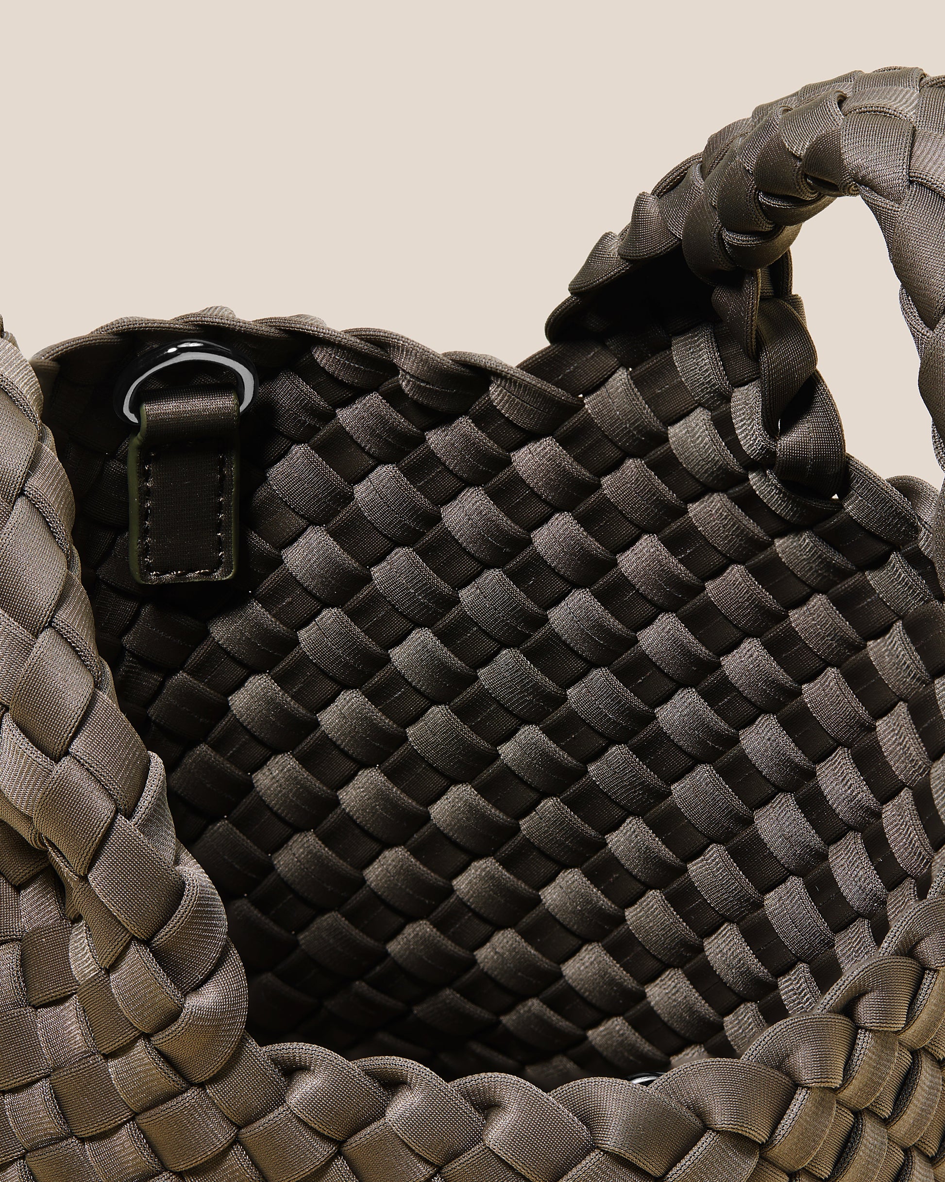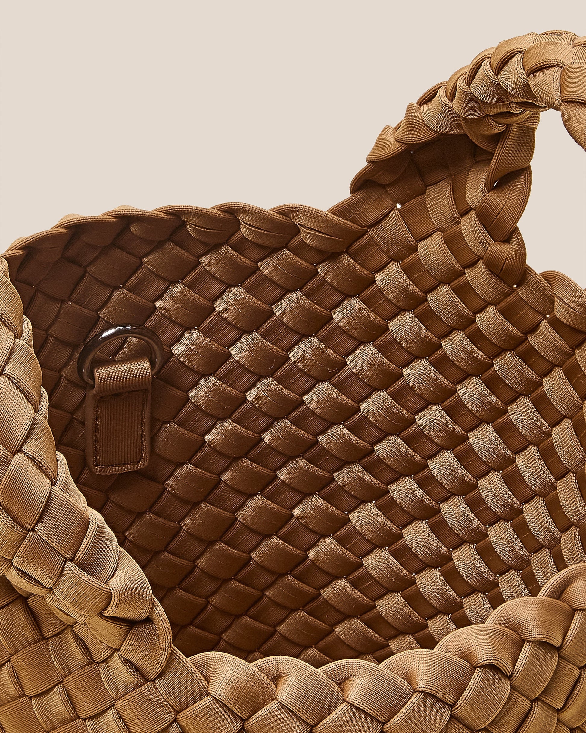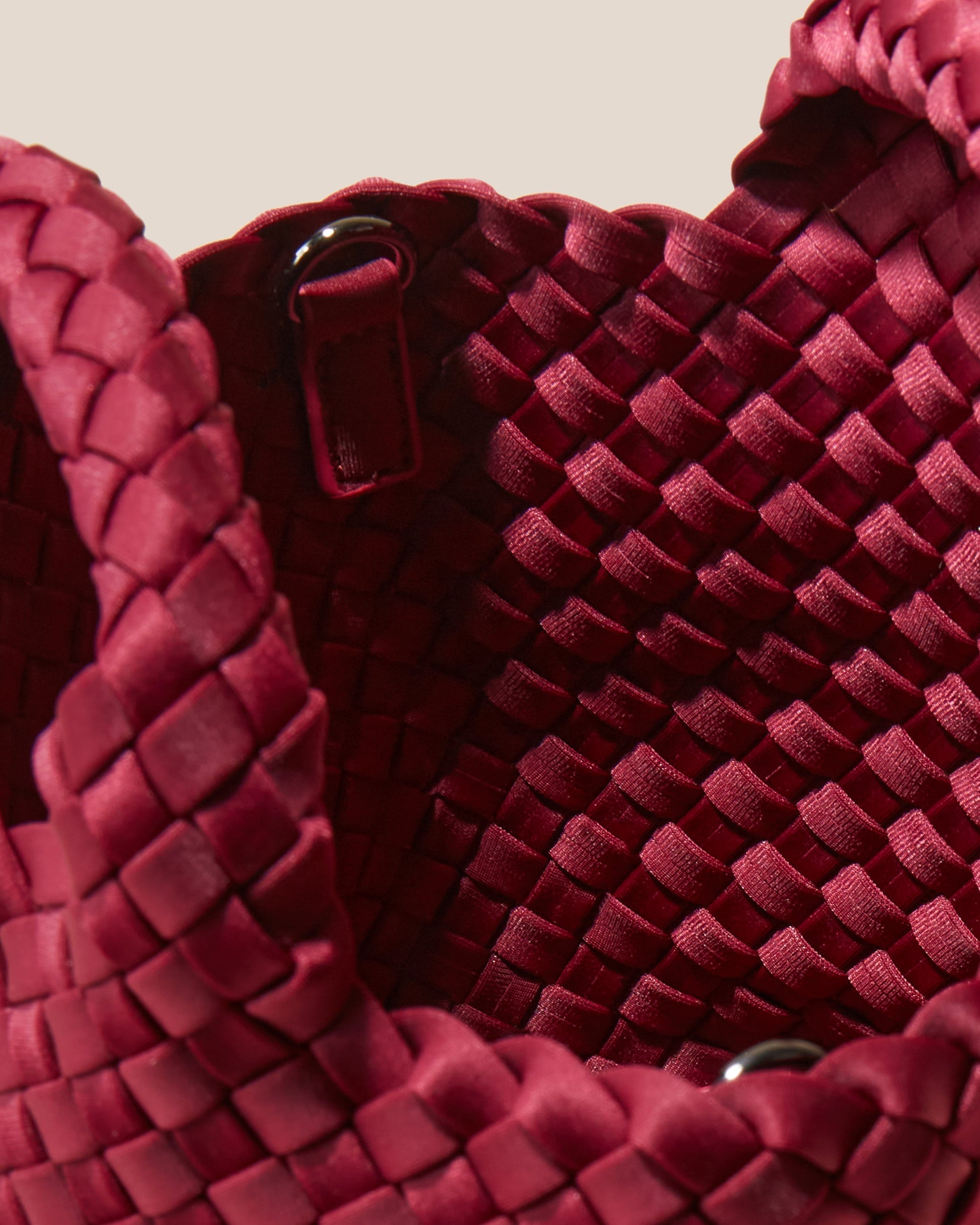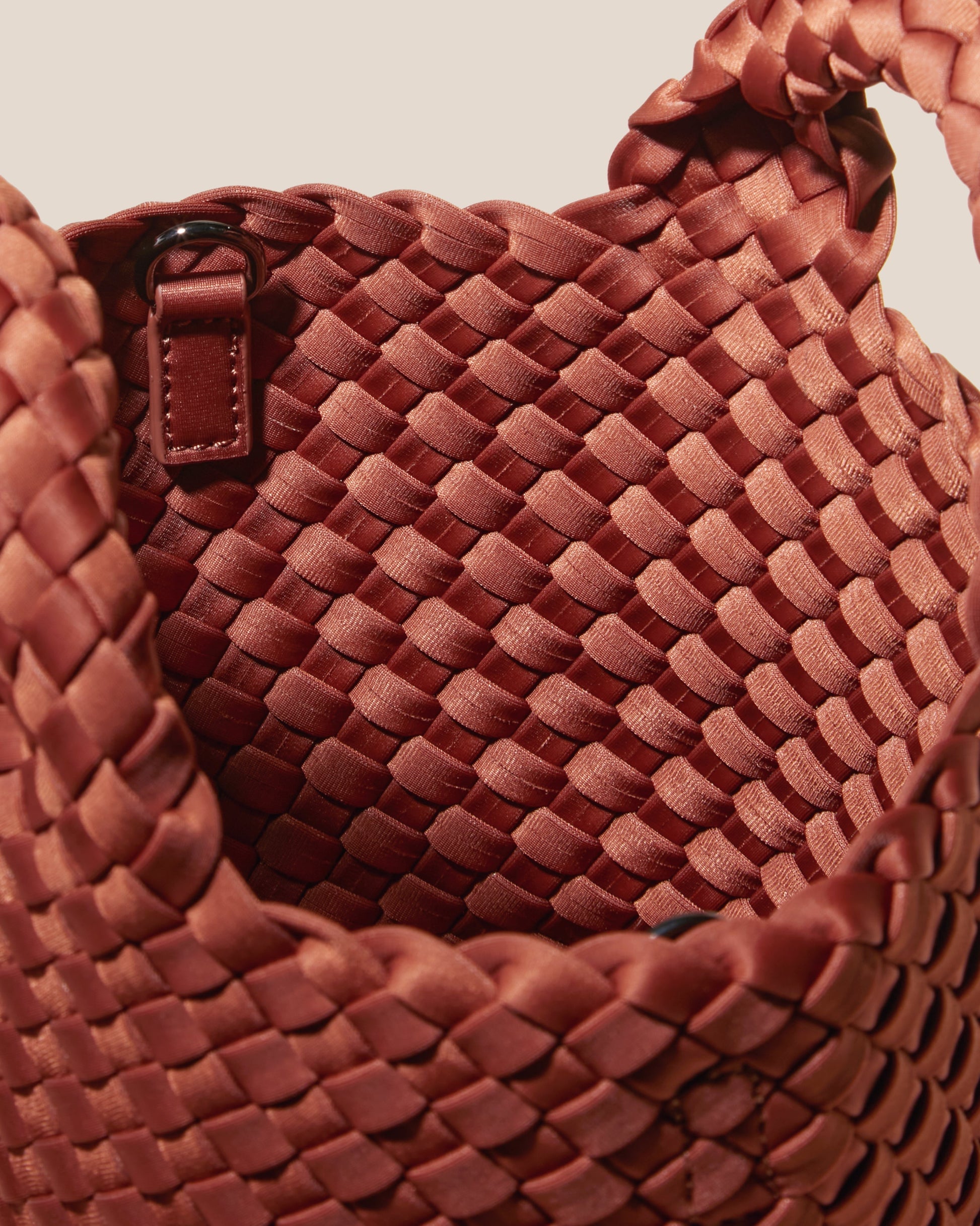Handwoven neoprene in dark chocolate brown. The St. Barths Petit Tote transitions seamlessly from daytime to evening, carrying all your essentials comfortably.