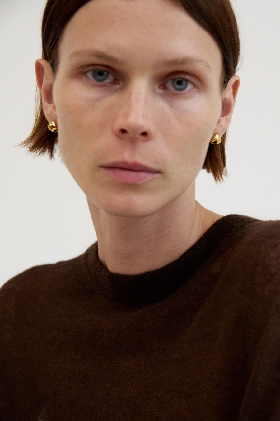 Bold, smooth curved hoops with a mirrored high shine in recycled 14k gold vermeil.