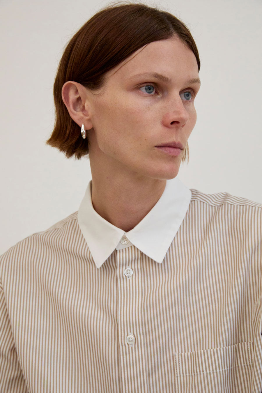 Uniquely shaped hoop that boasts subtle curves in recycled sterling silver. Half-hinged invisible clasp for a seamless appearance. Makes a great gift, too!