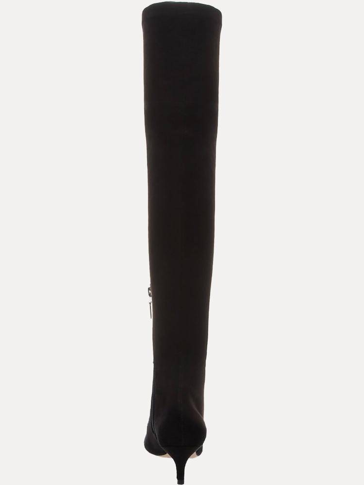 The perfect pair of knee boots in lux stretch with low kitten heel.