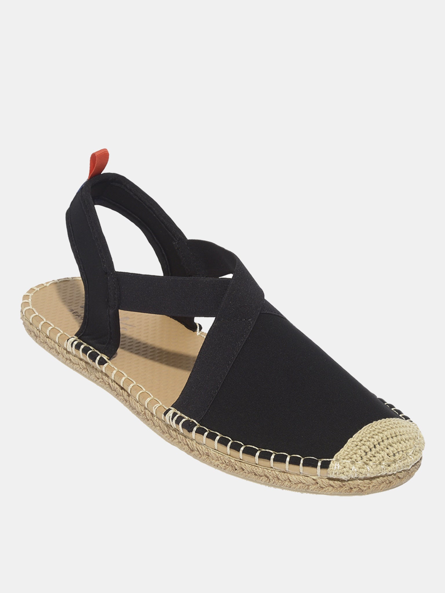 A classic espadrille open sandal design created with a water-friendly neoprene upper and protective rubber deck shoe sole.