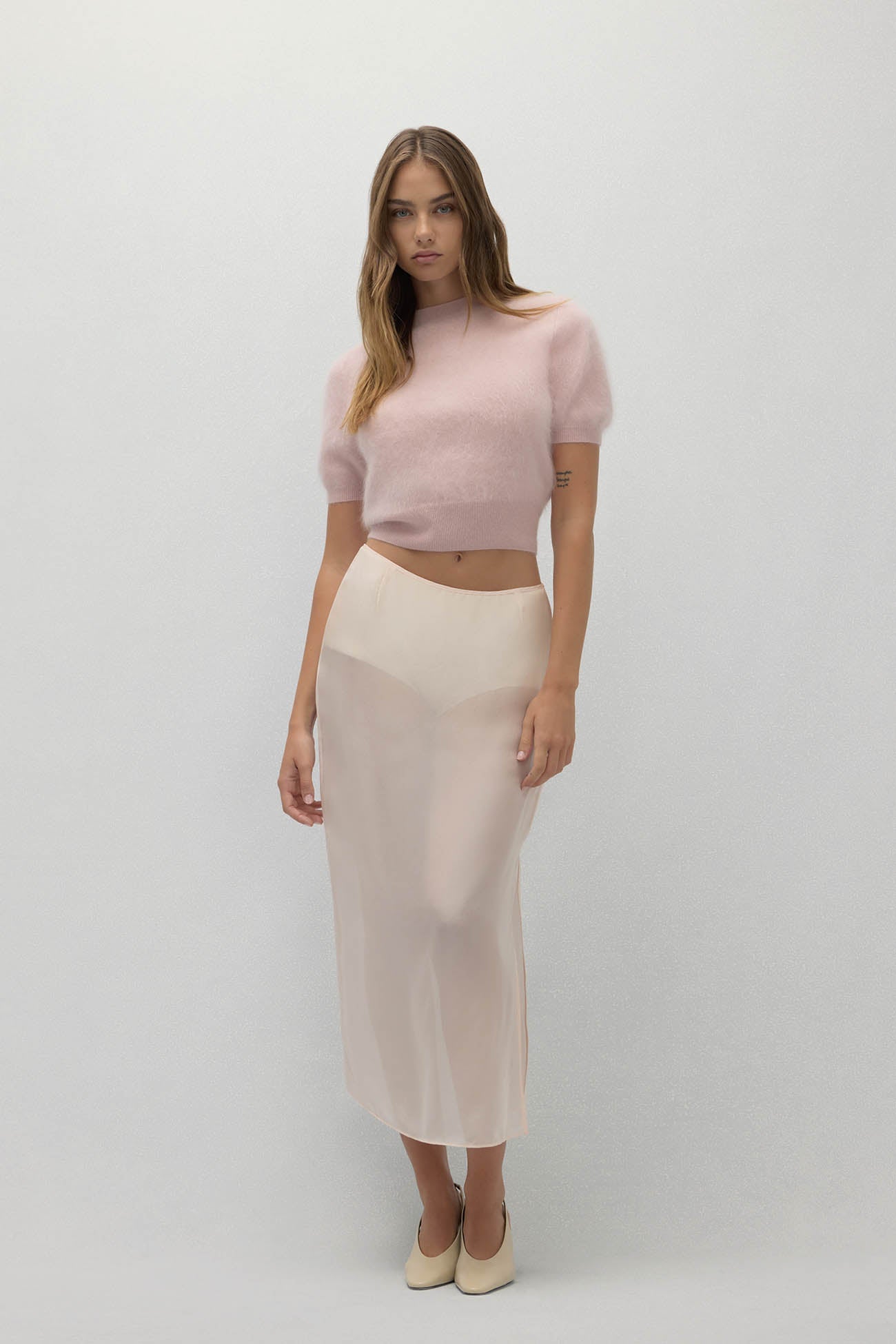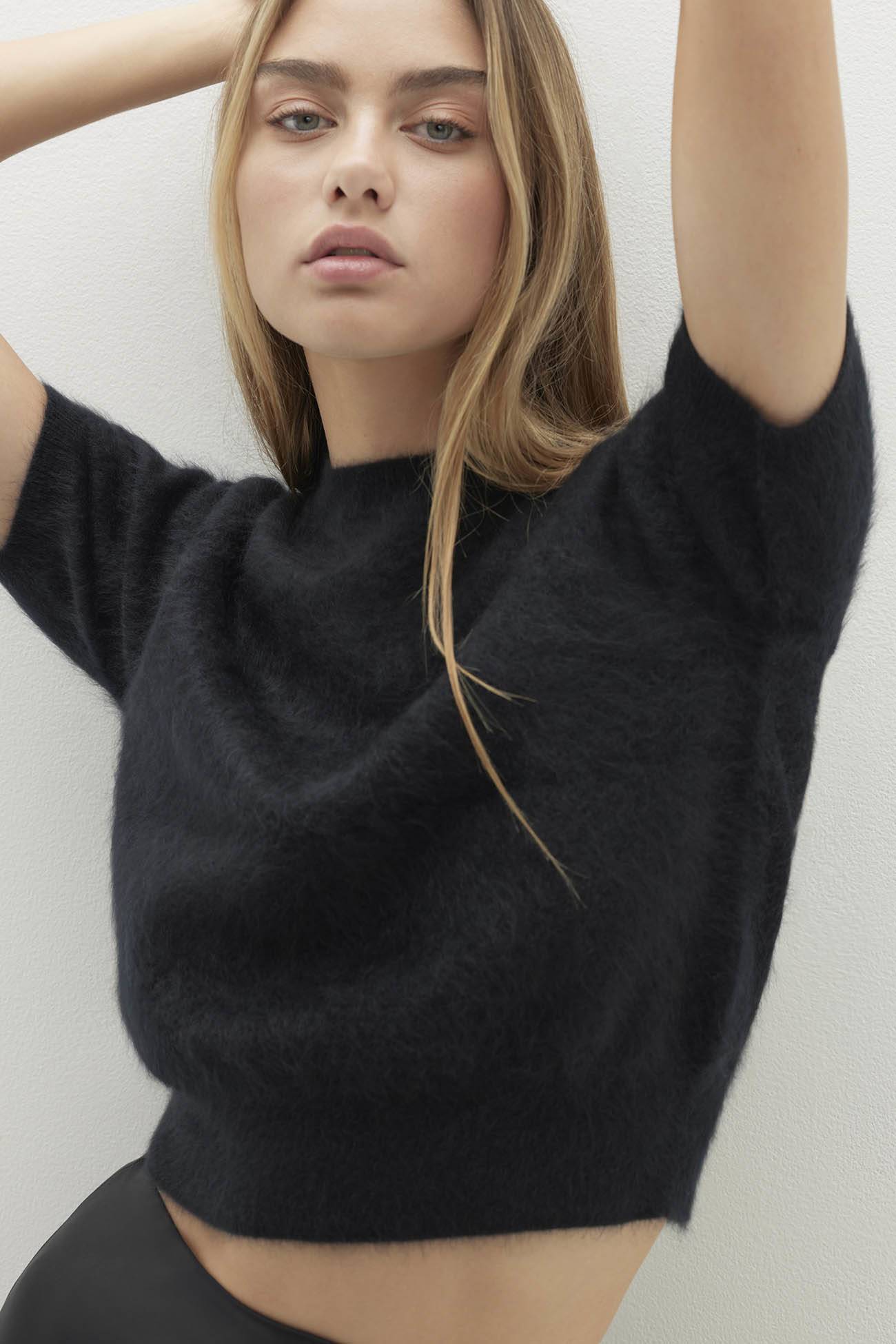 - 156 grams of 100% brushed cashmere in 12-gauge knit