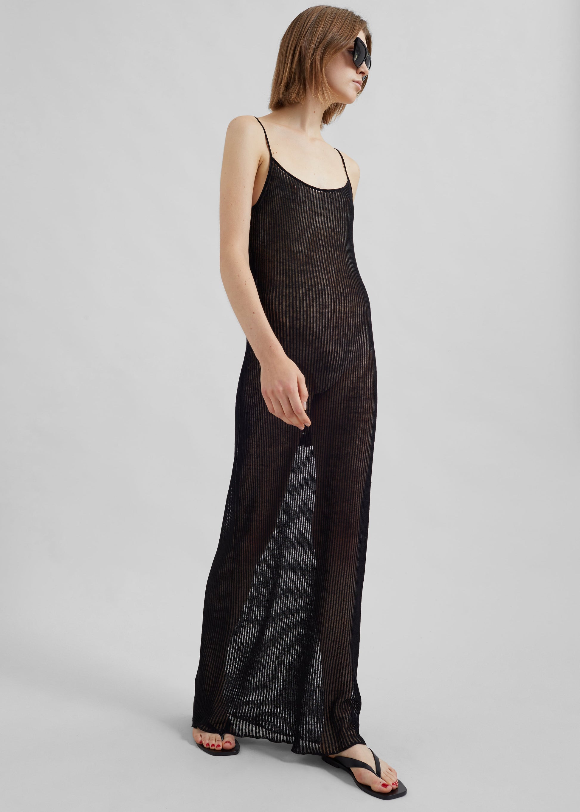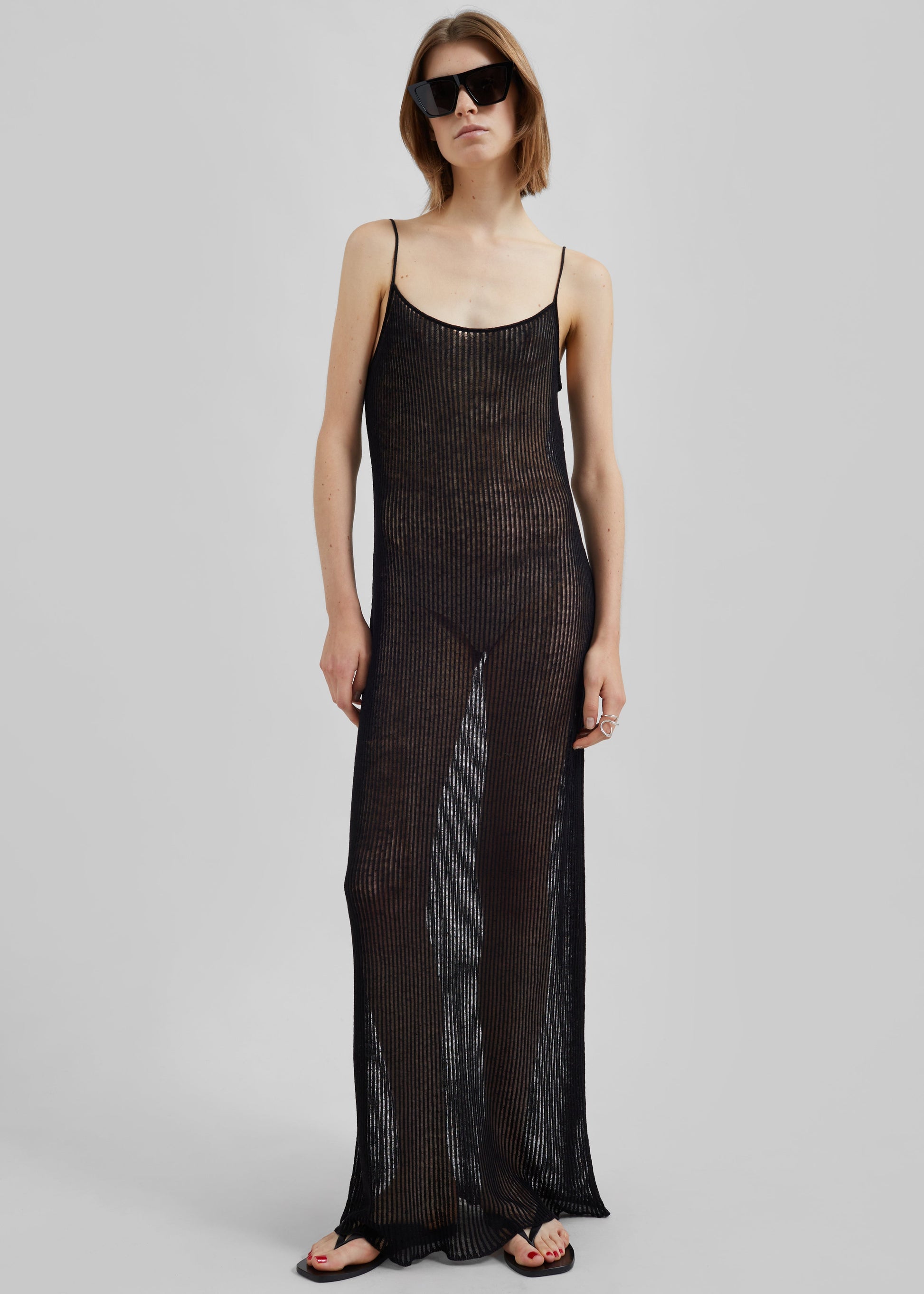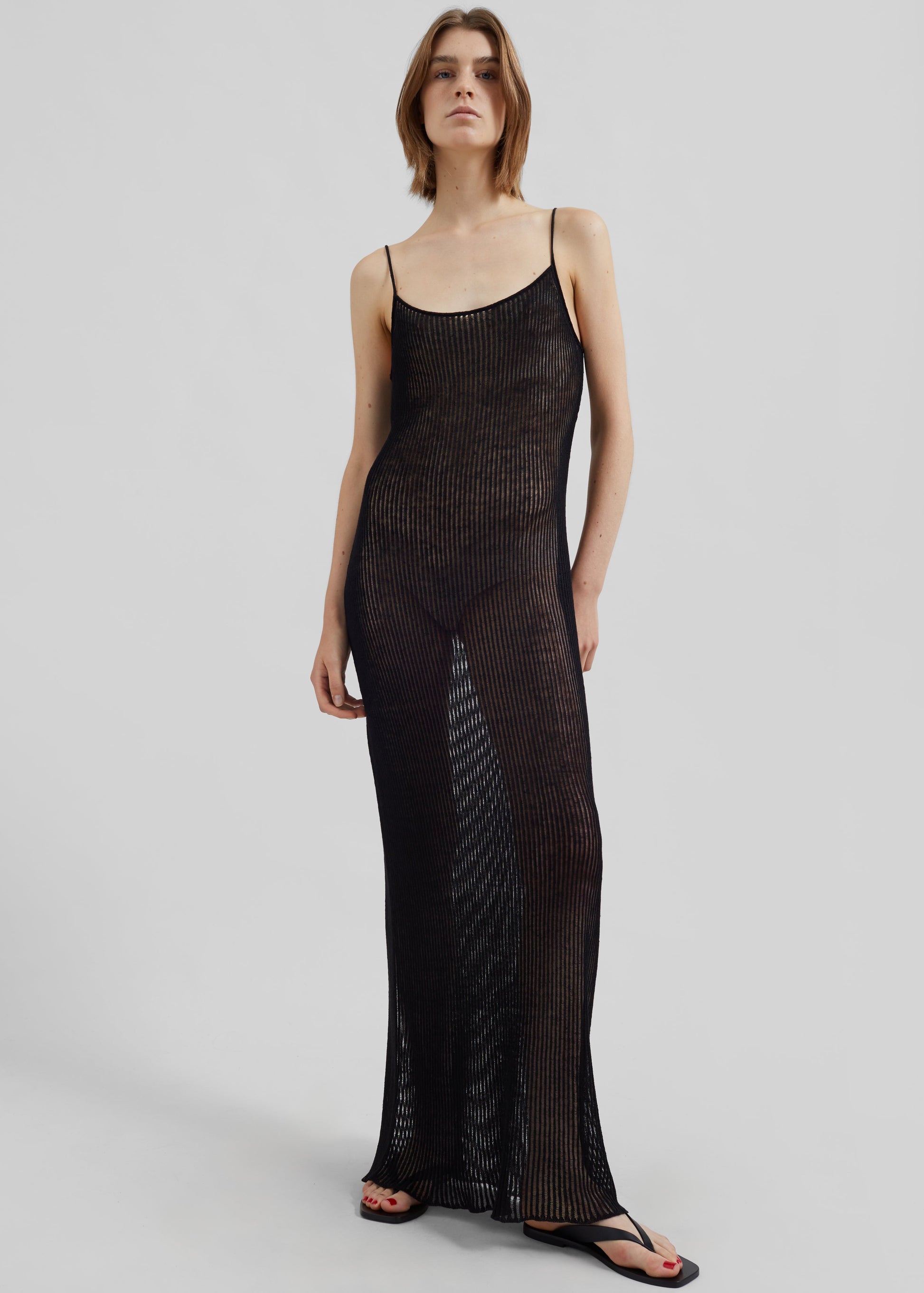 Sienna Semi Sheer Ribbed Dress - Black