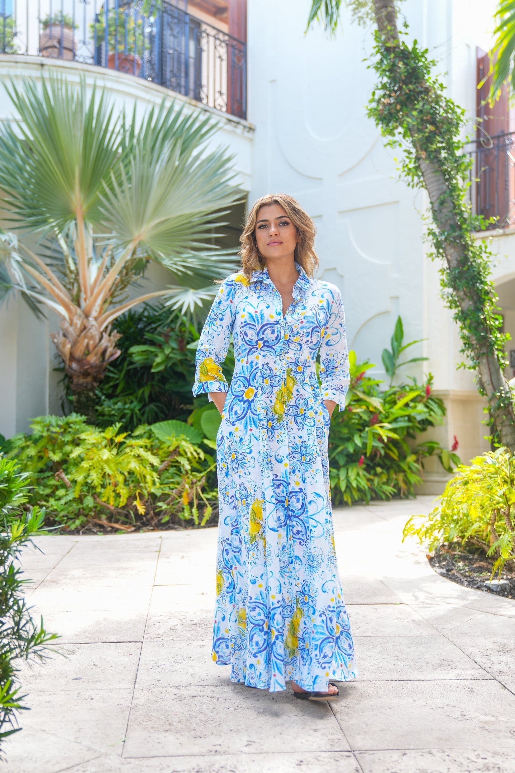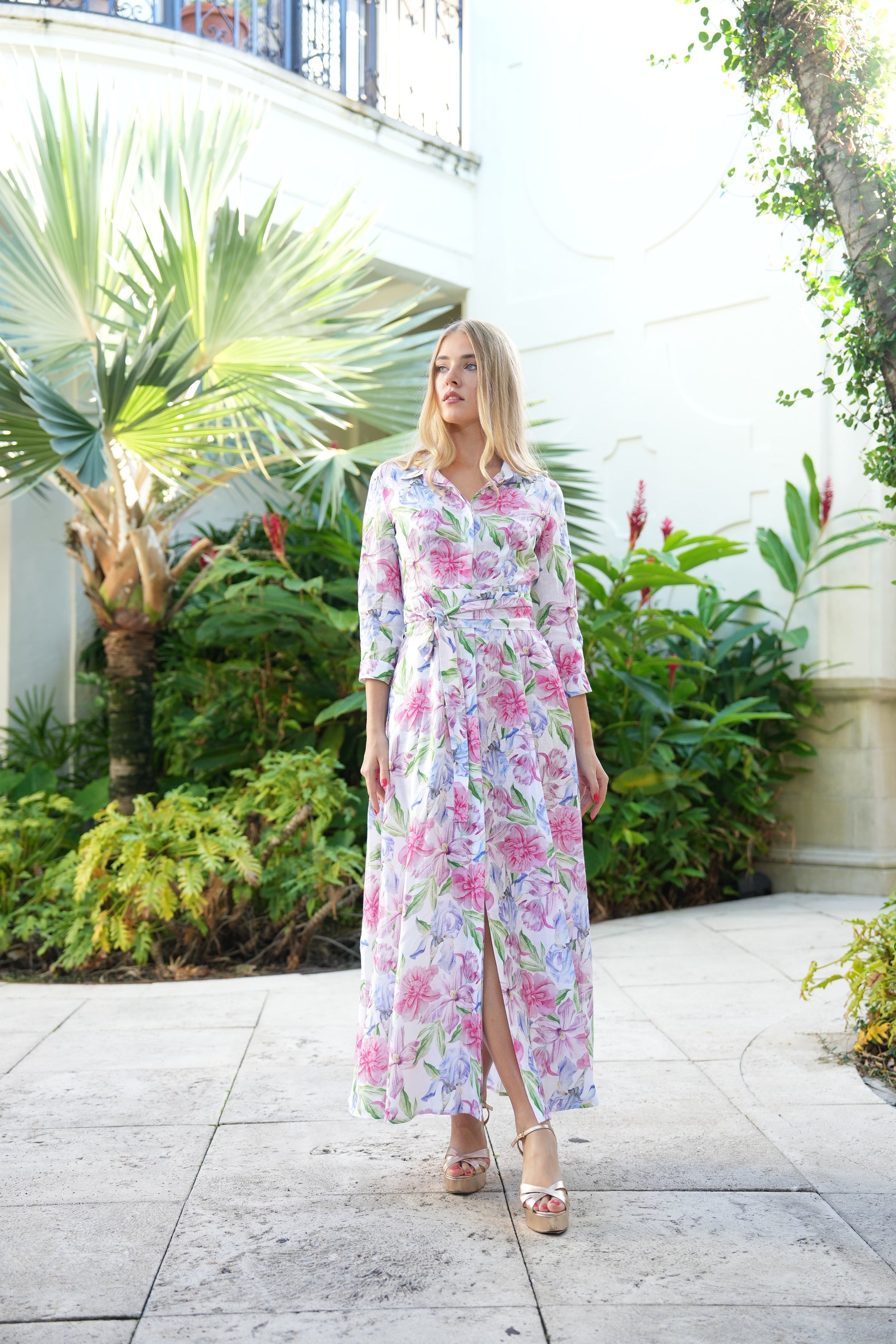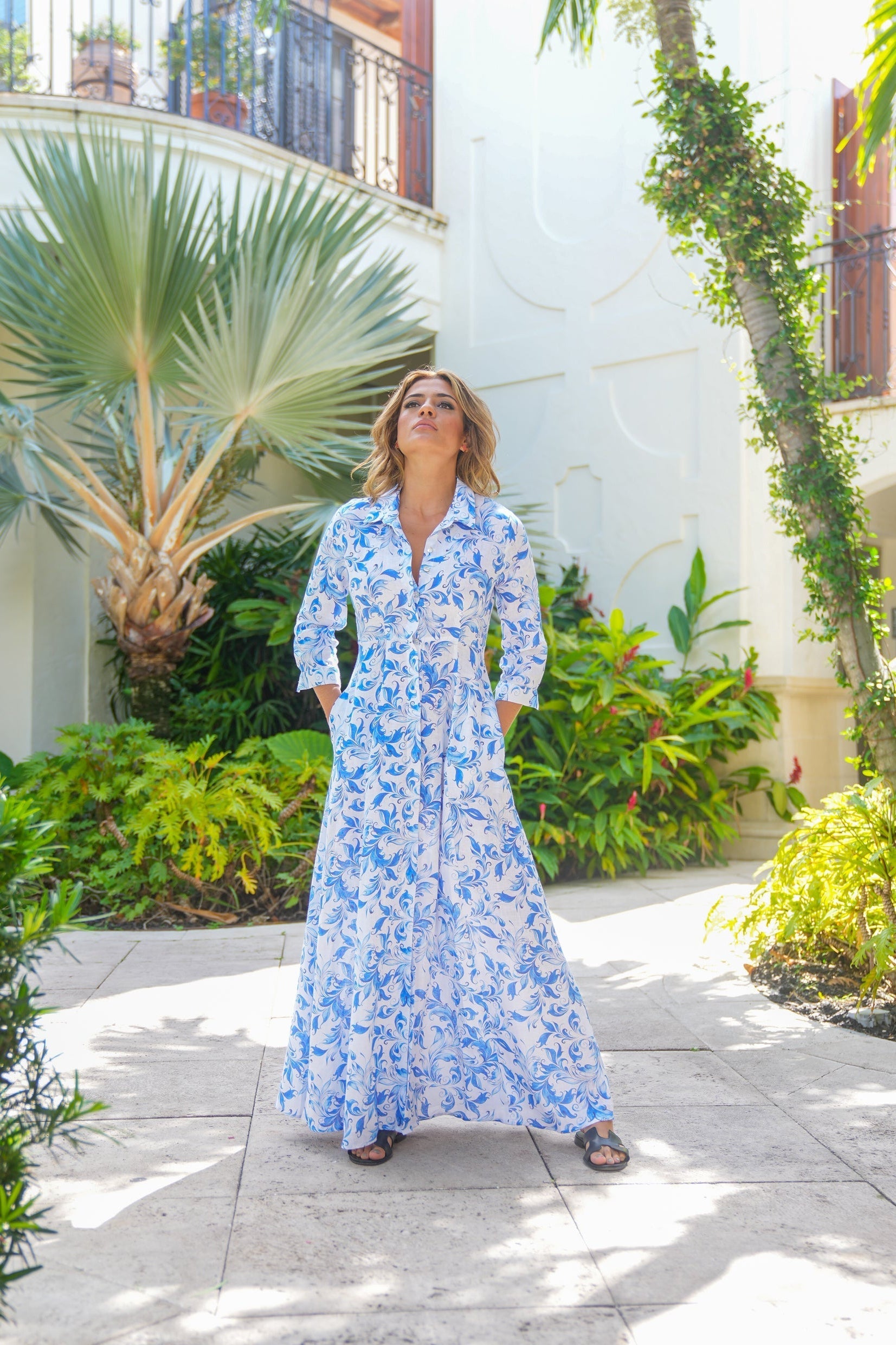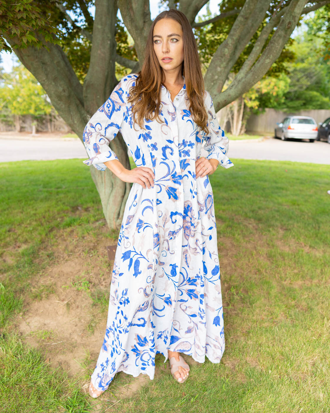 Our shirt dress has everything you ever wanted in a full- length, button-up dress. A long, lean, and lovely silhouette that will elongate your torso. Enjoy the versatility of this dress by wearing it as a dress or open as a duster. Wear it casually by rolling up the sleeves or dress it up with one of our leather rope belts for a perfect resort chic look.