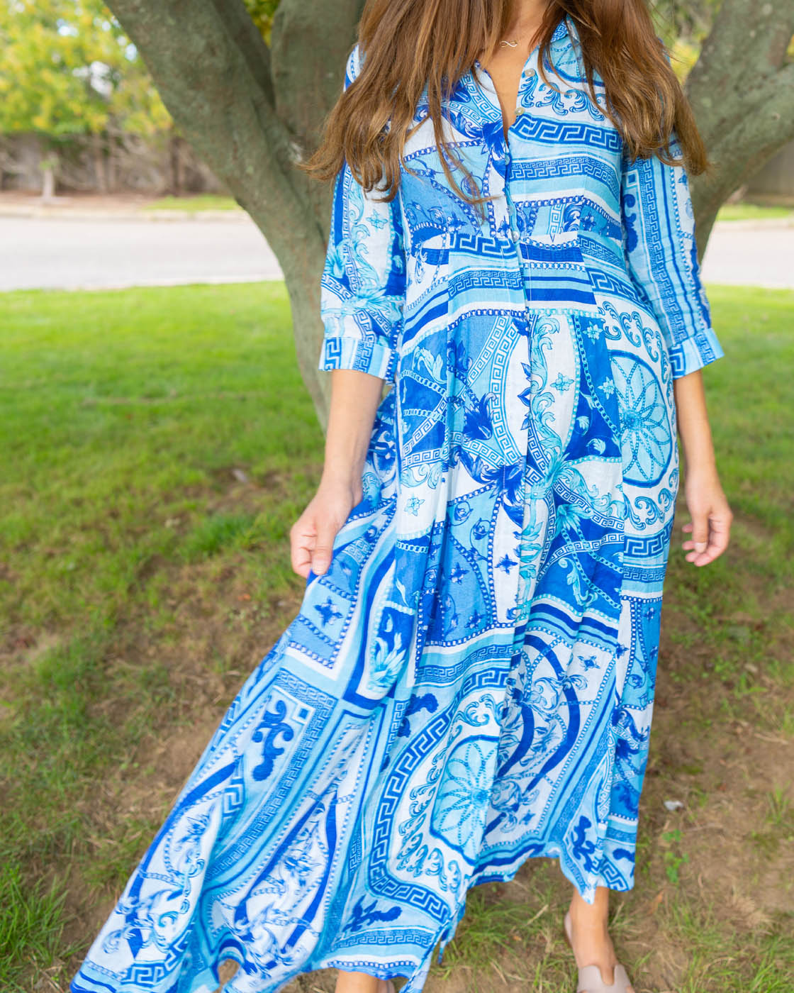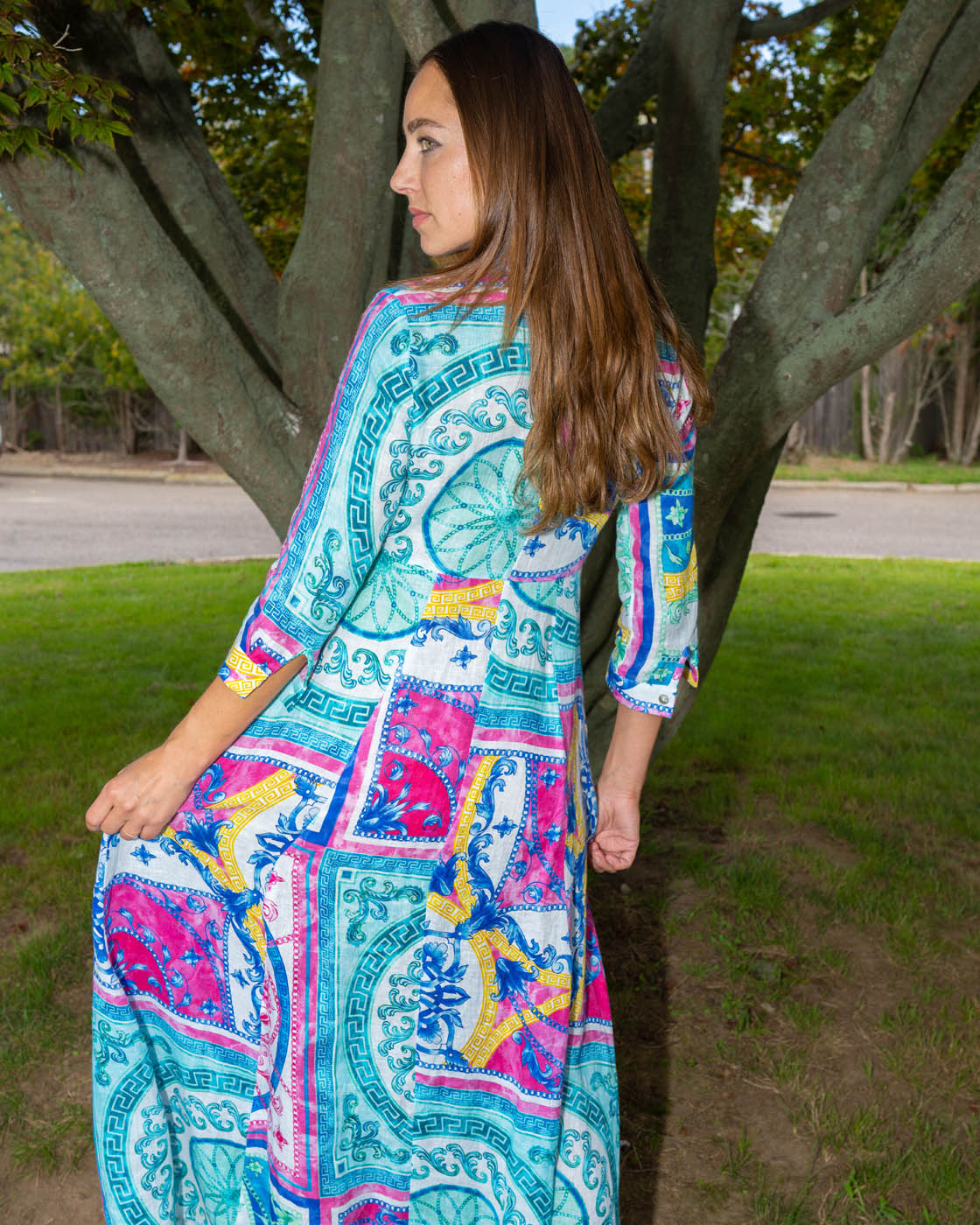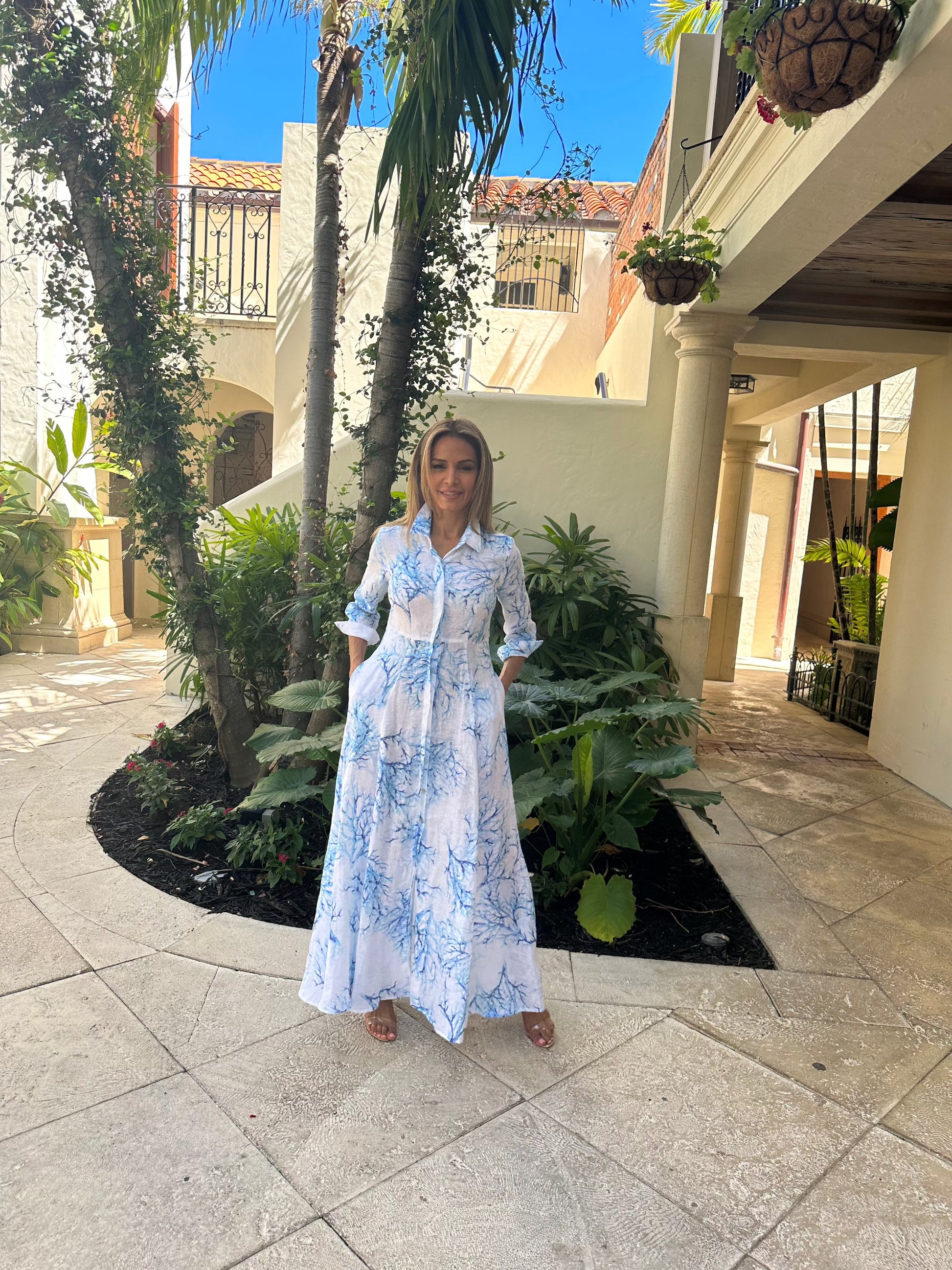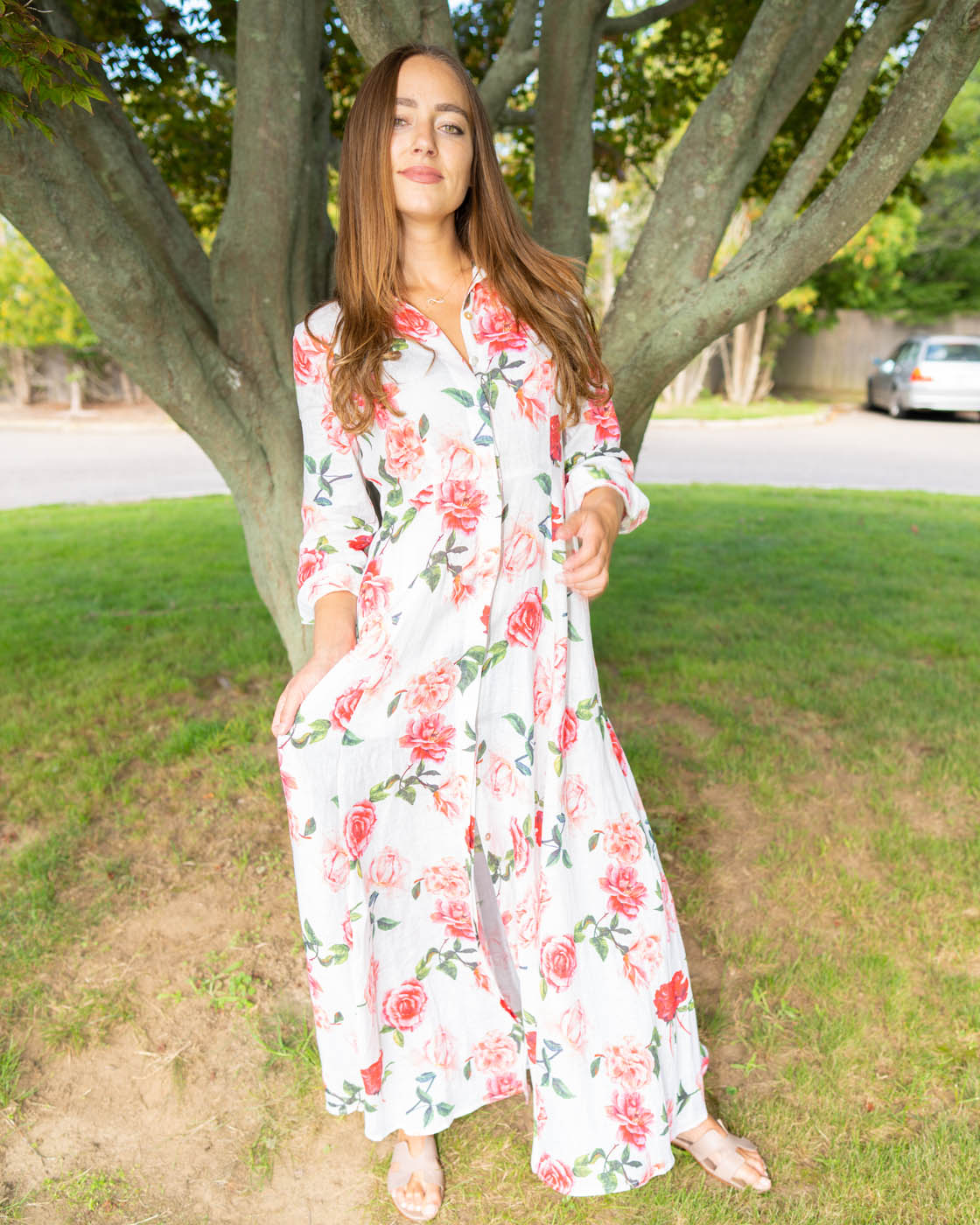 Our shirt dress has everything you ever wanted in a full- length, button-up dress. A long, lean, and lovely silhouette that will elongate your torso. Enjoy the versatility of this dress by wearing it as a dress or open as a duster. Wear it casually by rolling up the sleeves or dress it up with one of our leather rope belts for a perfect resort chic look.