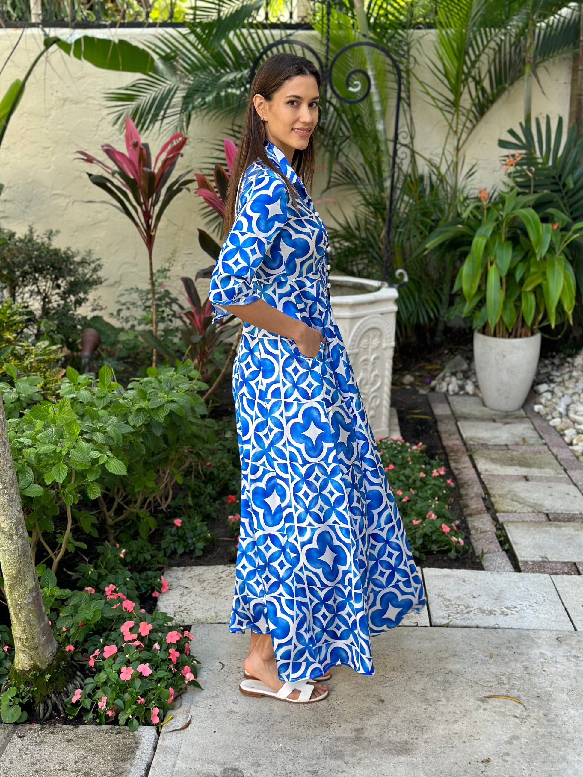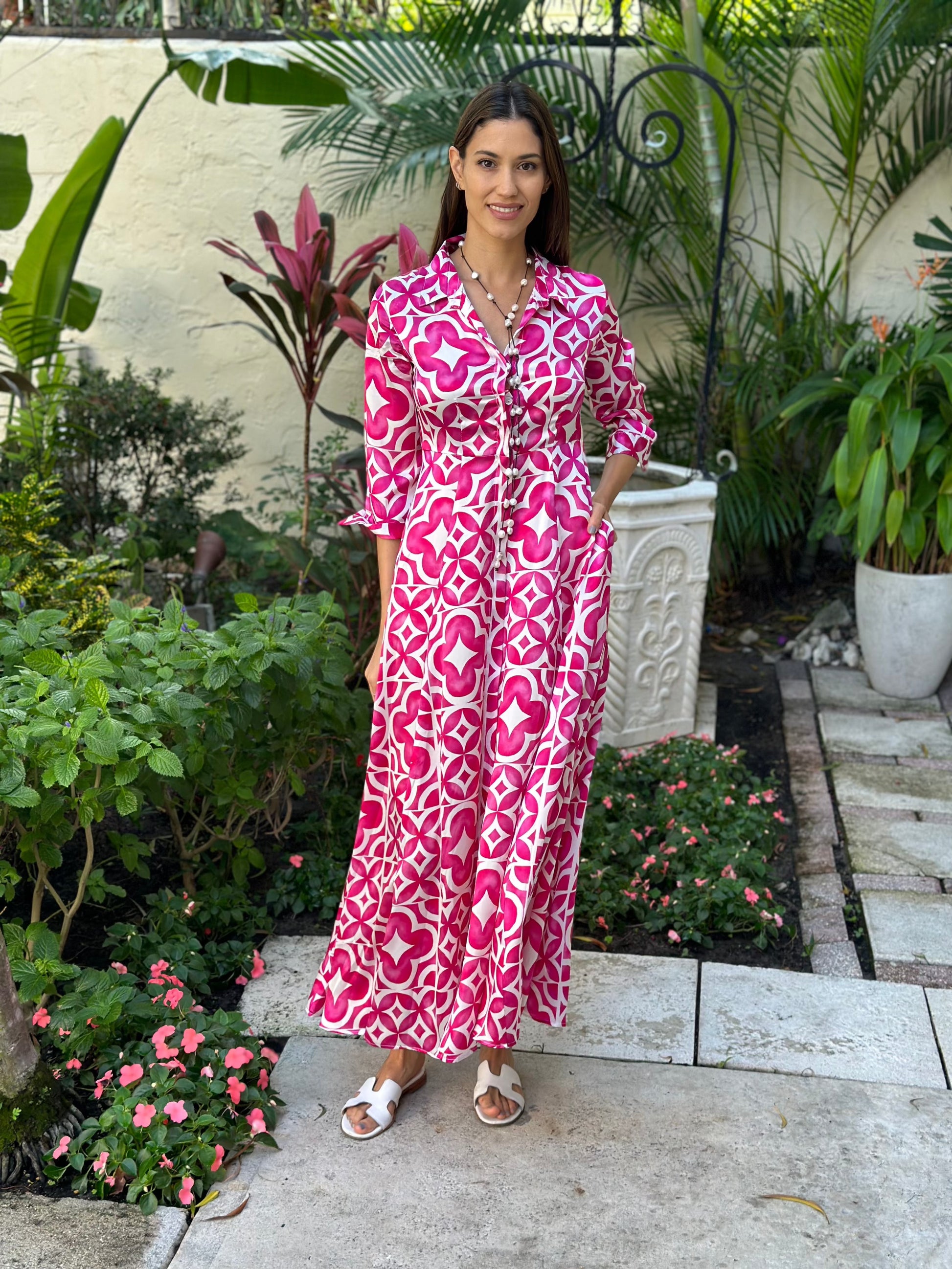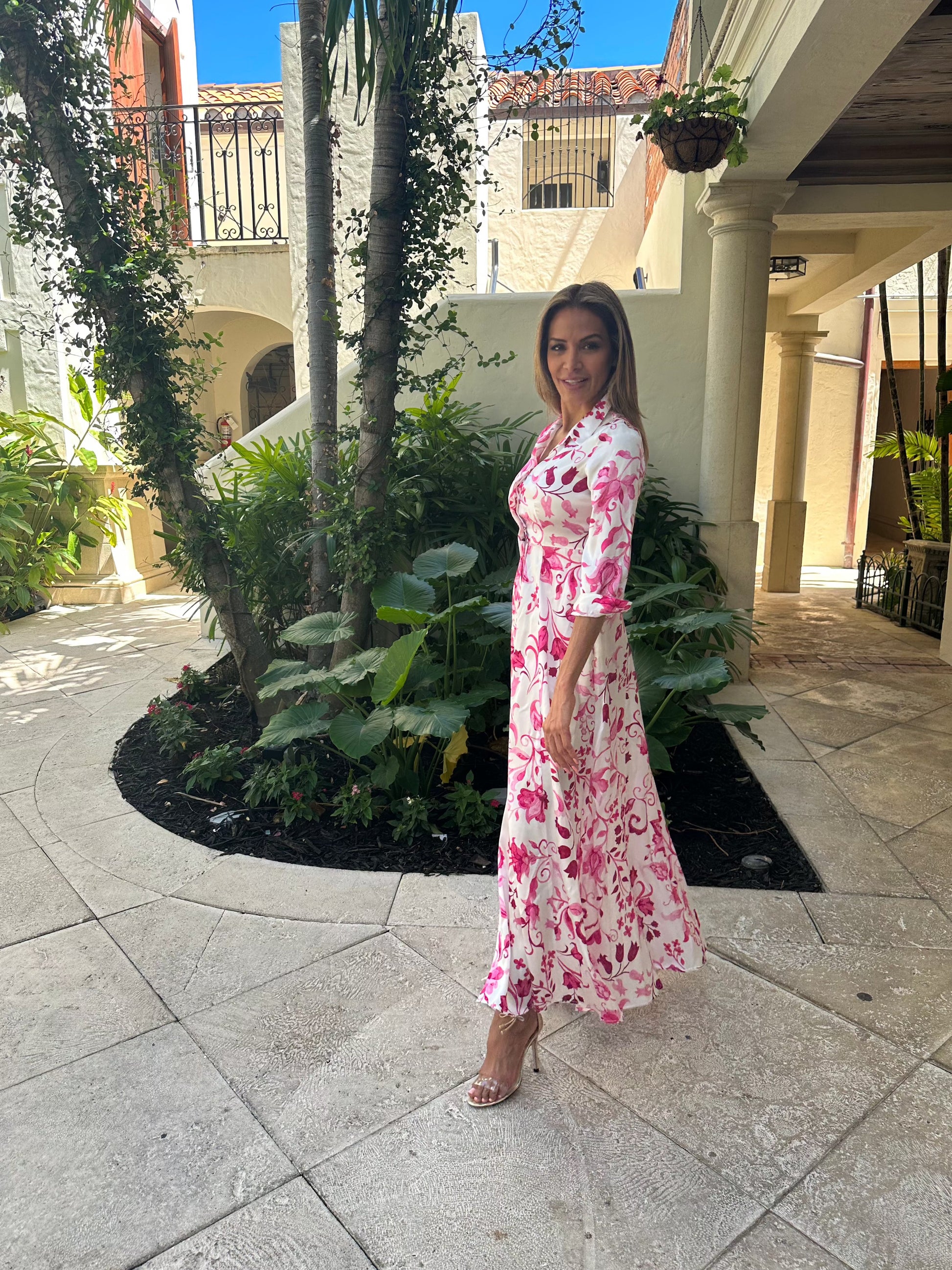 The spolverino silk dress pairs well with our schutz Altina or Josseana leather sandals.