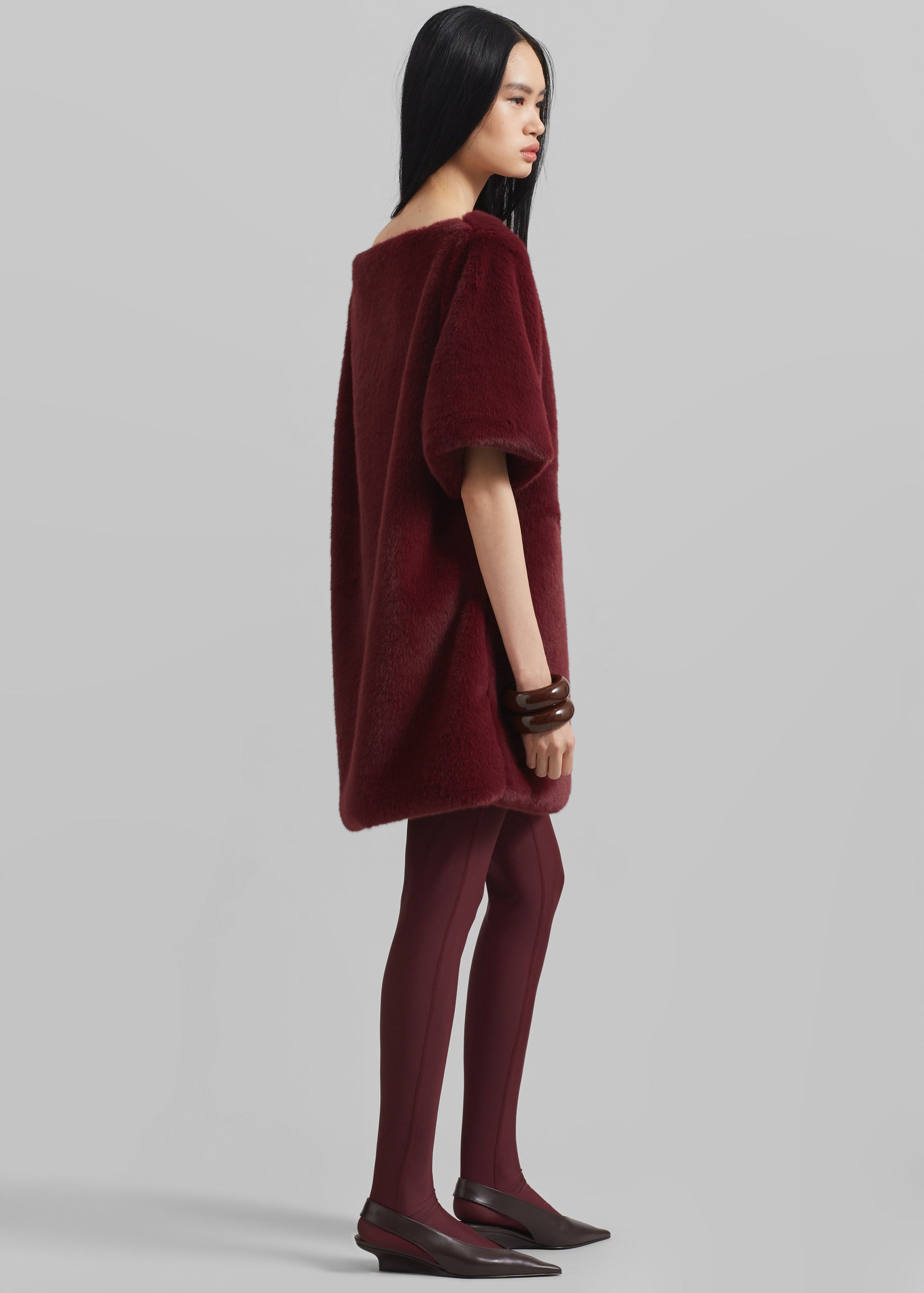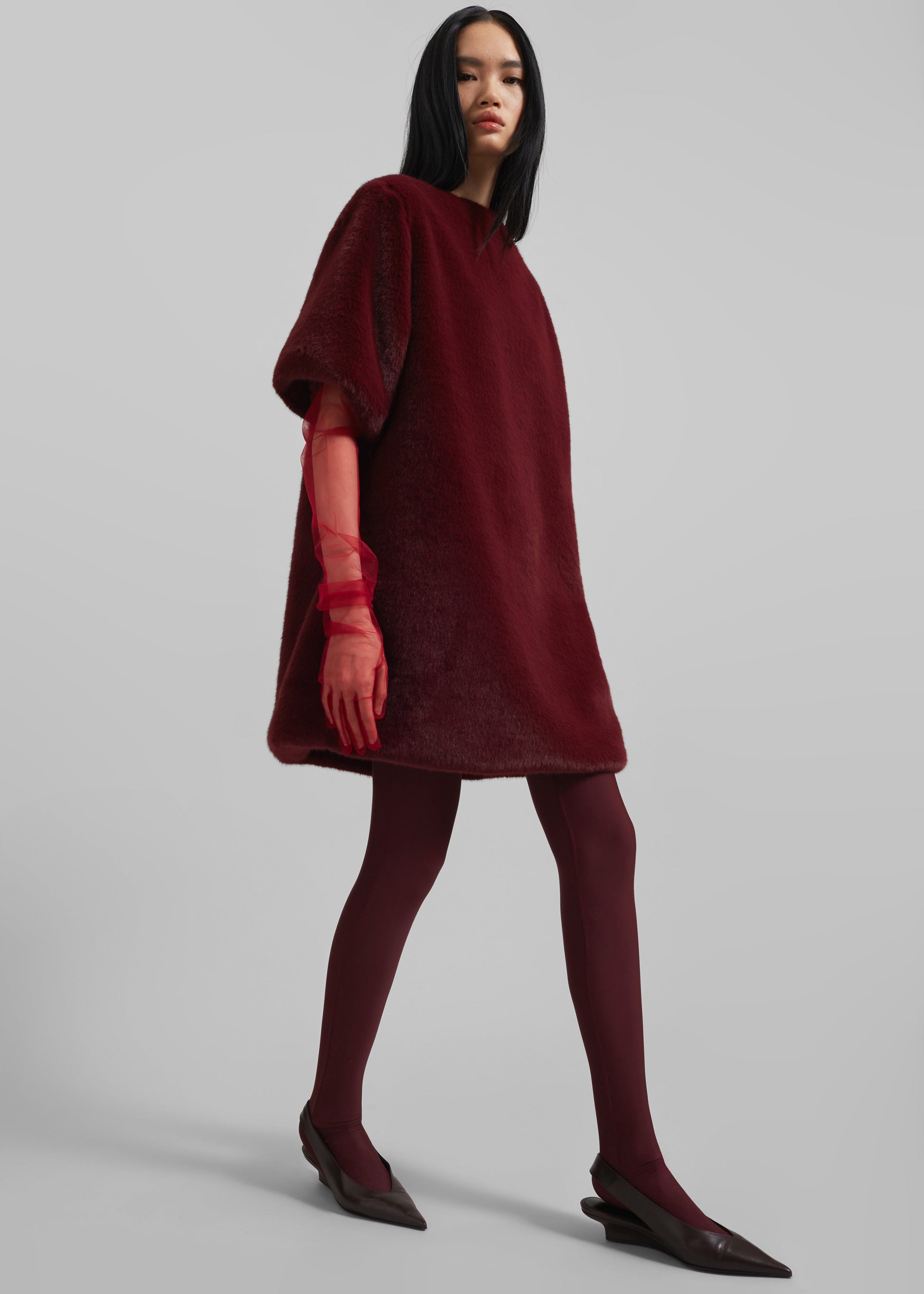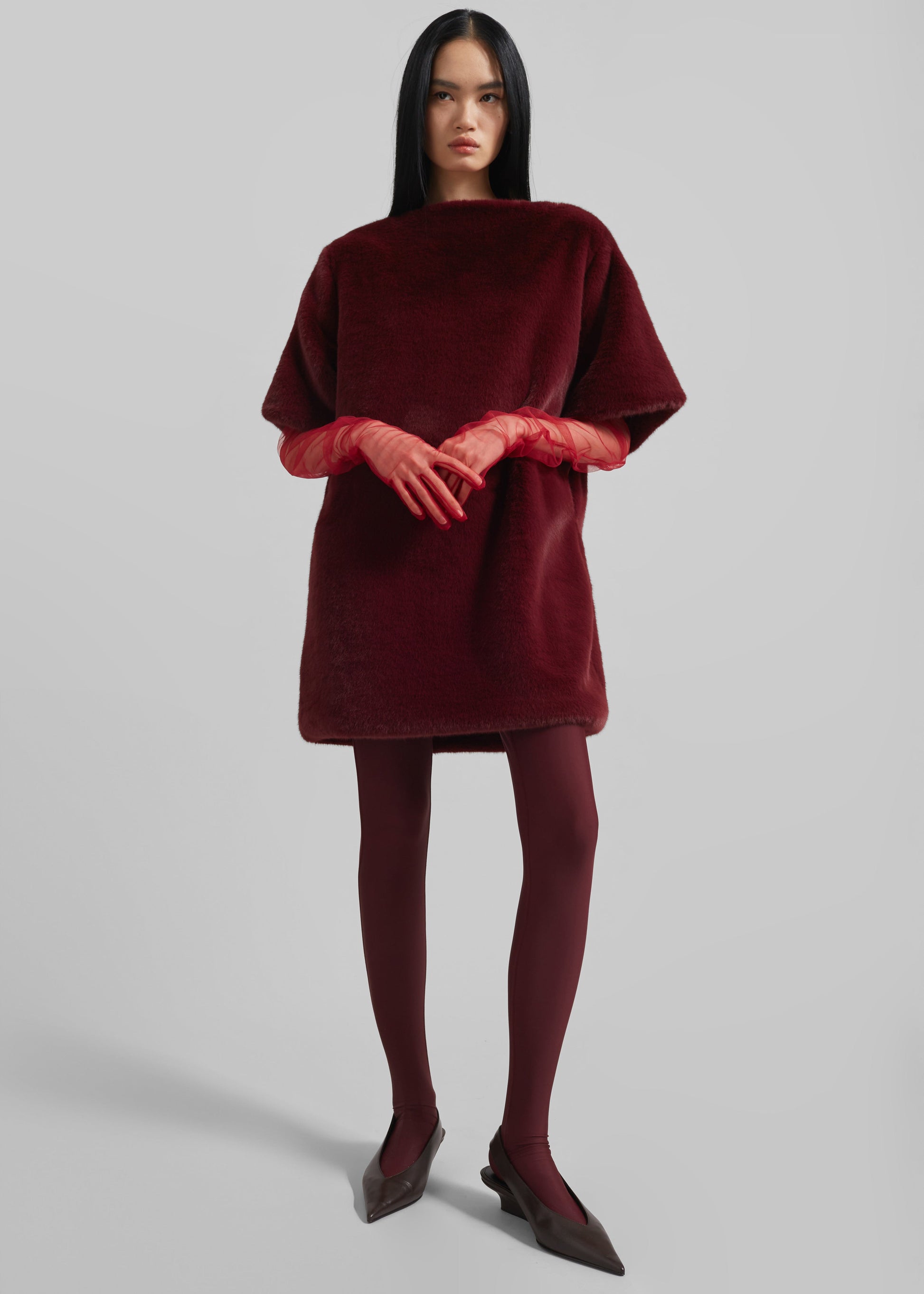 Stauben Faux Fur Mini Dress - Burgundy