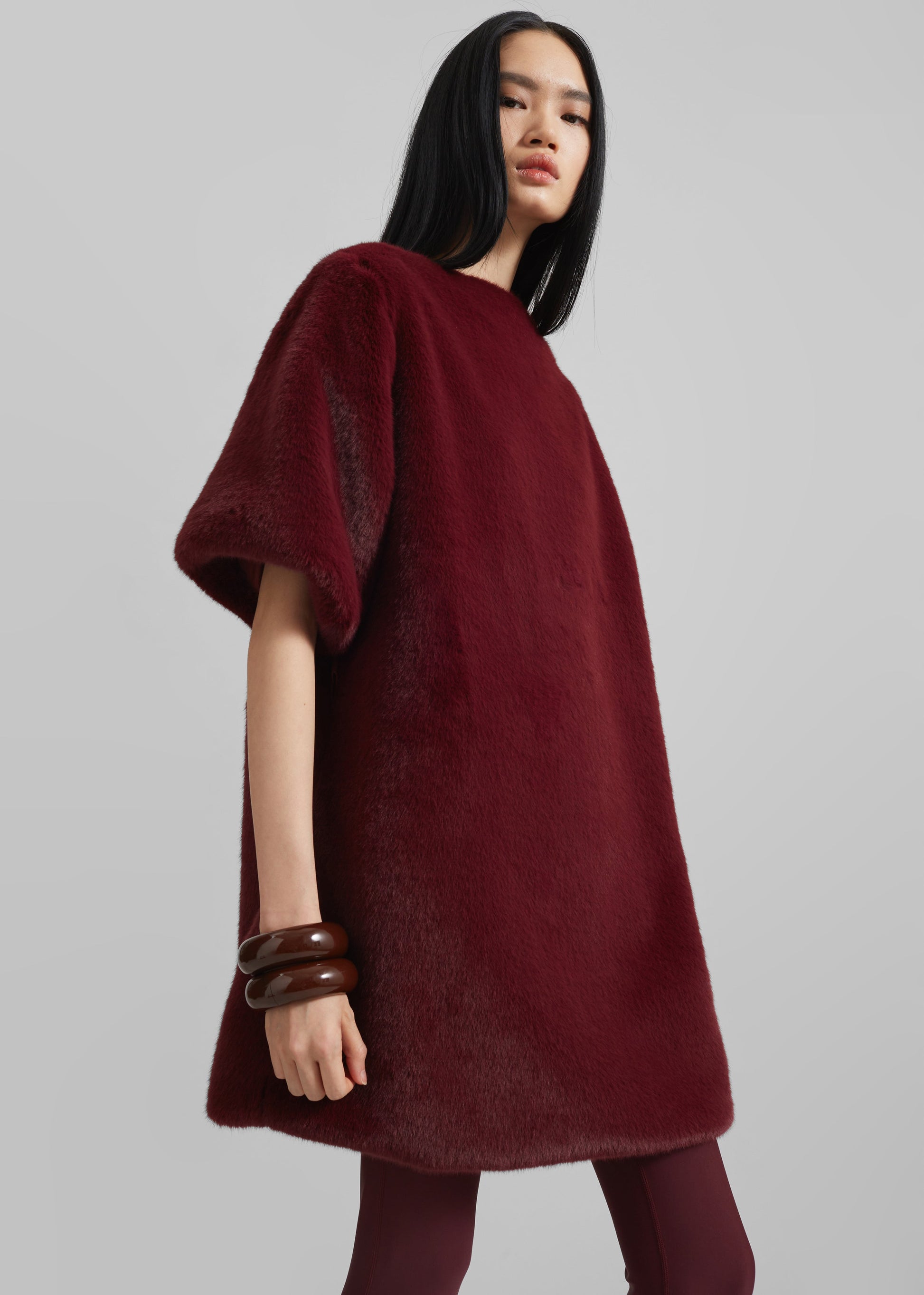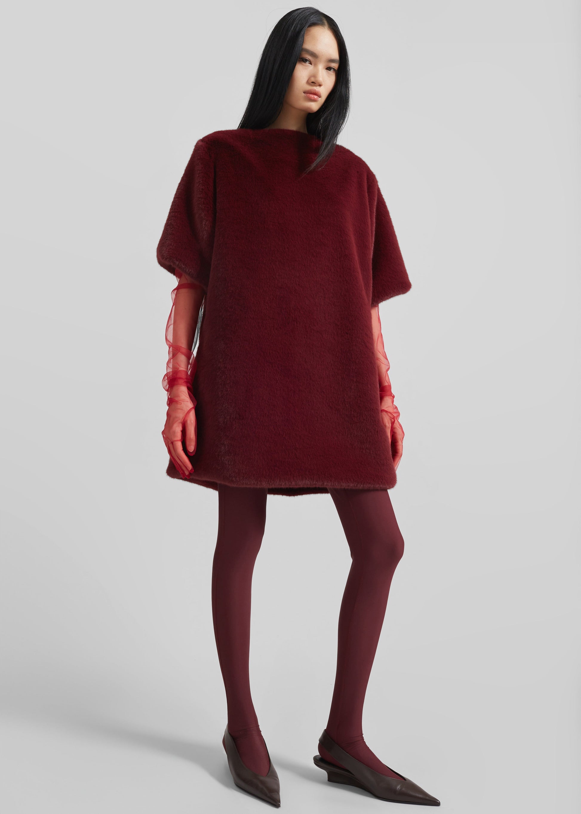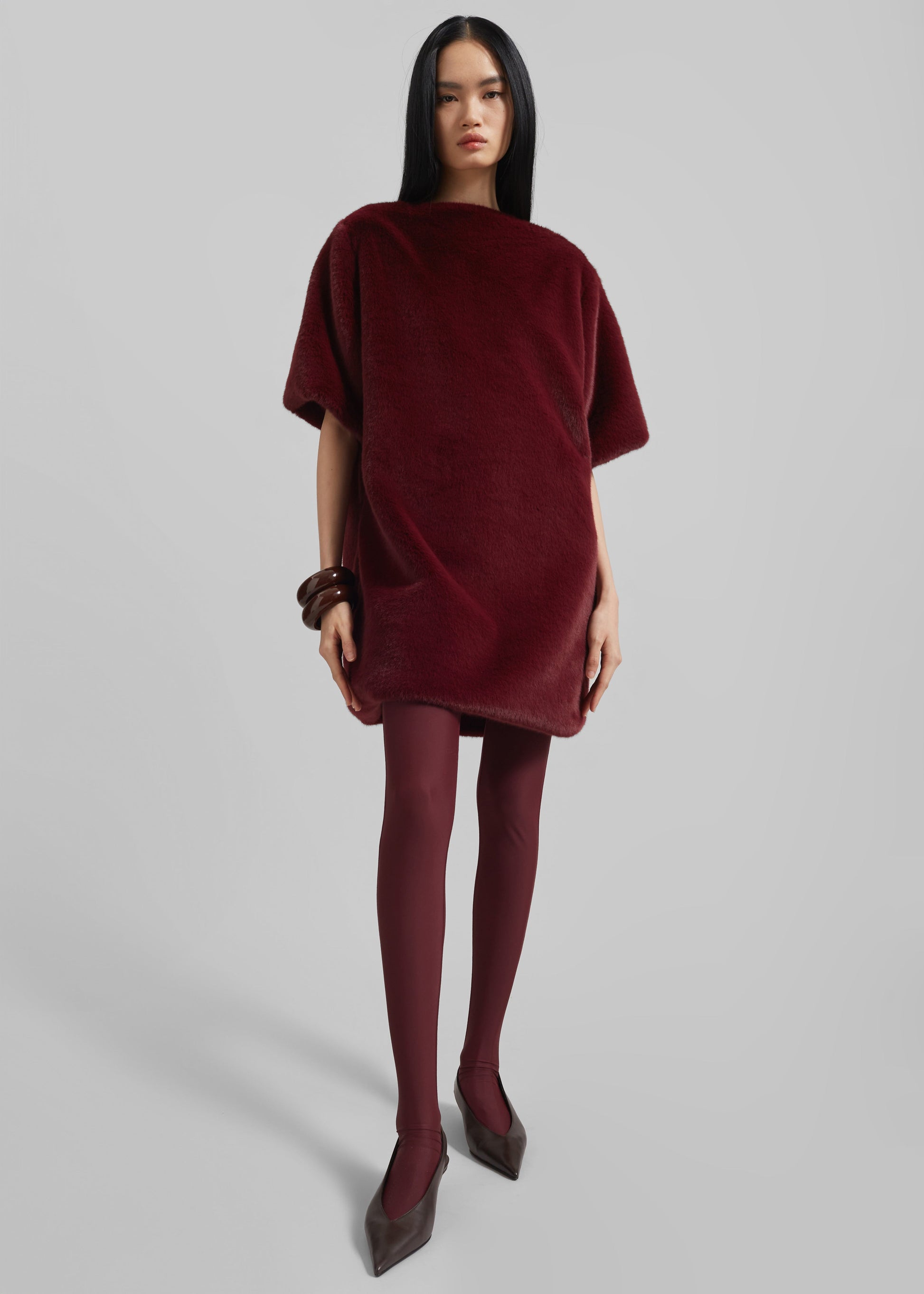 Stauben Faux Fur Mini Dress - Burgundy