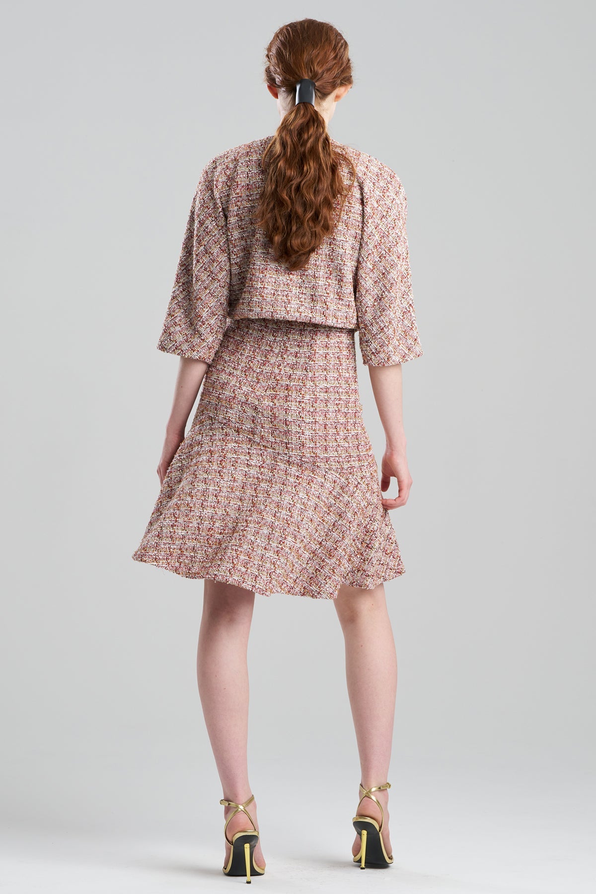 Timeless tweed that makes a statement. 17" Length Round neckline No closure Three-quarter sleeves Lined An enchanting textile knit with warmth, resilience, and a subtle stretch for added comfort 83% polyester 3% cotton 13% acrylic 1% spandex Dry clean only Made at our own factories in the Philippines
